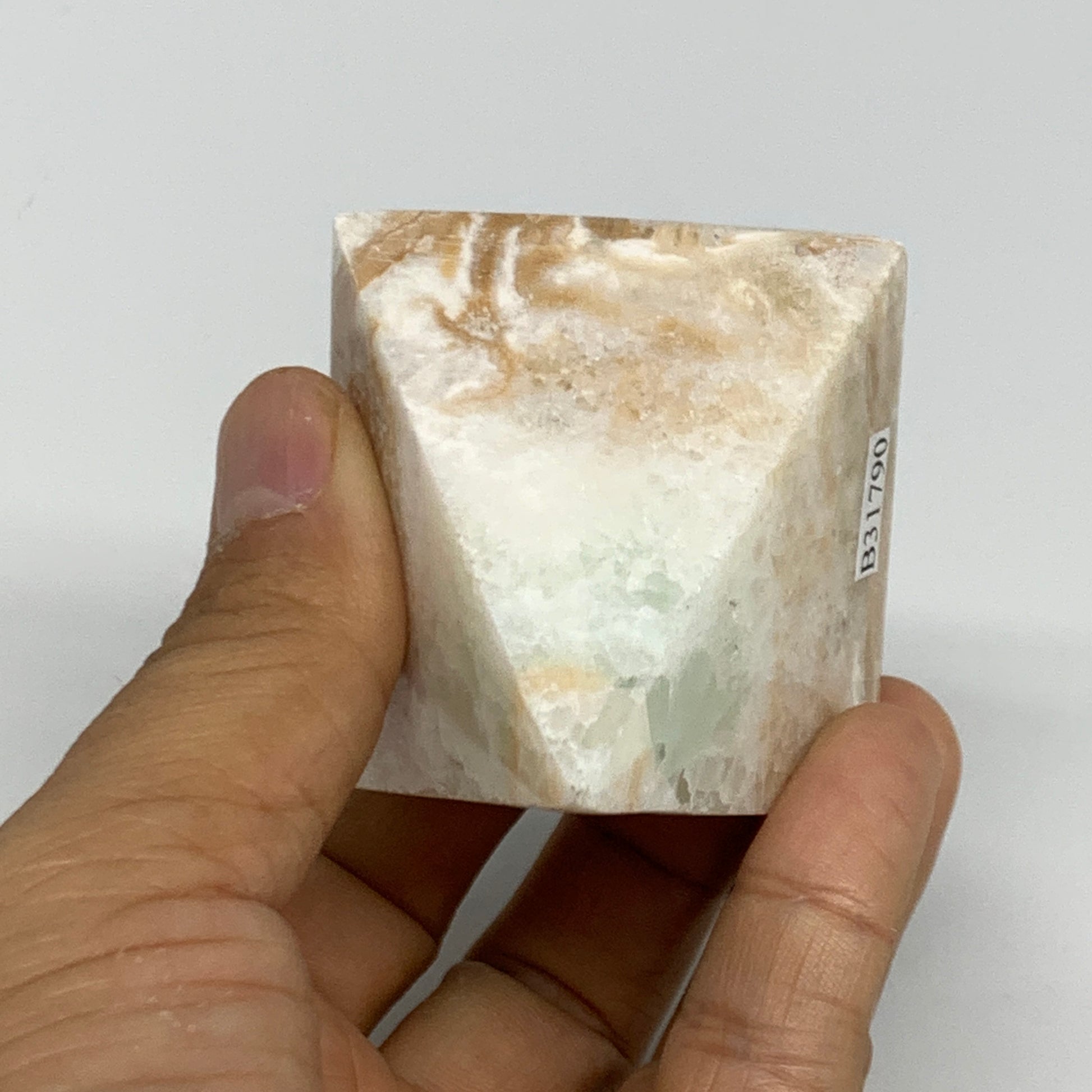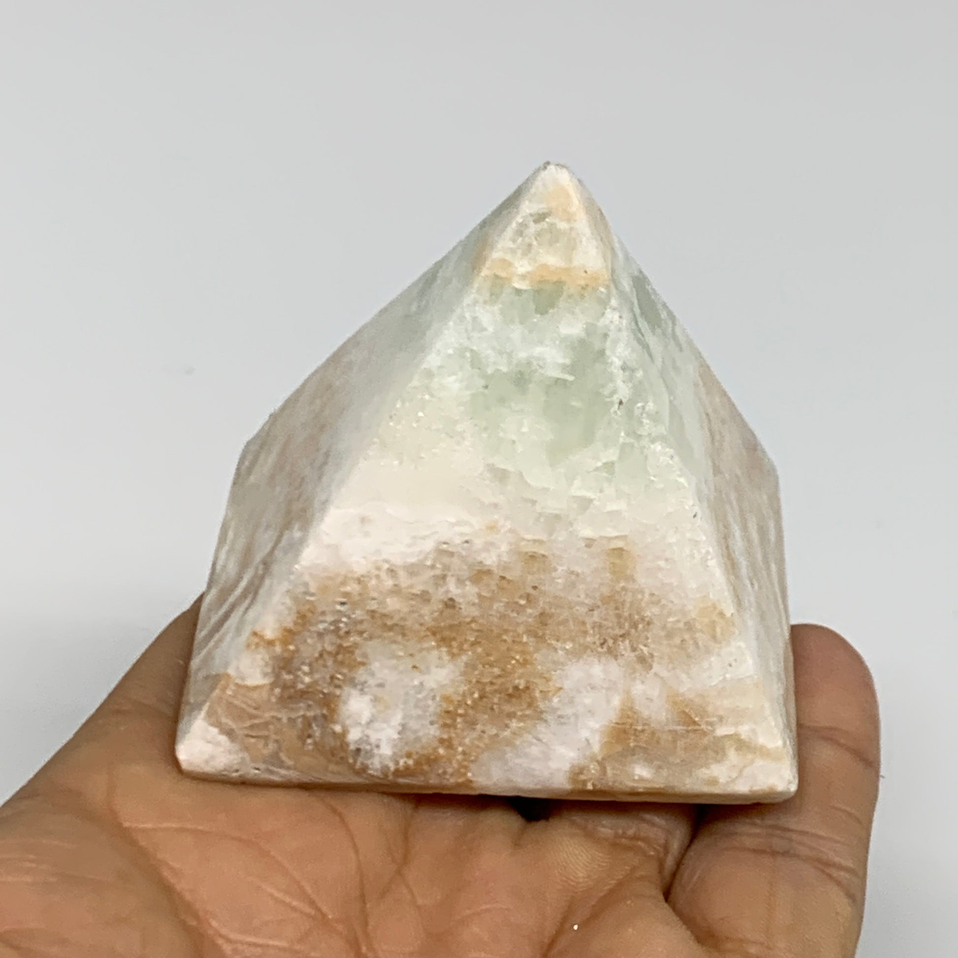 147.2g, 2"x2.1"x1.9", Caribbean Calcite Pyramid Gemstone, Crystal, B31790