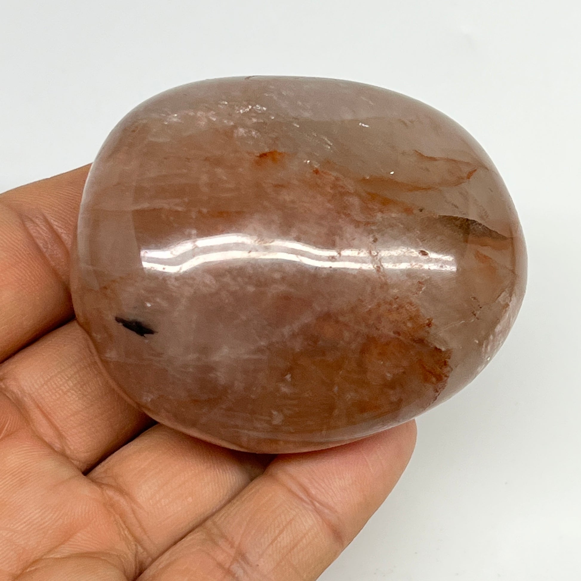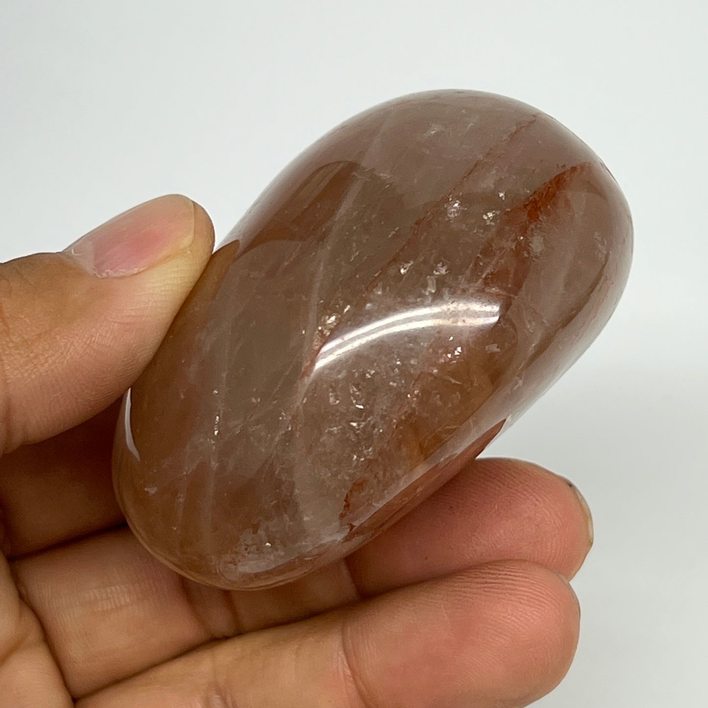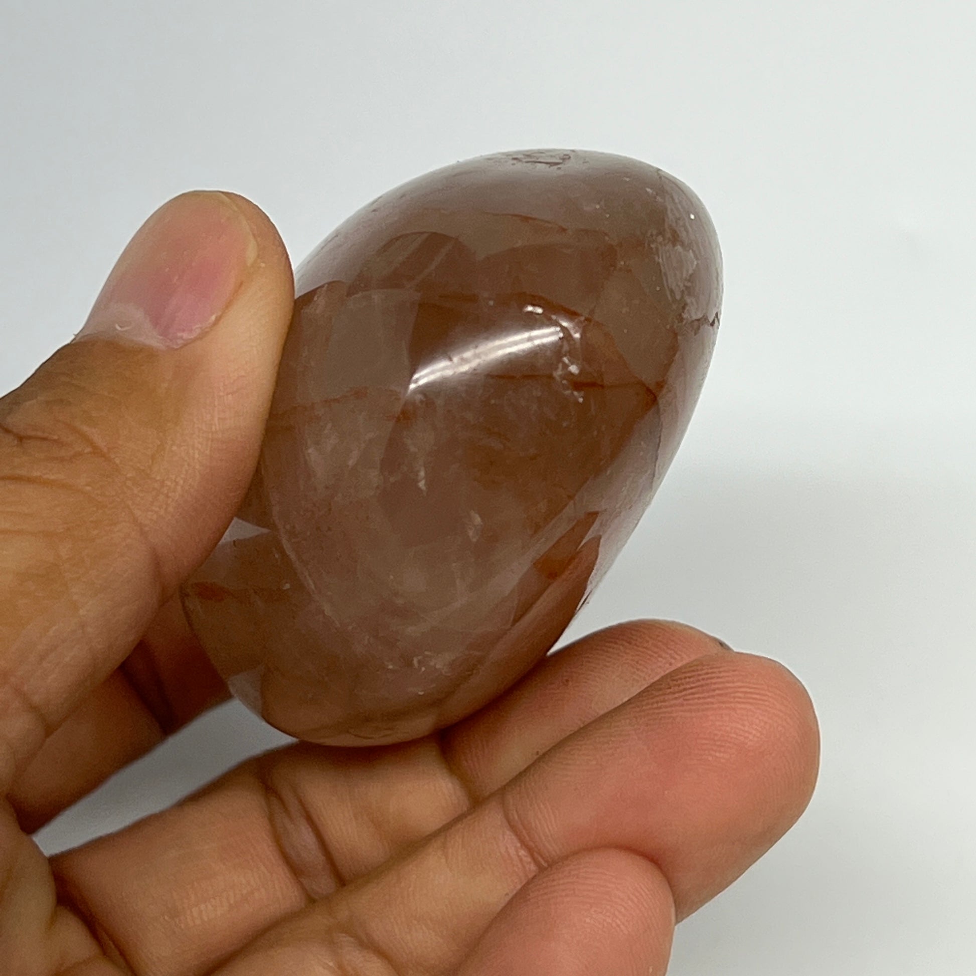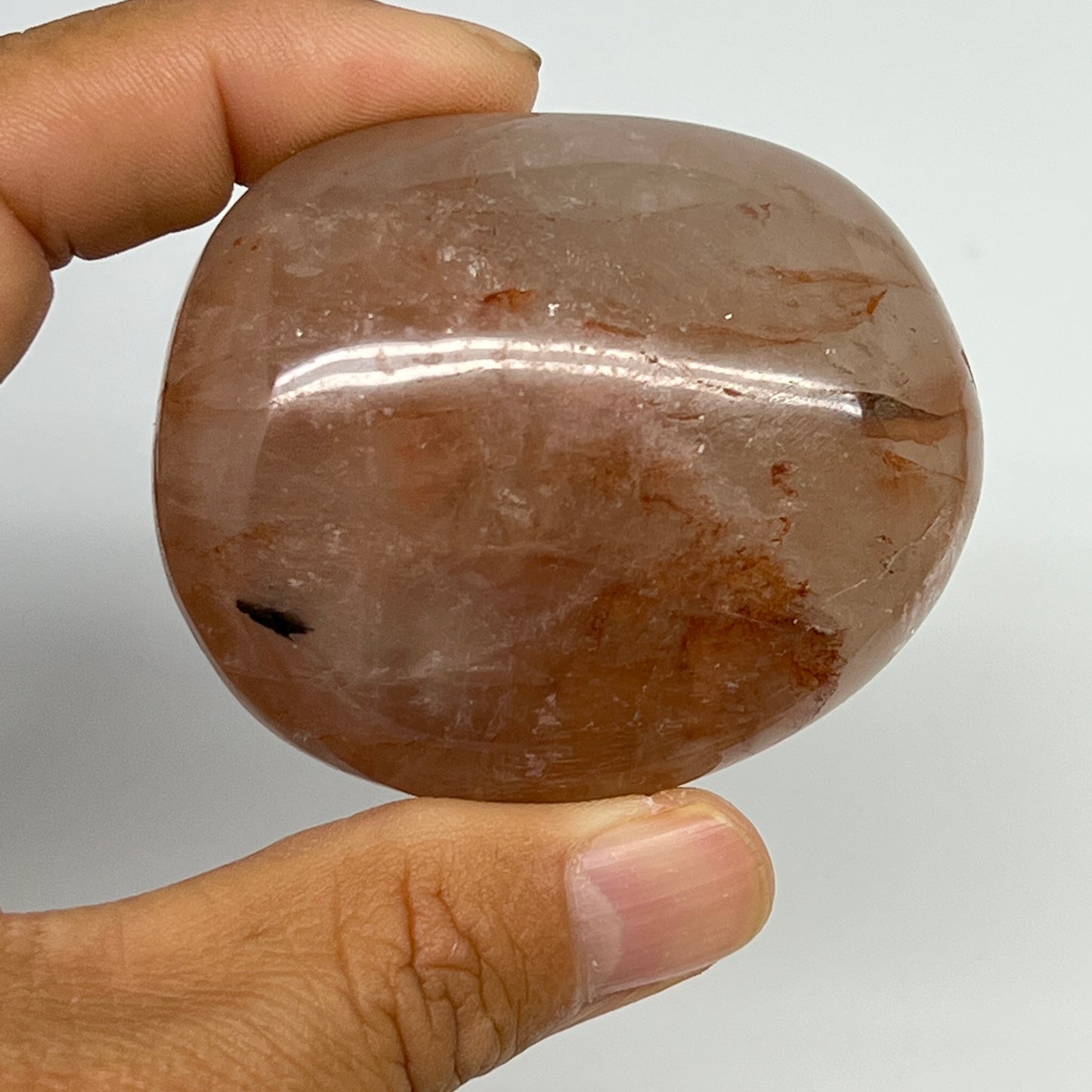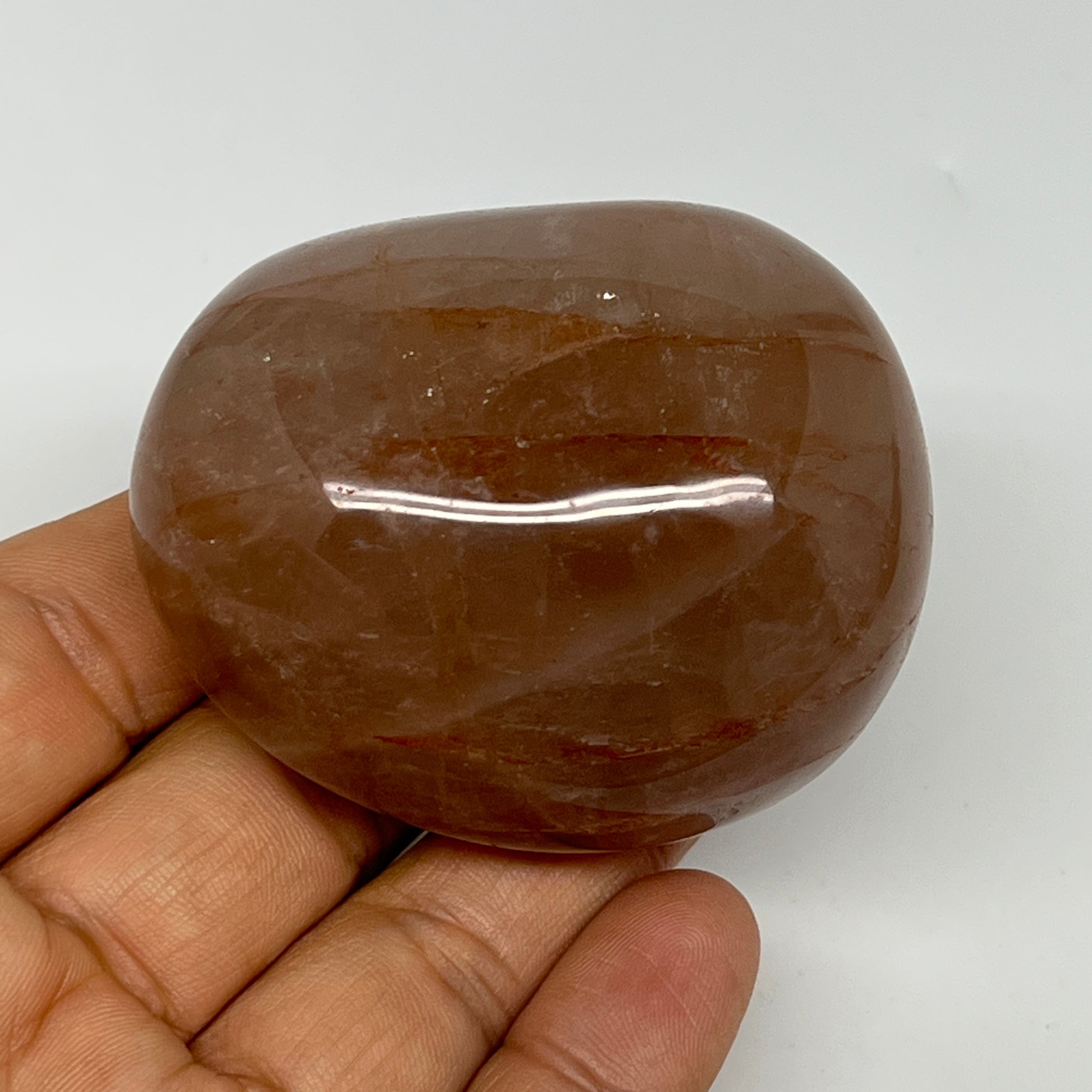 147.4g,2.3"x2"x1.3", Red Hematoid Fire Quartz Palm-Stone Crystal Polished, B19720