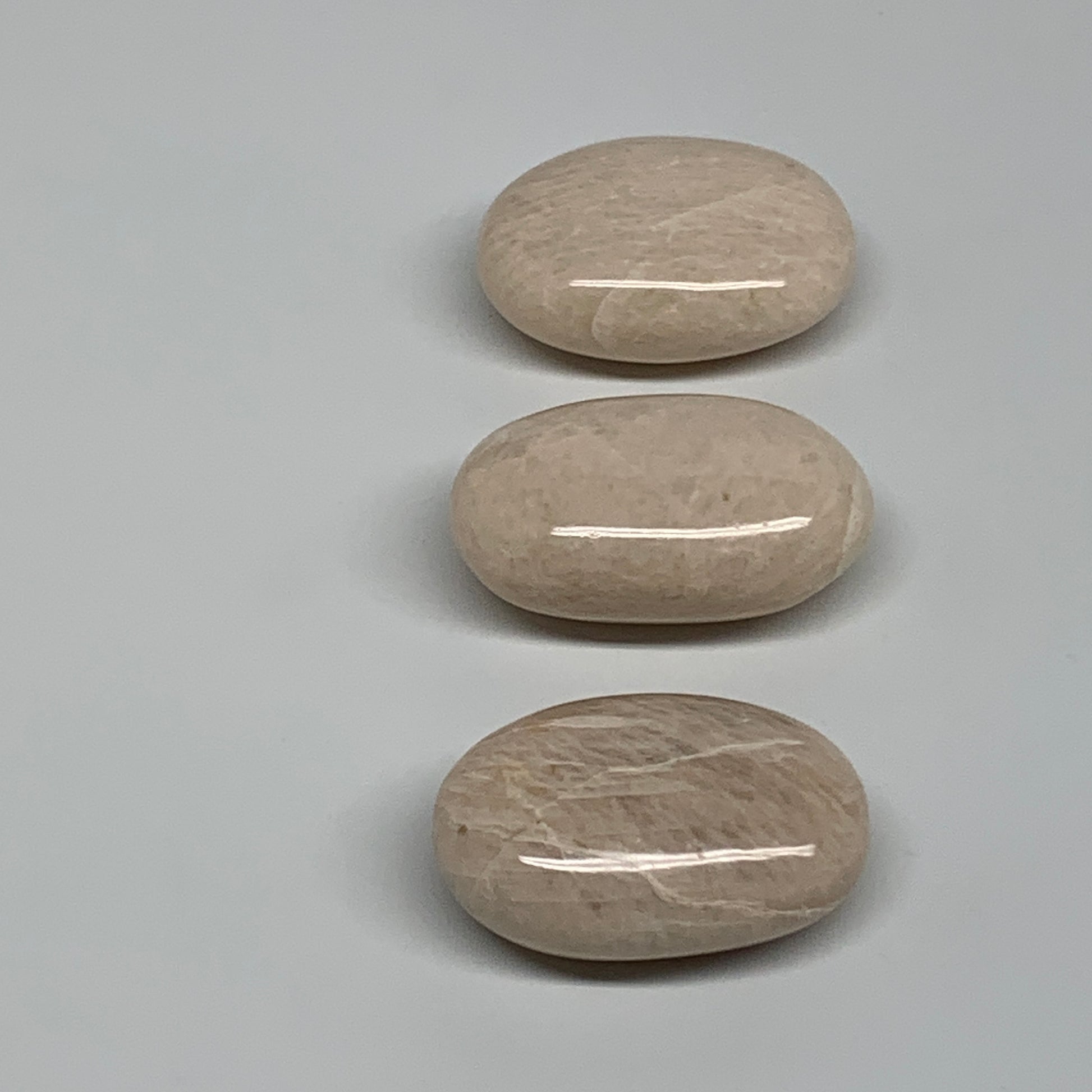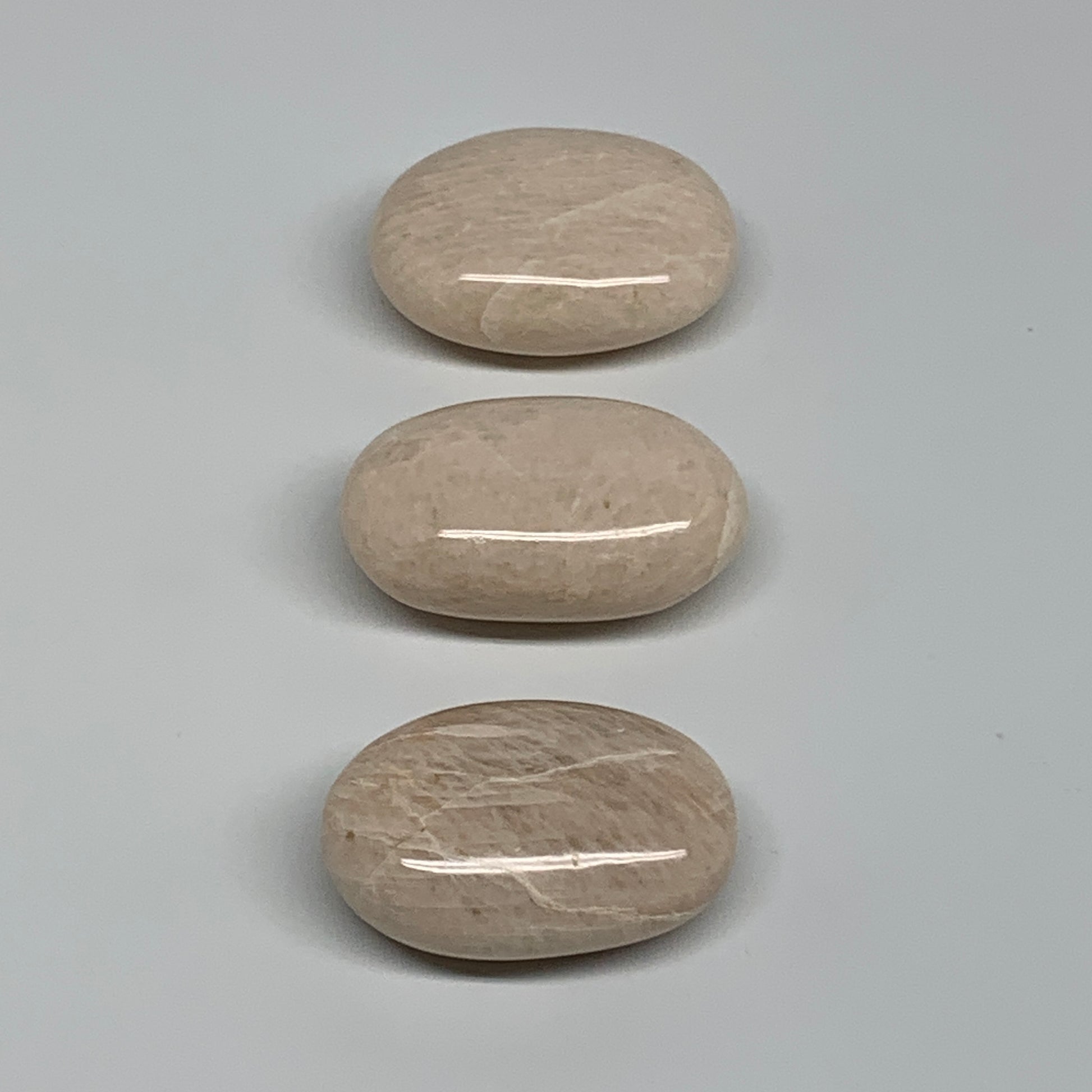 147.7g,1.9"-2", 3pcs, Peach Moonstone Polished Palm-Stone Gemstone, B34767