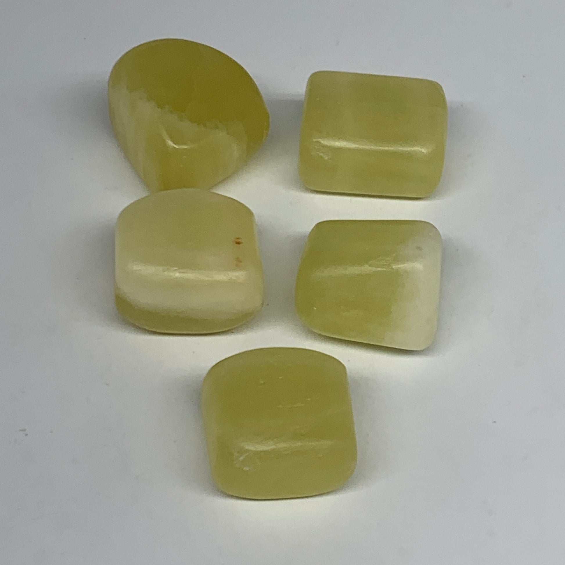 148.1g, 0.9"-1.2", 5pcs, Natural Lemon Calcite Tumbled Stones @Afghanistan, B26764