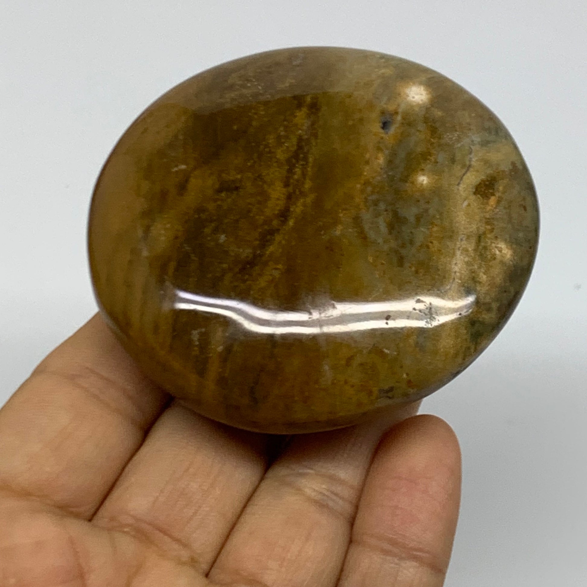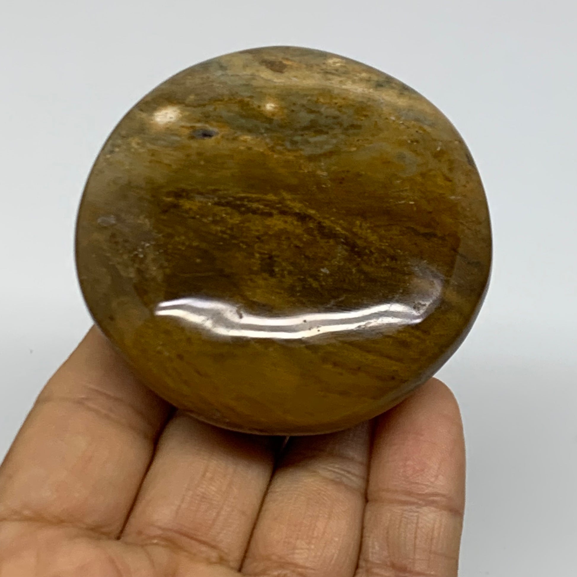 148.9g, 2.6"x2.5"x1" Natural Ocean Jasper Palm-Stone Orbicular Jasper, B38193