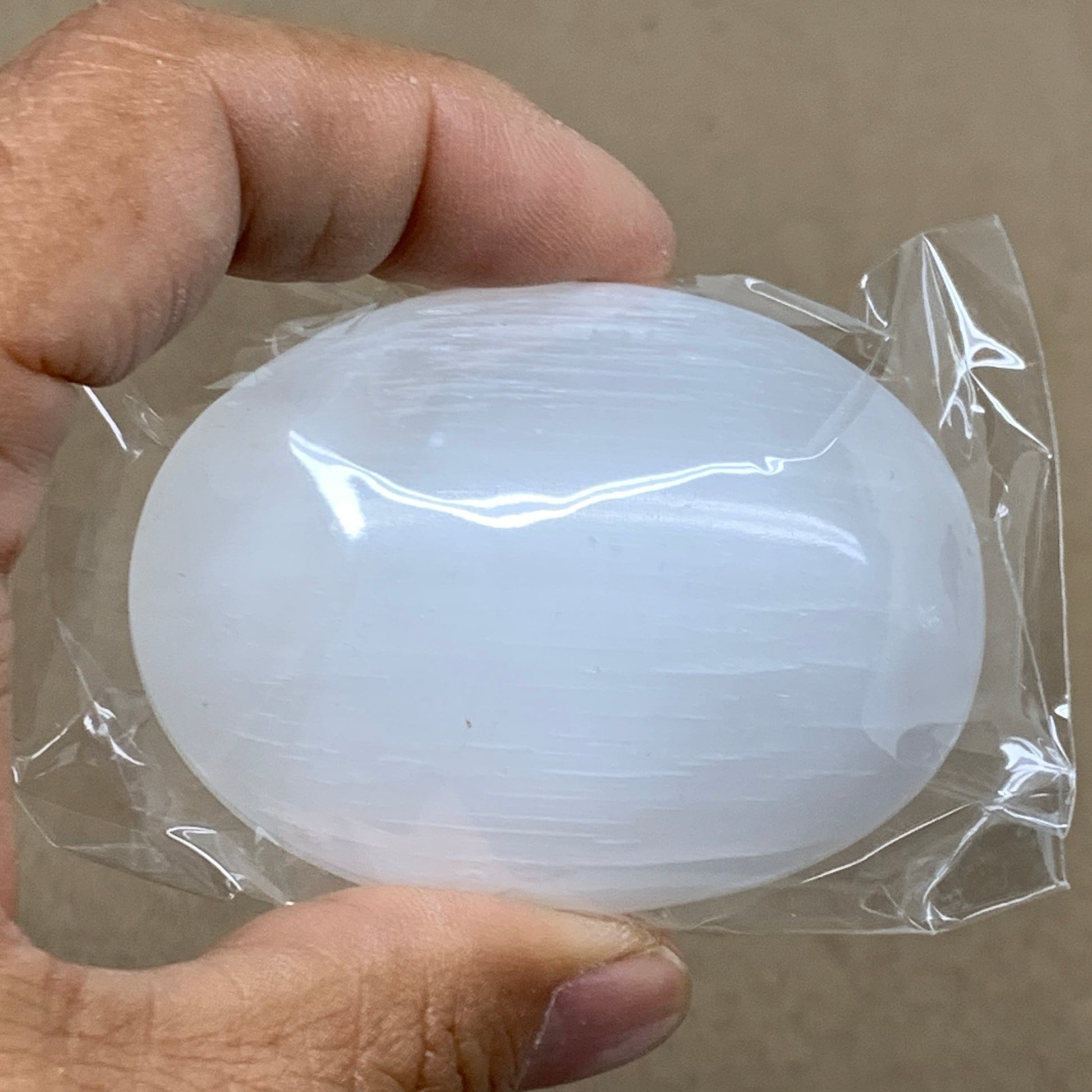 148g, 2.4"x1.8"x1", 2pcs, White Selenite Palmstone Crystal Pillow, B36883