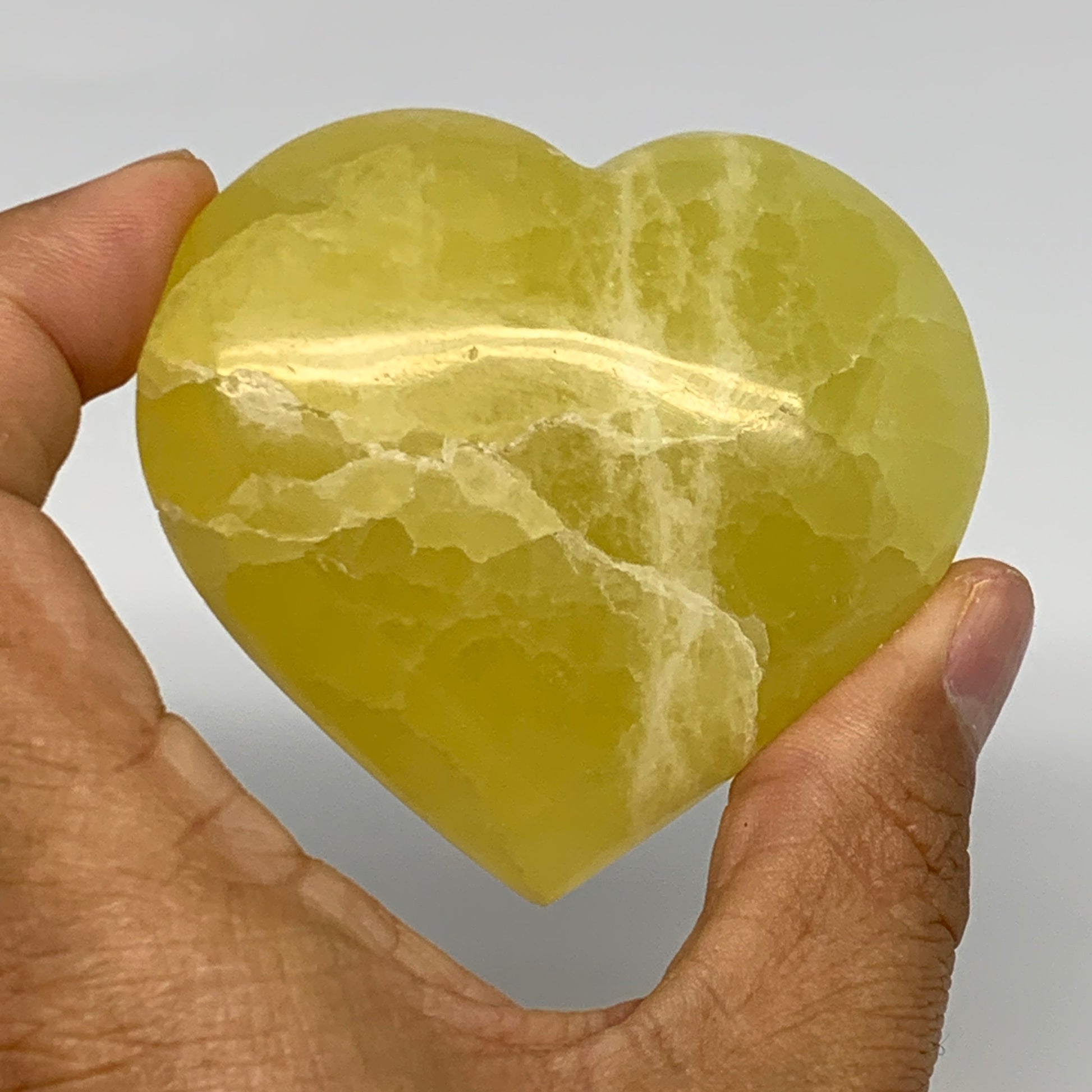 149.2g, 2.4"x2.6"x1" Lemon Calcite Heart Crystal Gemstones @Afghanistan, B26856