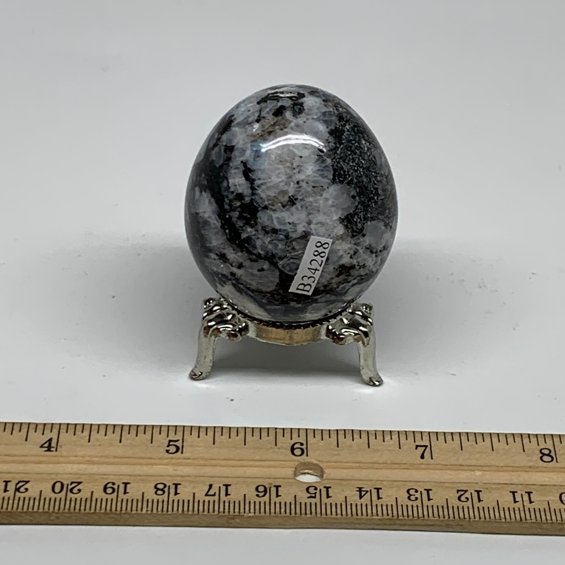 149.9g, 2.1"x1.8", Natural Gemstone White Rainbow Moonstone Egg, B34288