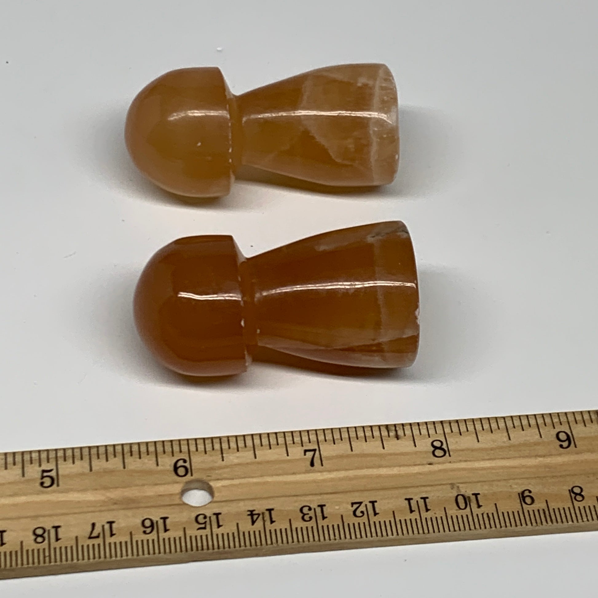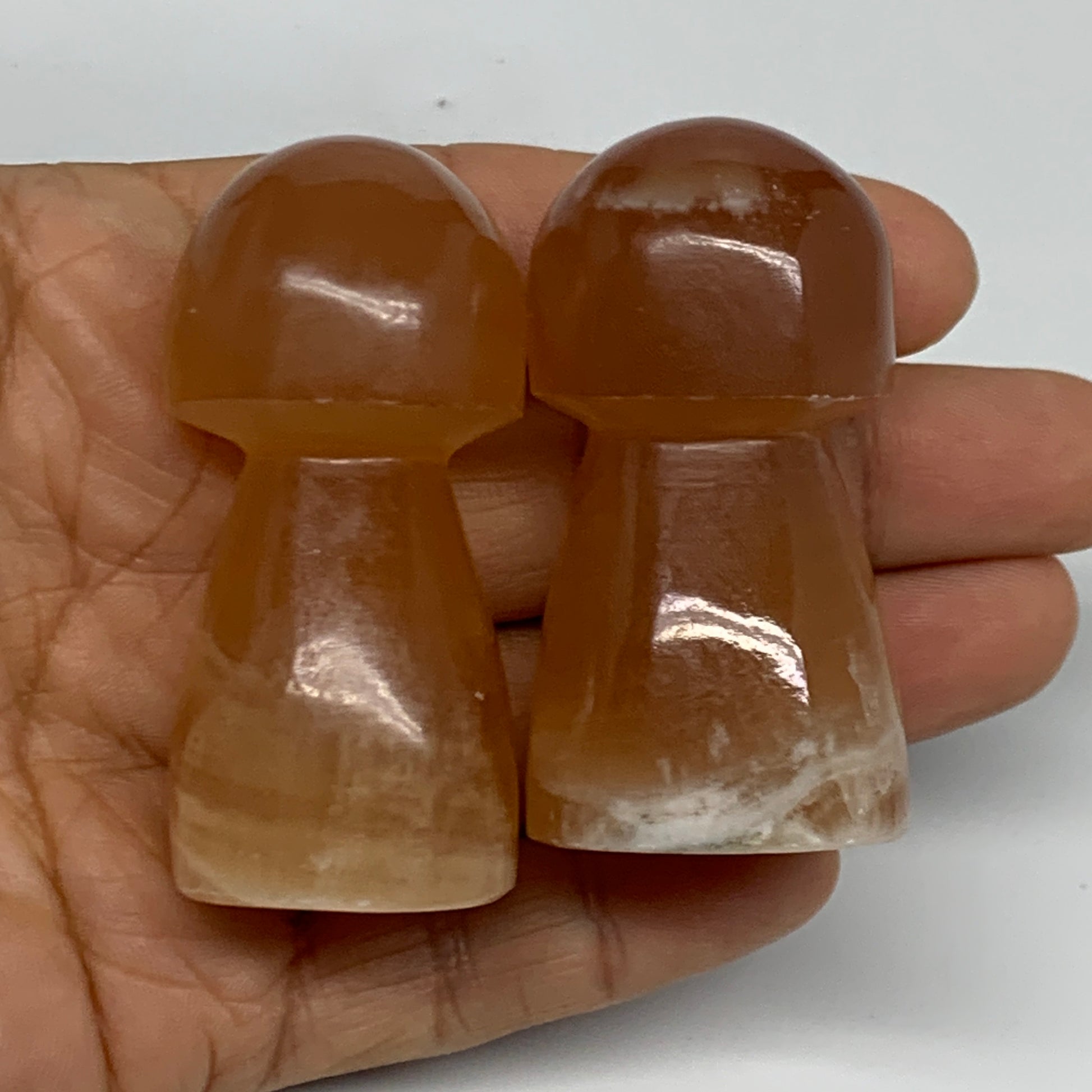 149.9g, 2.2"-2.3", 2pcs, Natural Honey Calcite Mushroom Gemstone @Pakistan, B31730