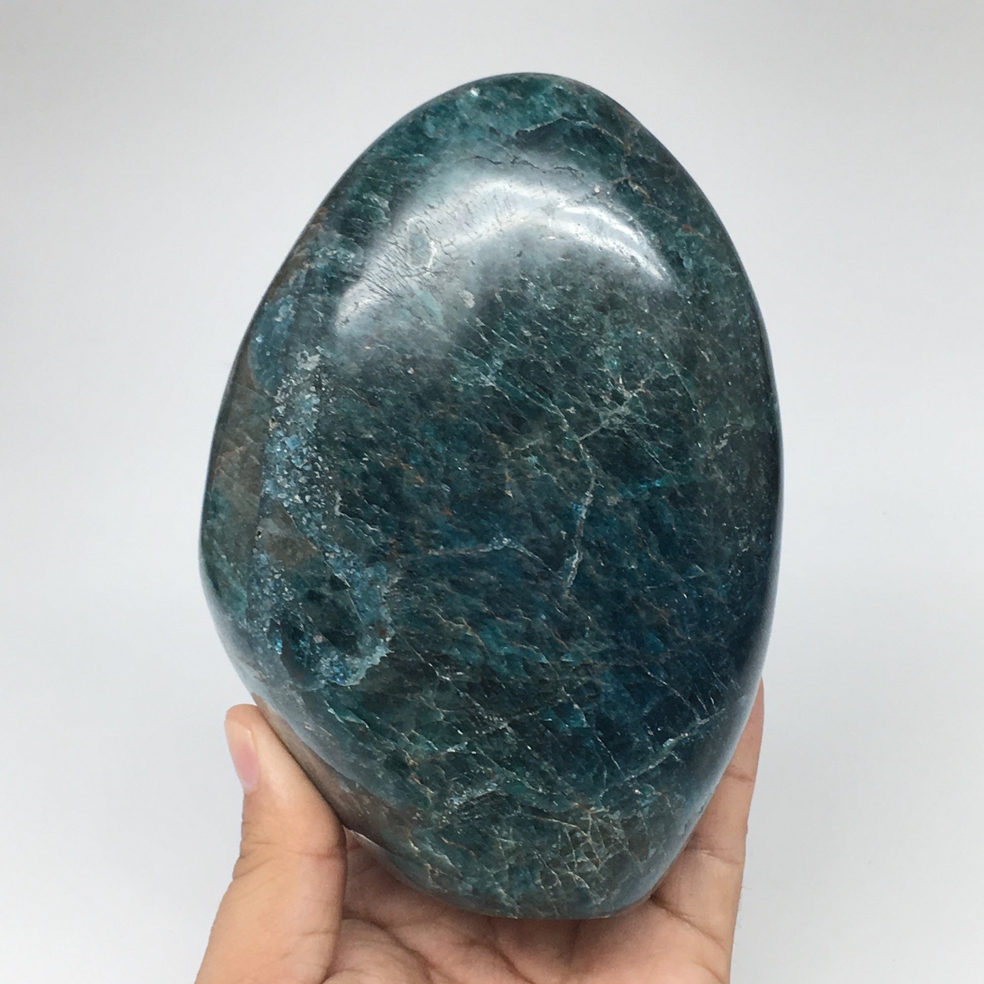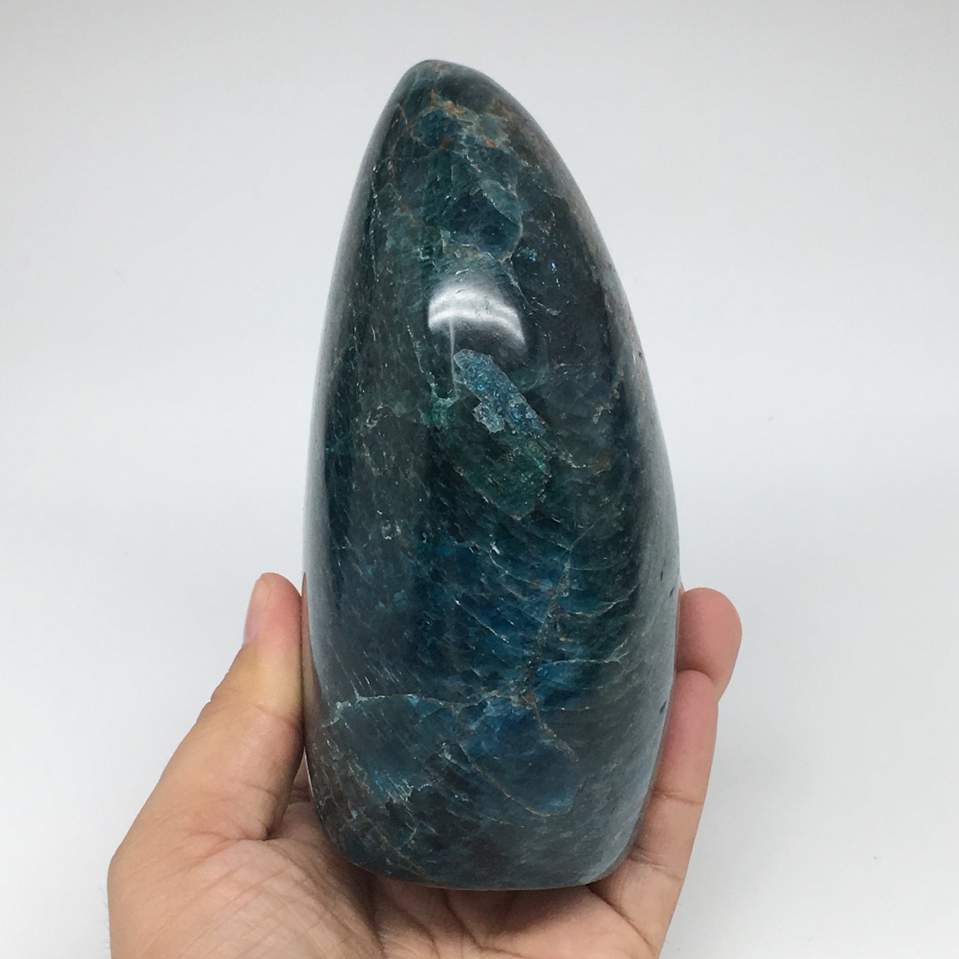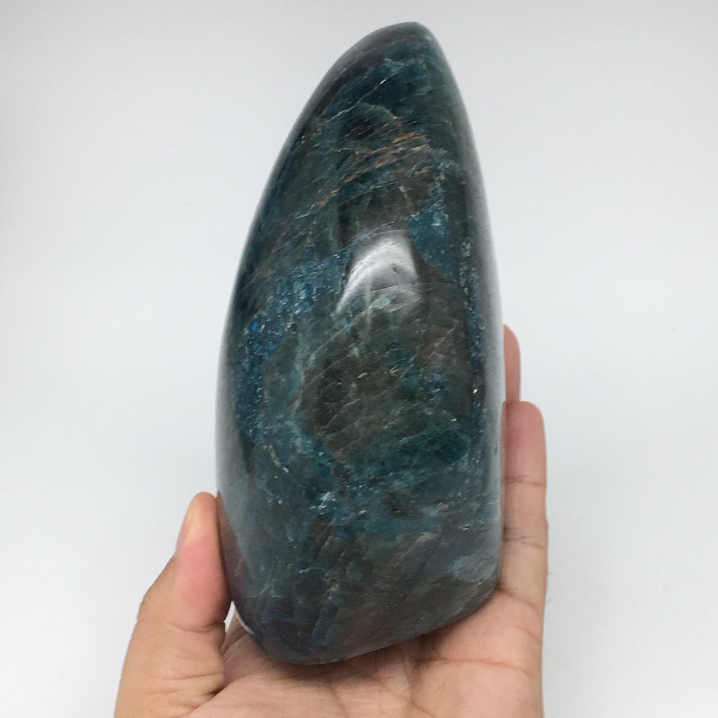 1494g,5.7"x3.8"x2.6" Blue Apatite Polished Freeform Stands @Madagascar,B1180