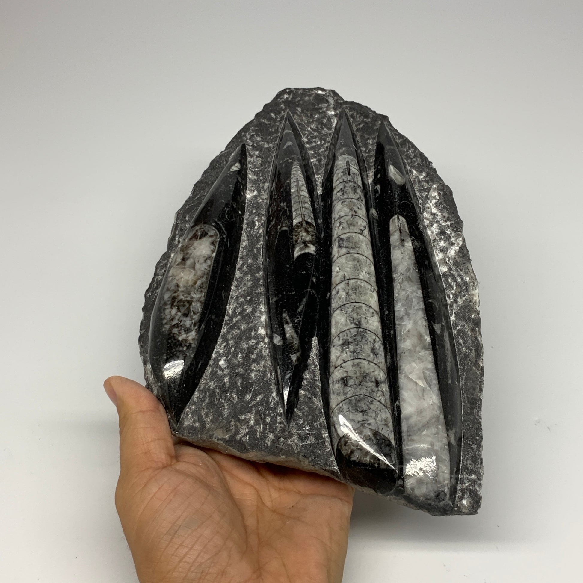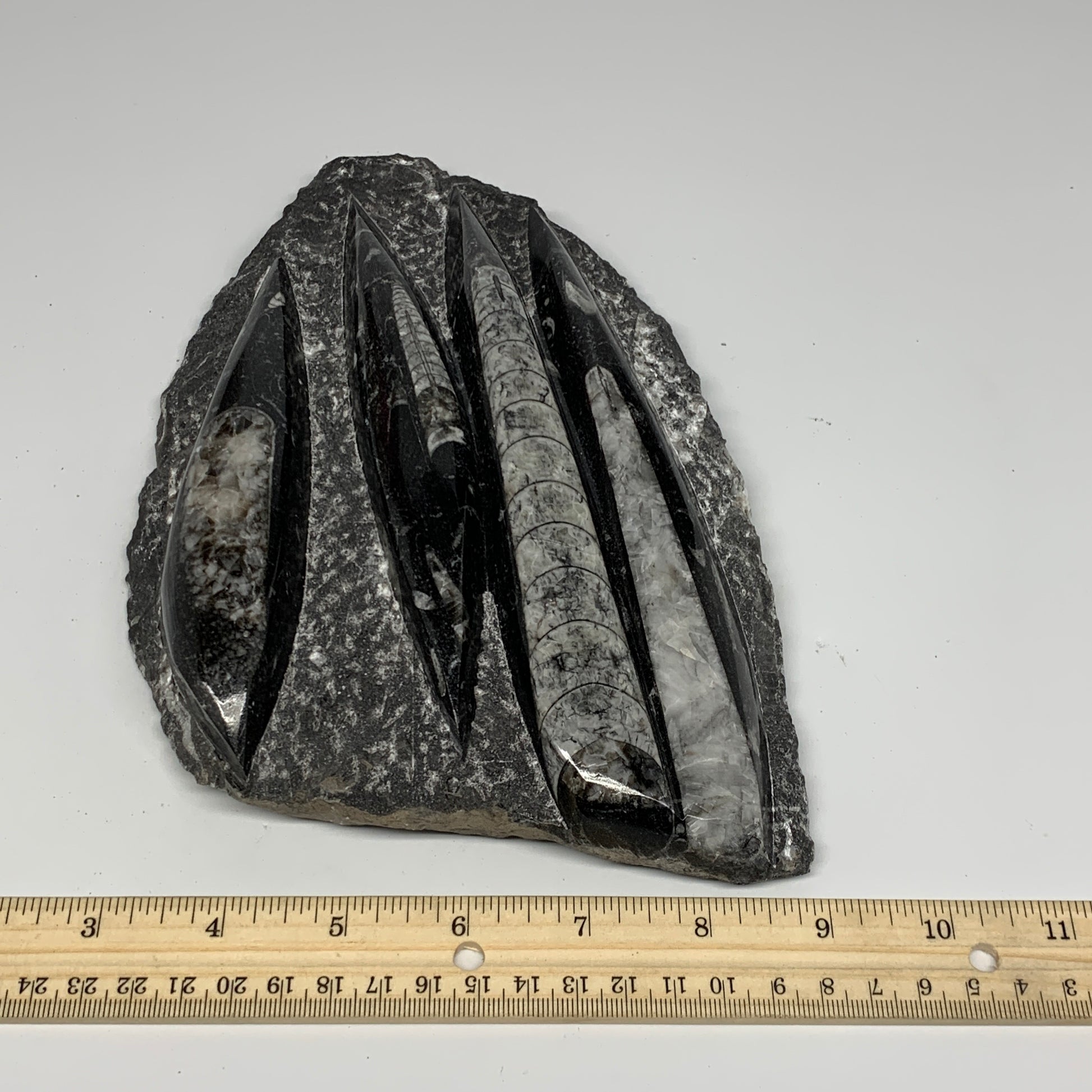 1495g,9.6"x6"x1.4" Fossils Orthoceras Plate Plaque SQUID, Home Decor, B23514