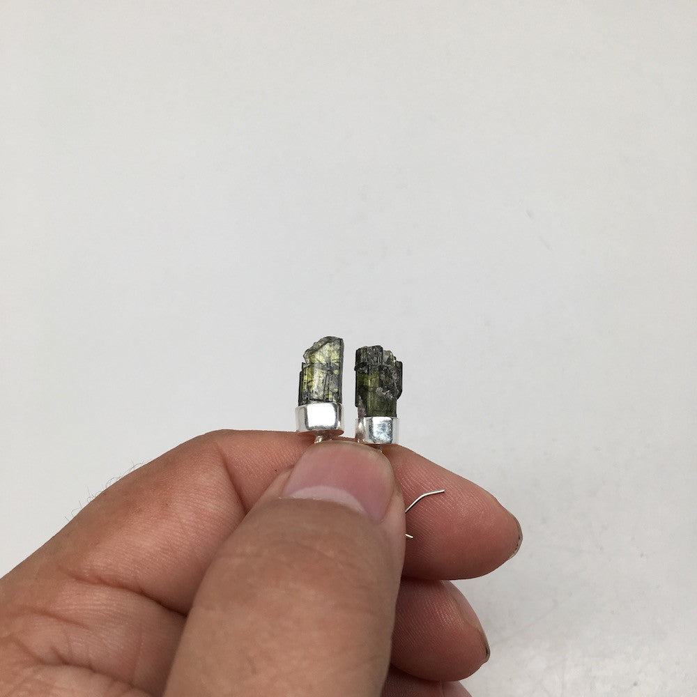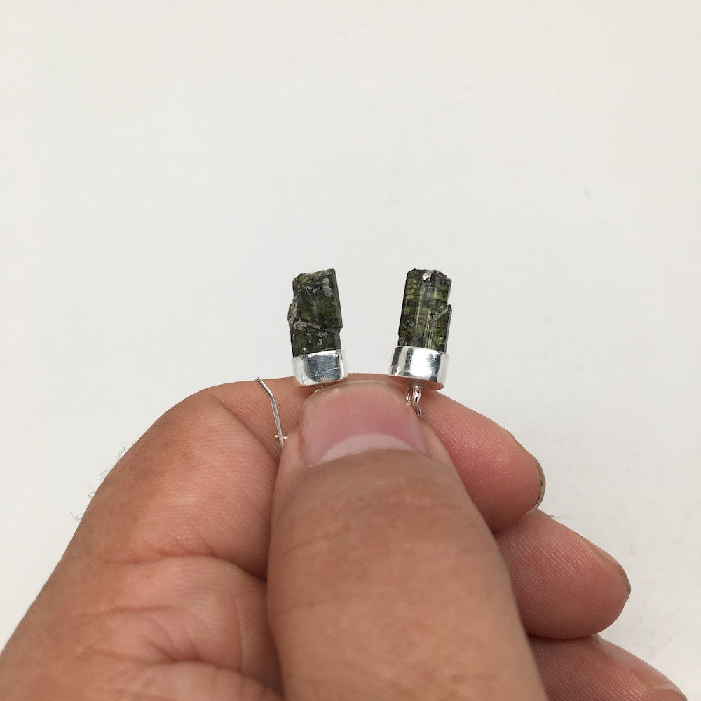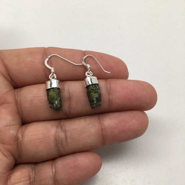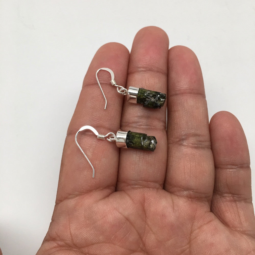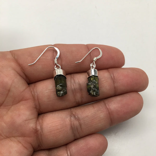 15 cts Rough Green Tourmaline Earrings Sterling Silver @Brazil, E009, BE19