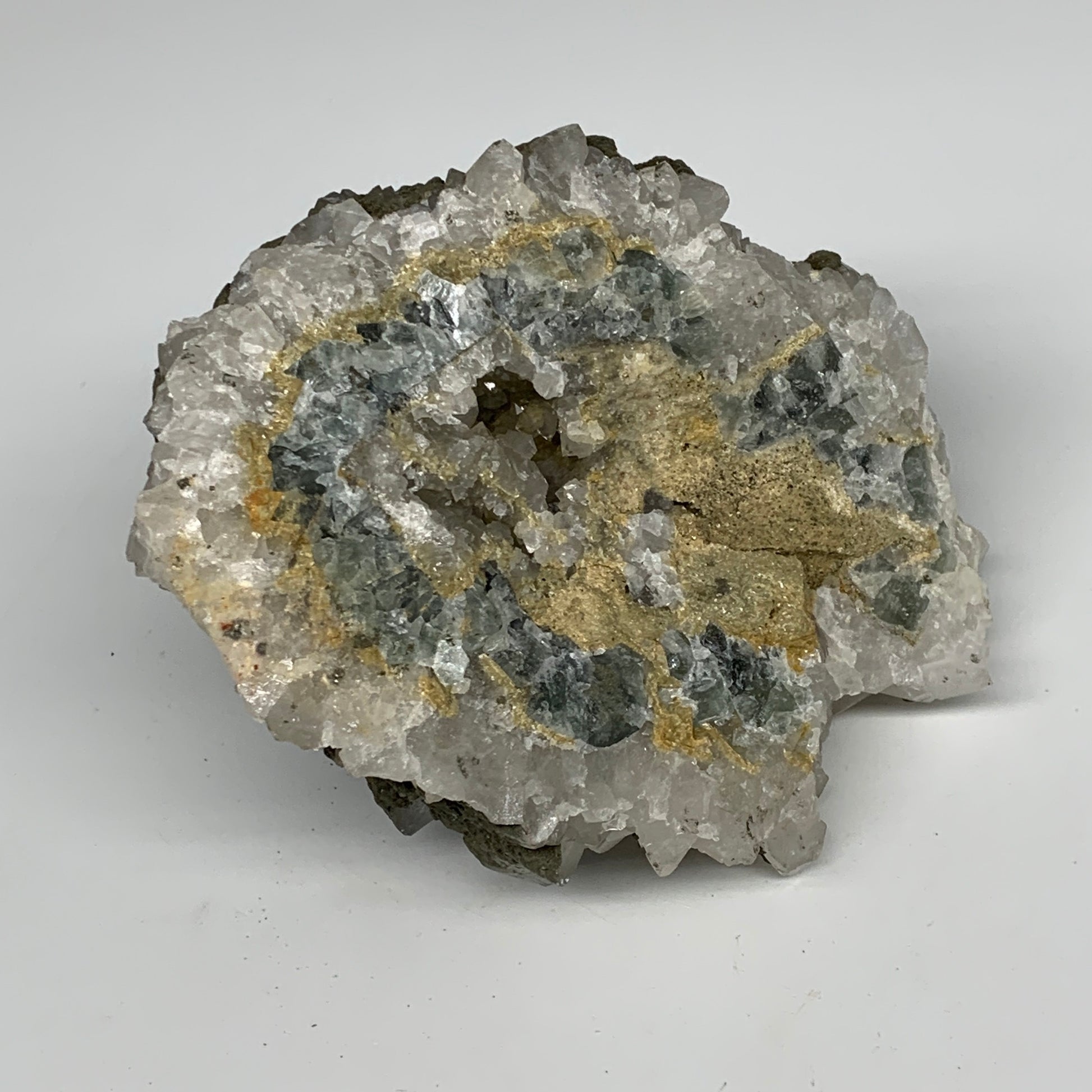 1500g, 5.8"x4.8"x3.5", UV Reactive Chalcopyrite Cluster Fluorite Mineral Specimen,B11056