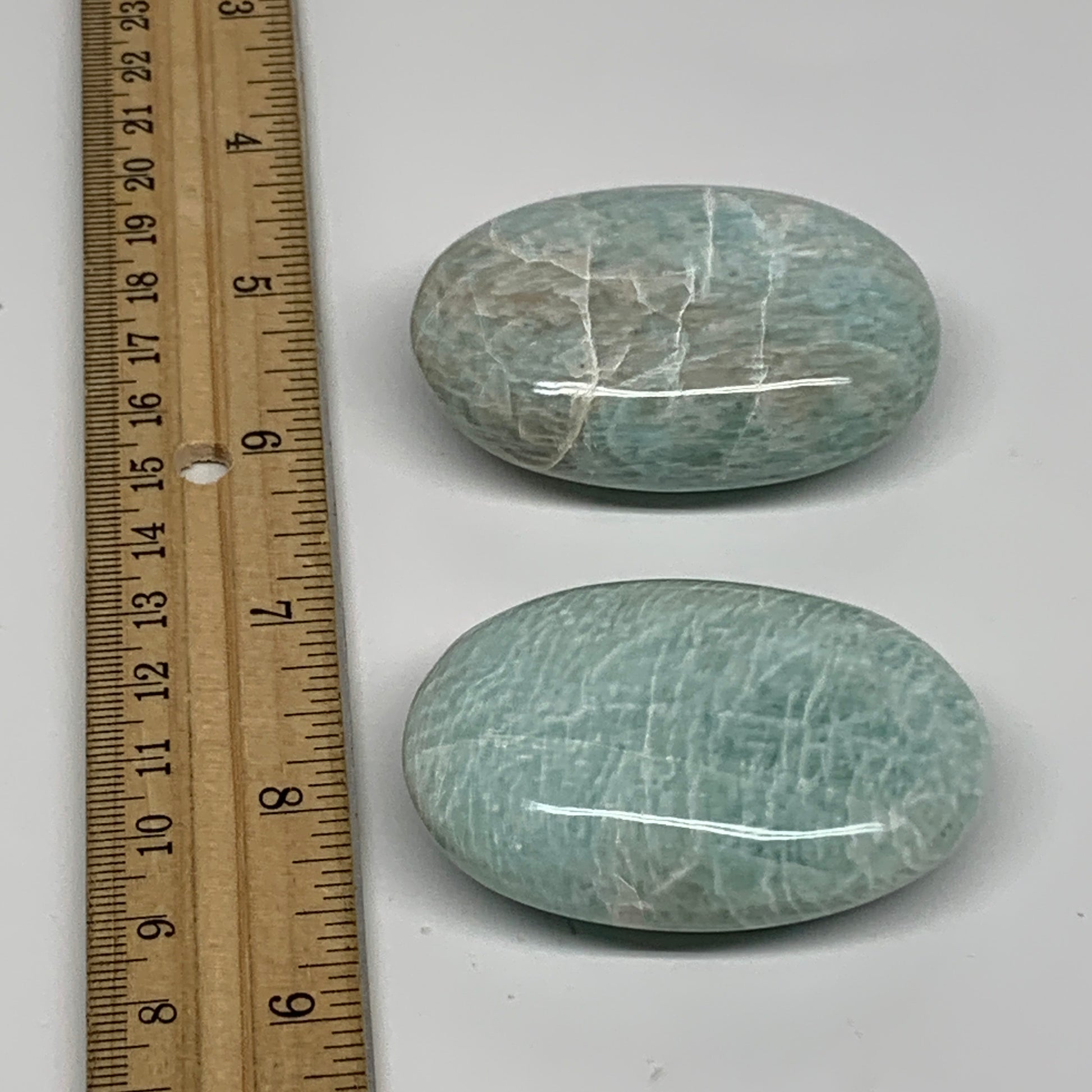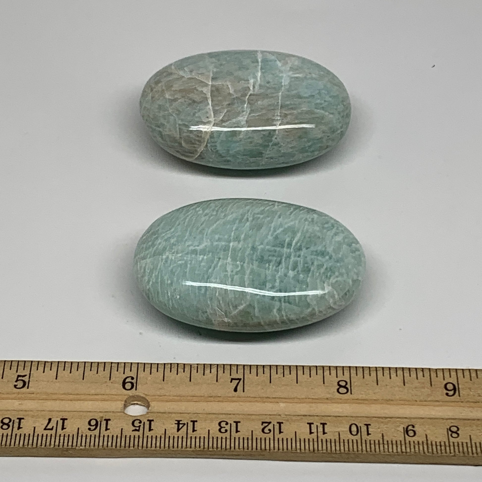 150g, 2.3"-2.3", 2pcs, Natural Amazonite Palm-Stone Tumbled Polished, B34715