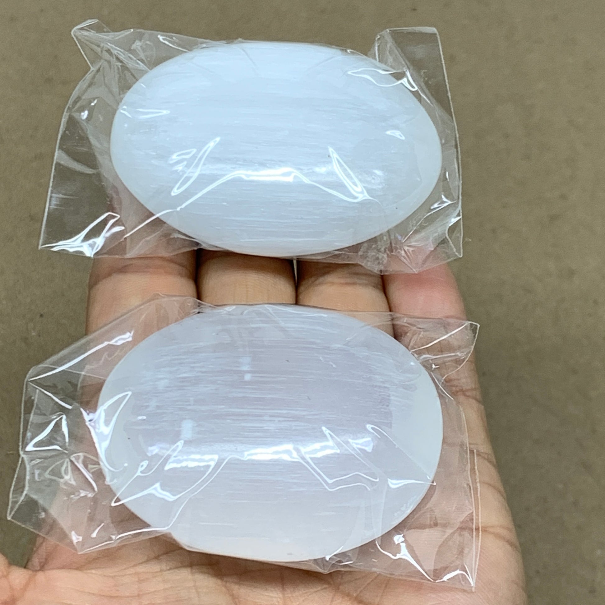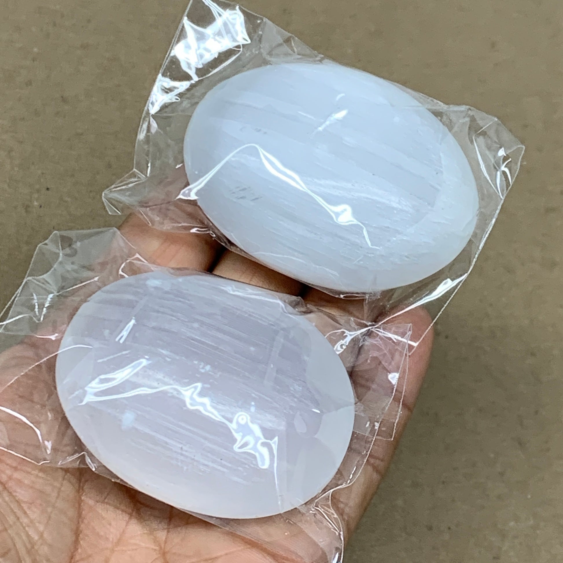 150g, 2.4"x1.8"x1", 2pcs, White Selenite Palmstone Crystal Pillow, B36888