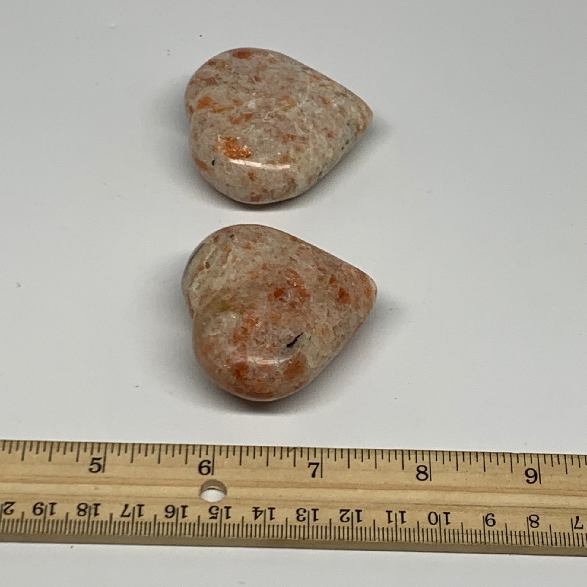 151.2g,1.9"-2", 2pcs, Sunstone Heart Small Polished Healing Crystal,B28030