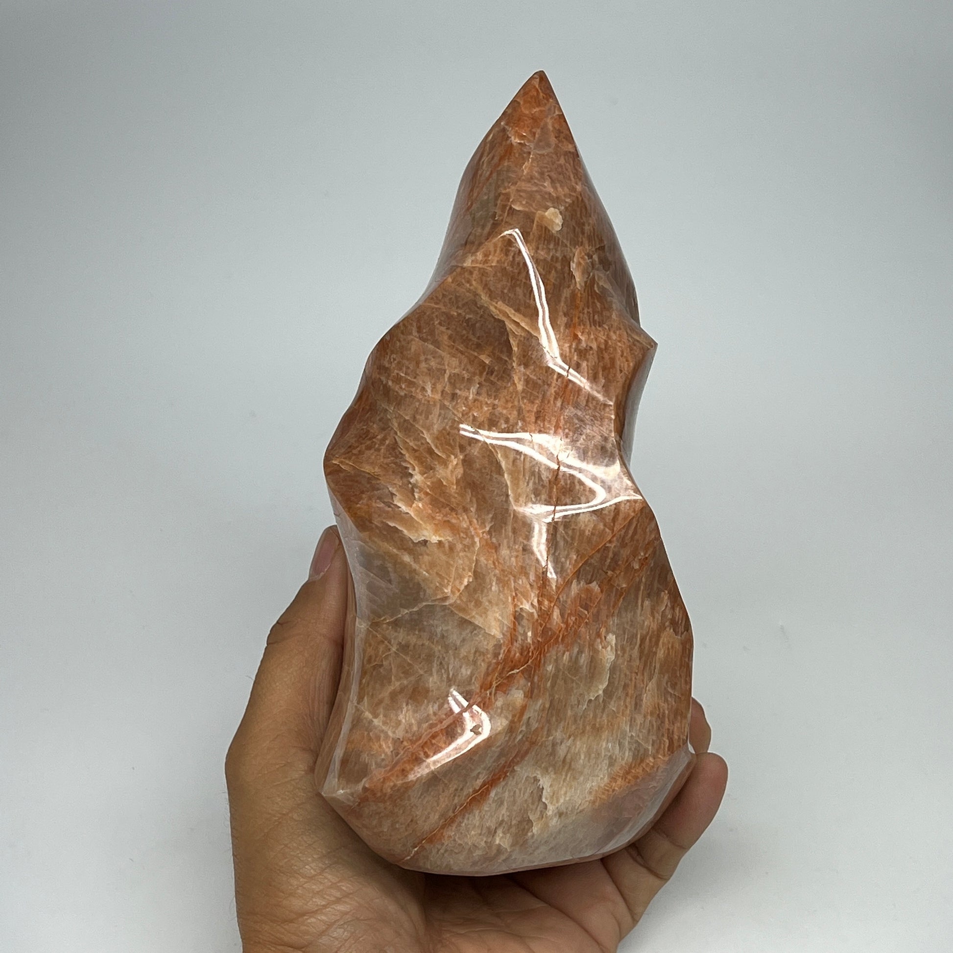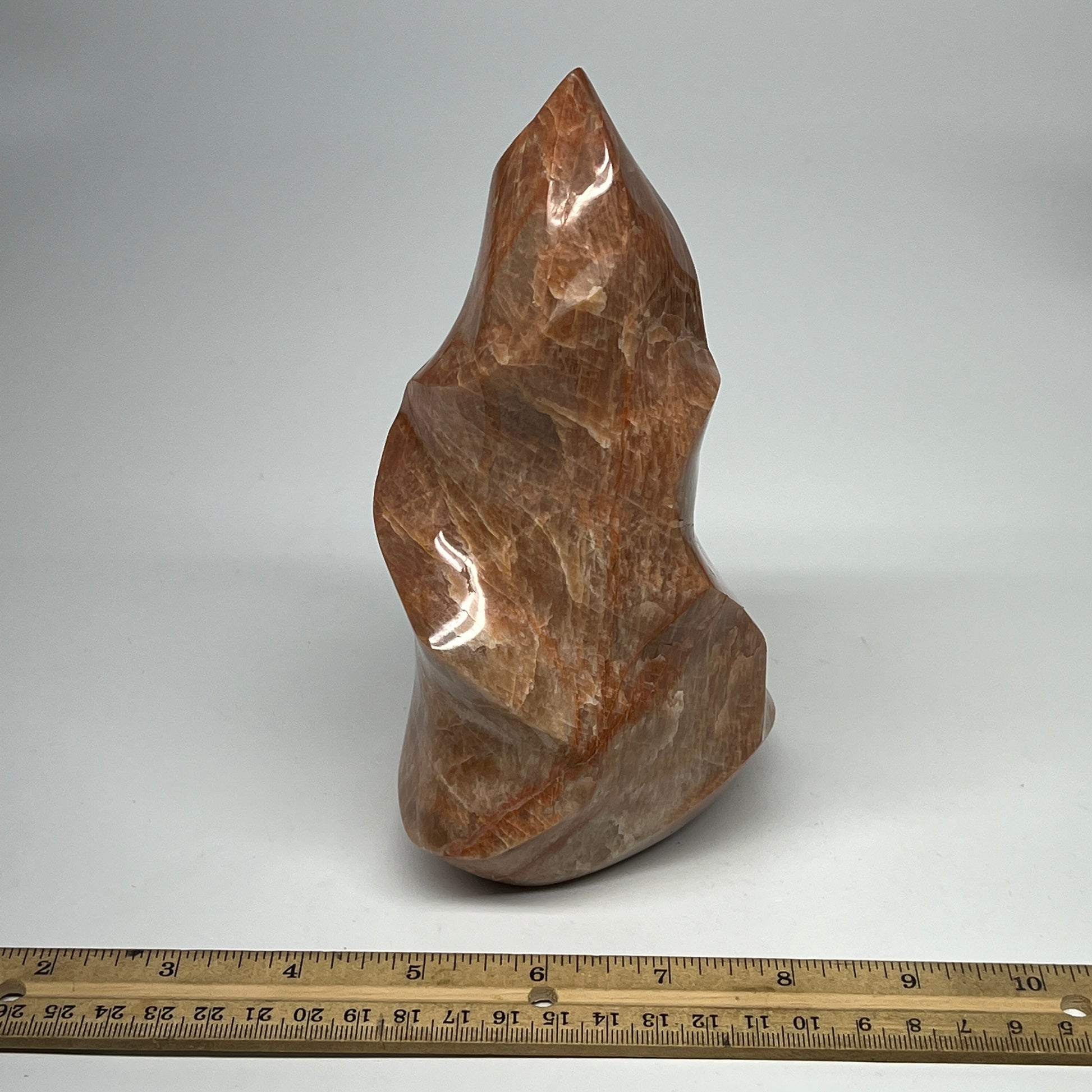 1510g, 7.2"x4.1"x3.2", Natural Peach Moonstone Flame Gemstones Reiki Tool, B19570