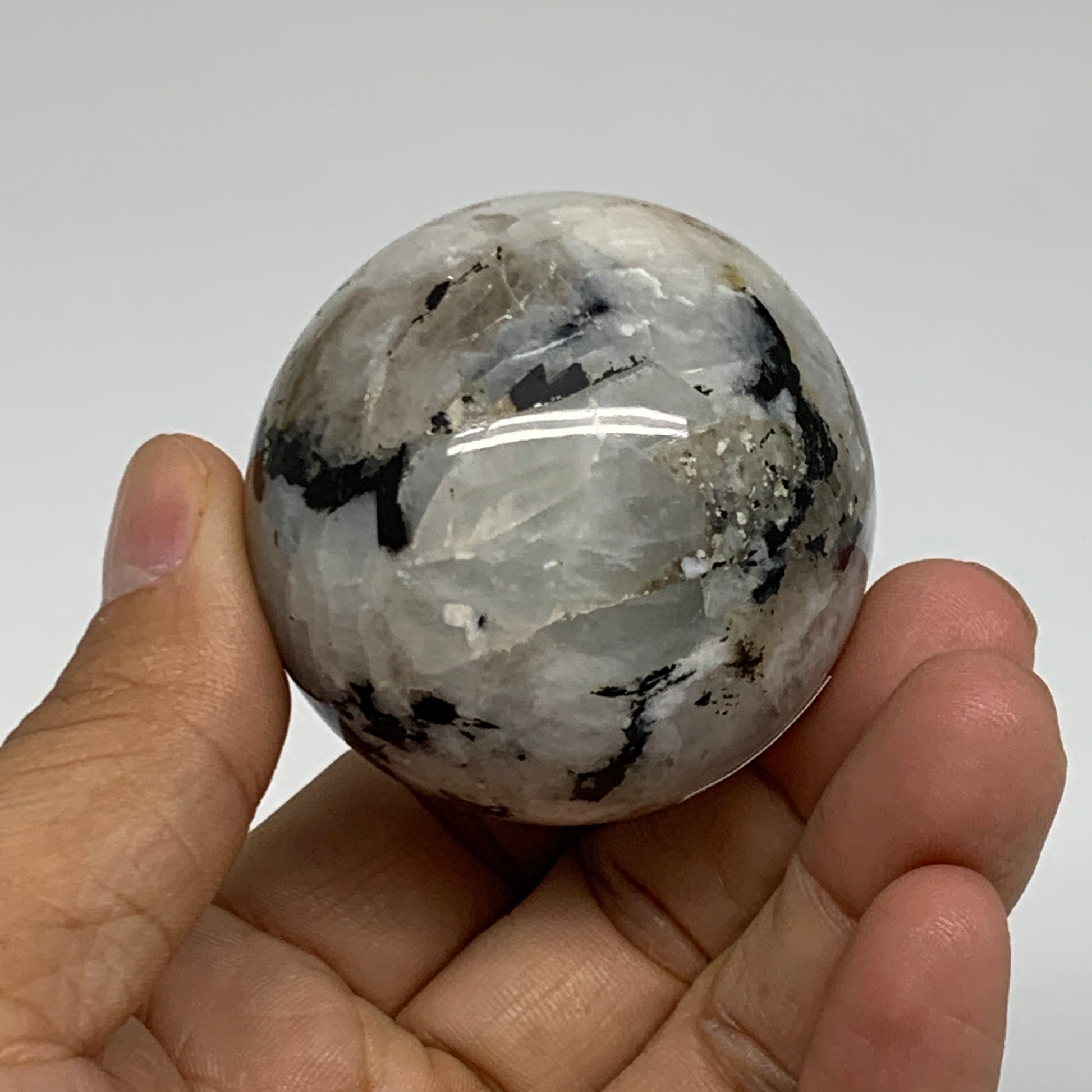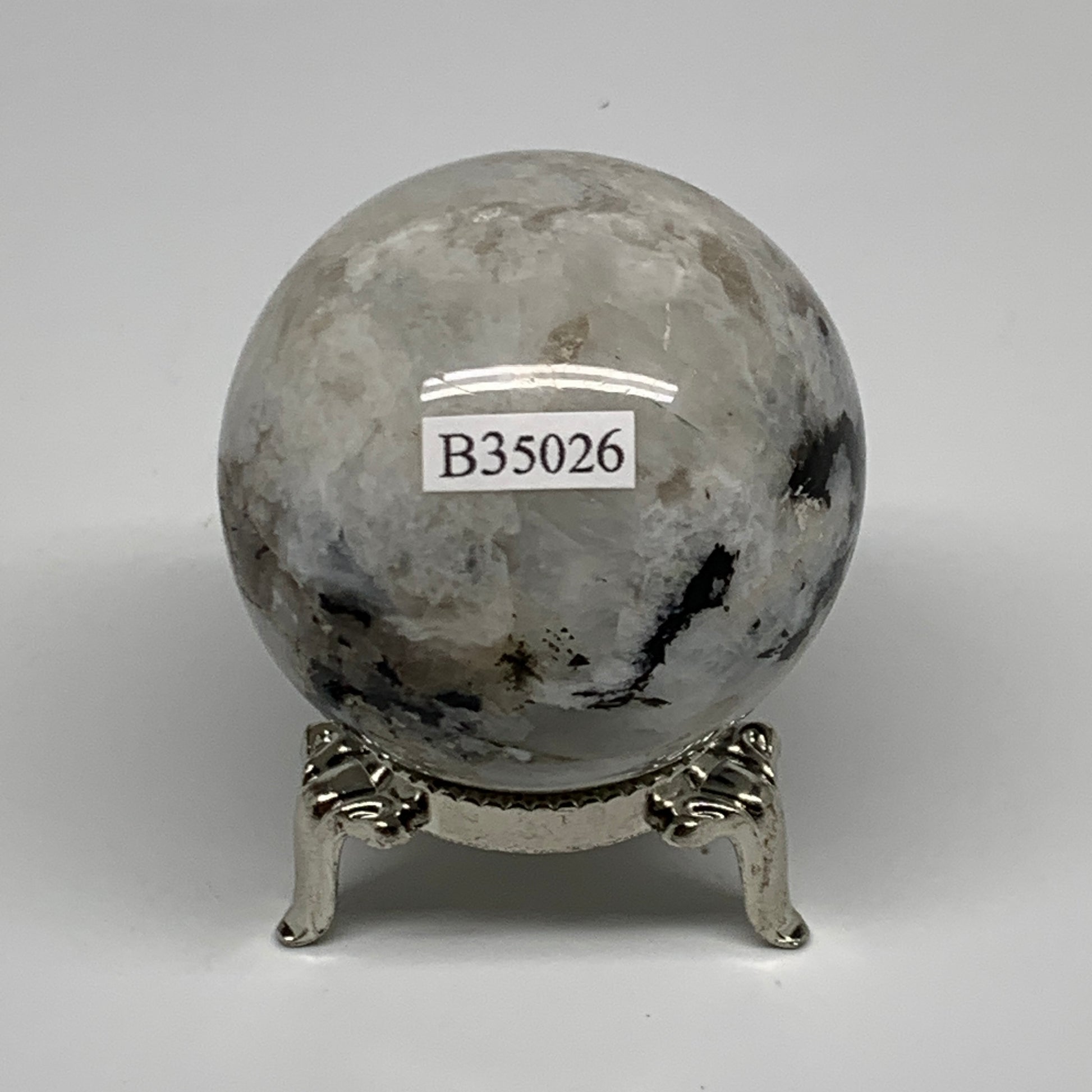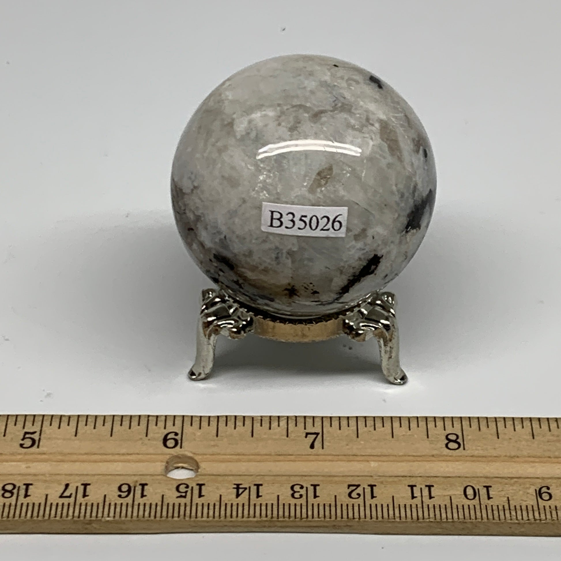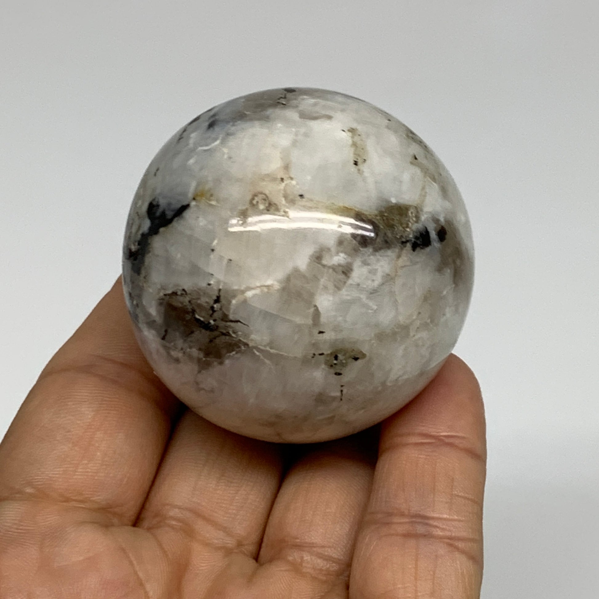 151g, 1.9"(48mm), Natural Rainbow Moonstone Sphere Ball Gemstone, B35026