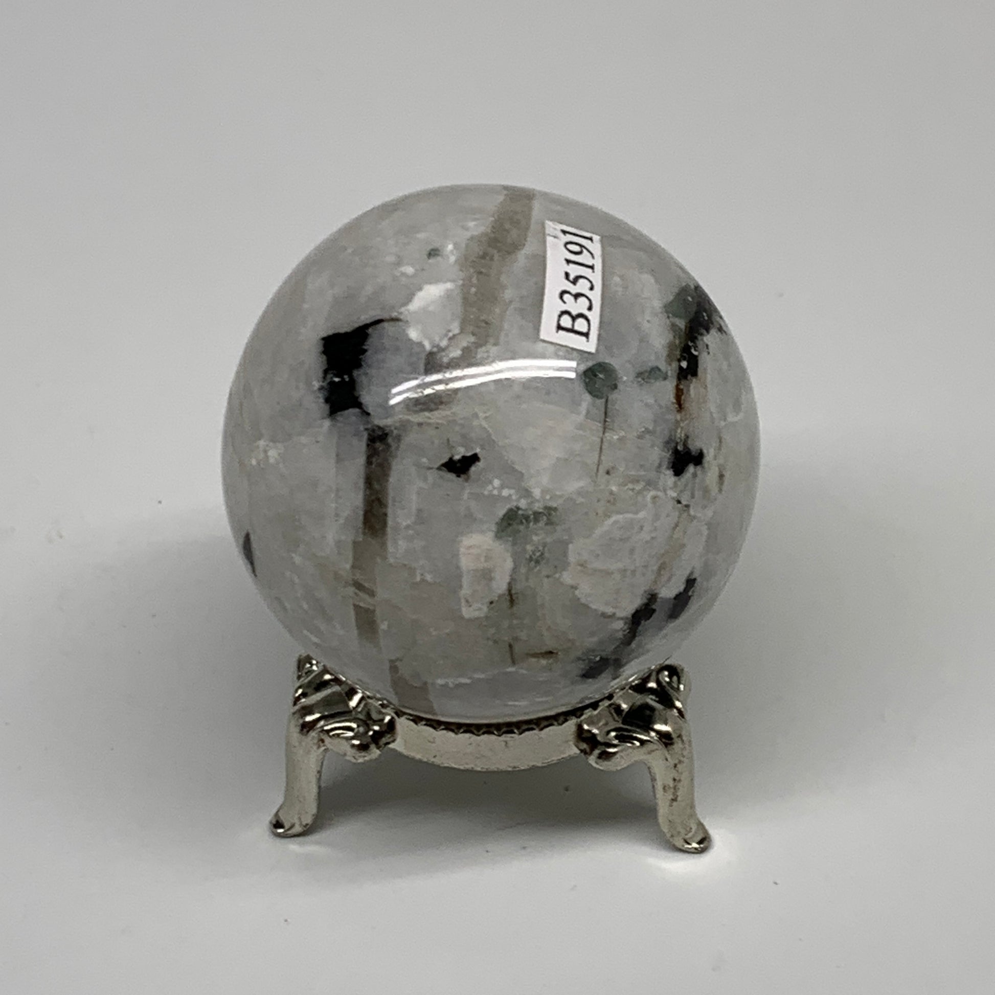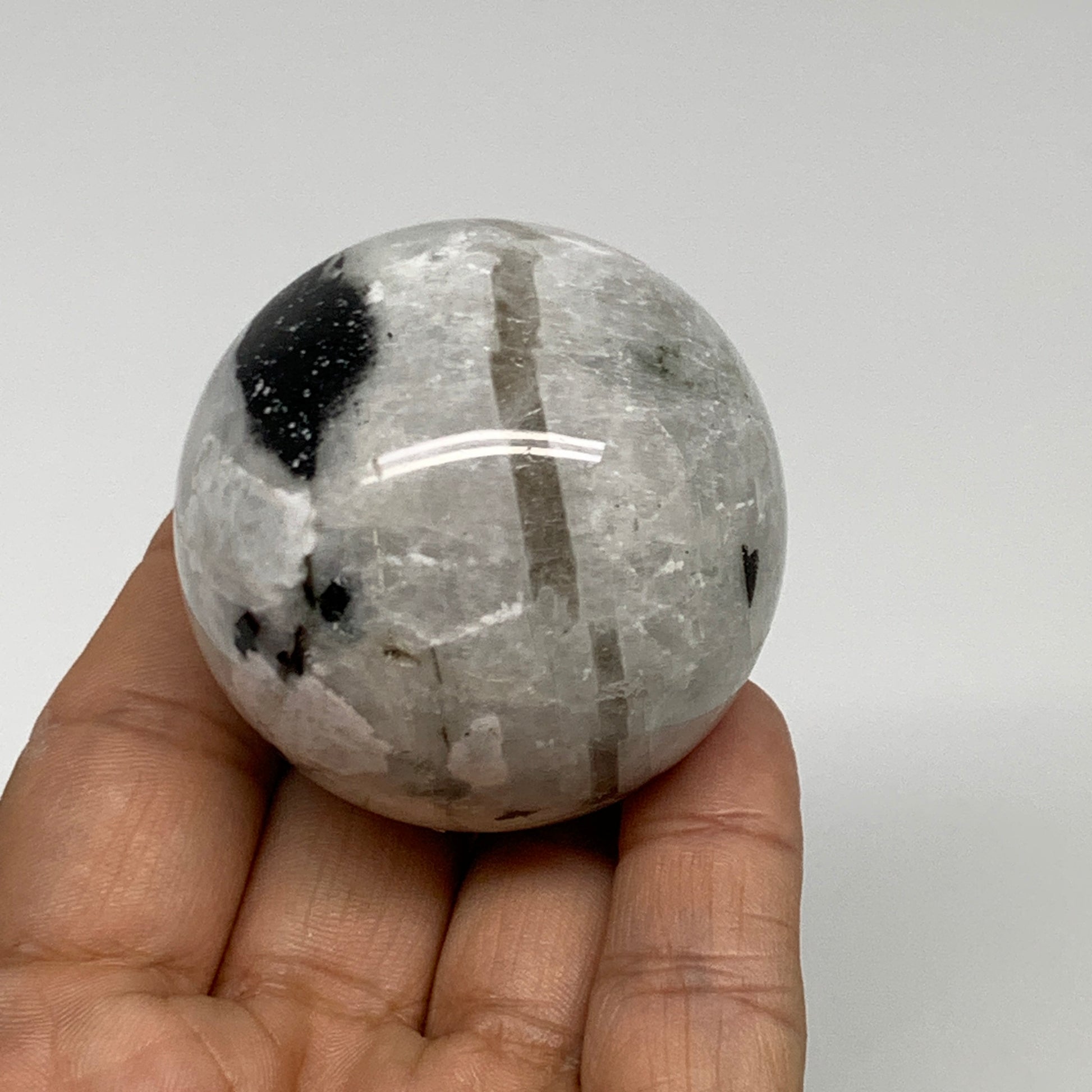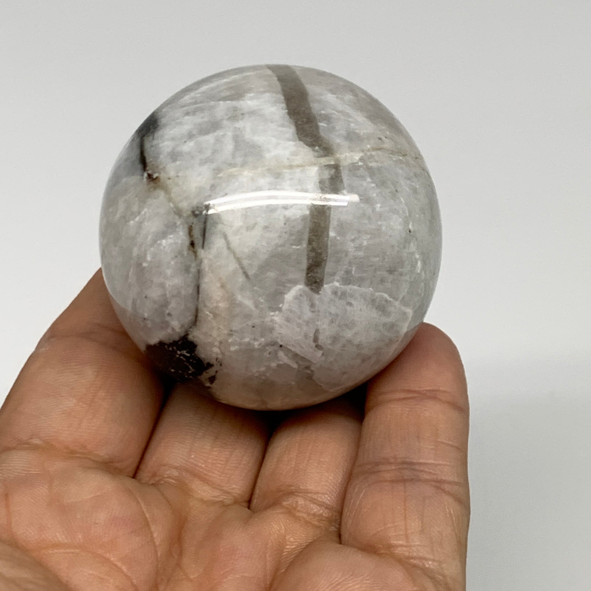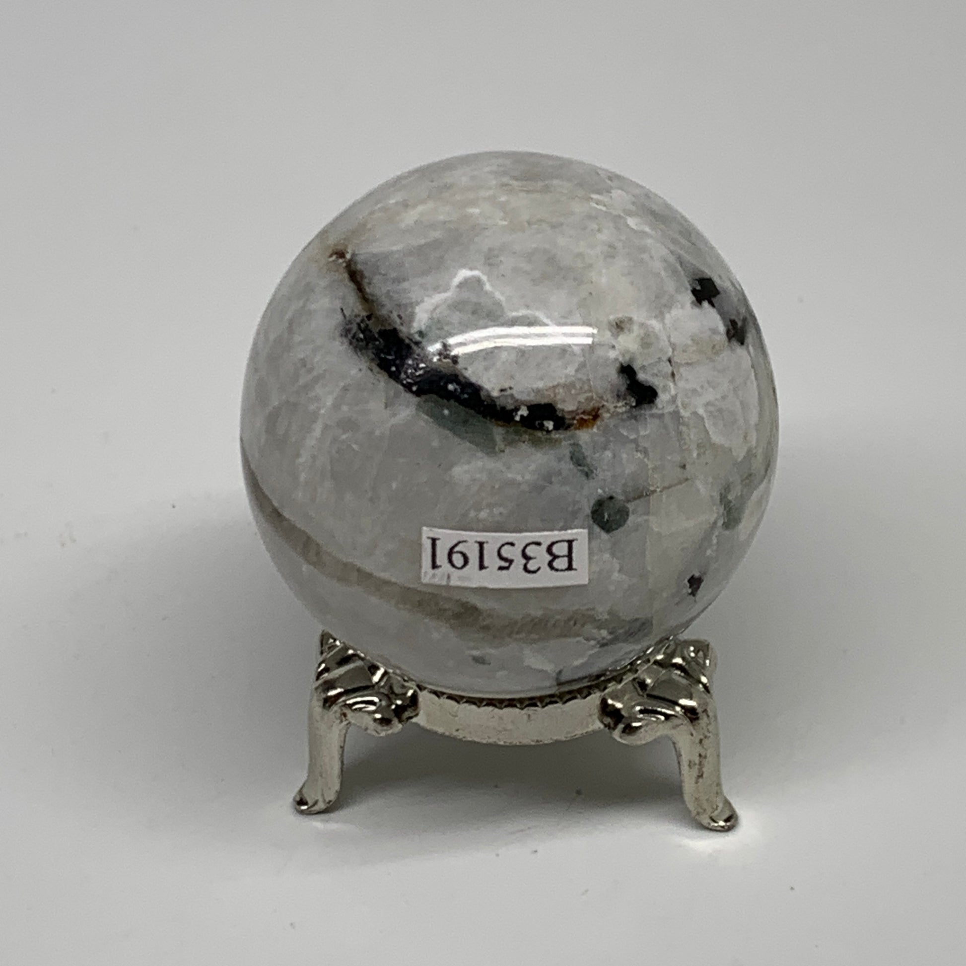 151g, 1.9"(48mm), Natural Rainbow Moonstone Sphere Ball Gemstone, B35191