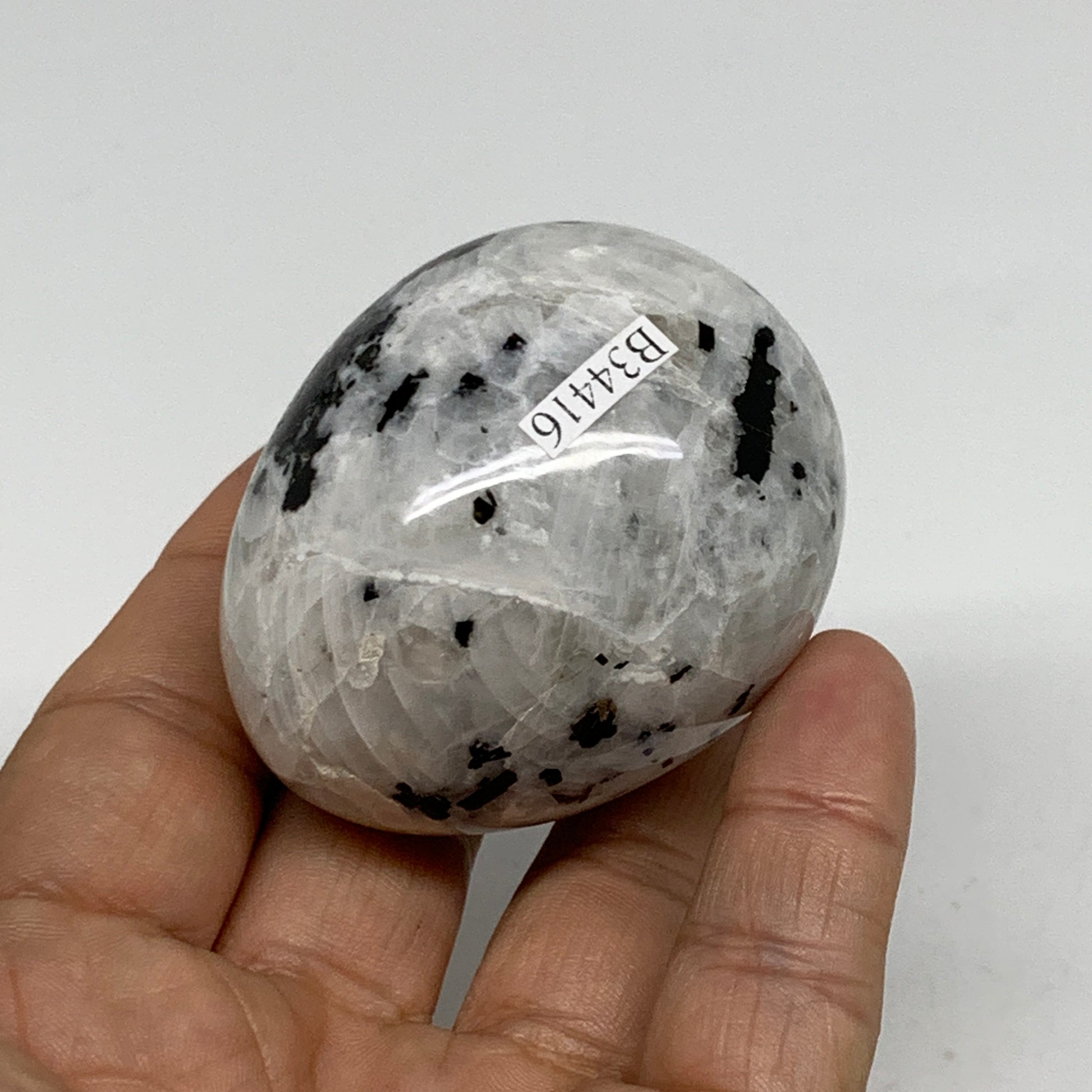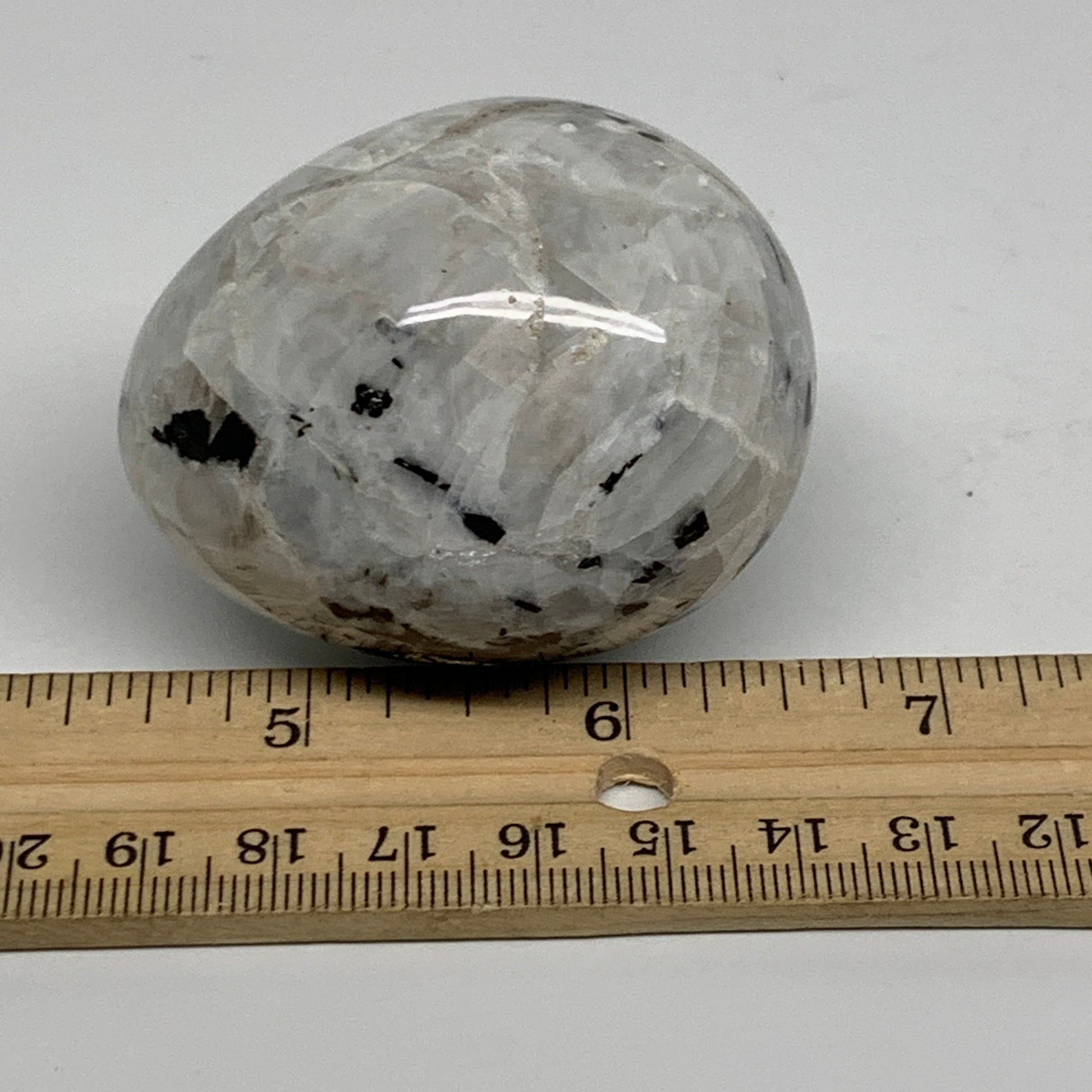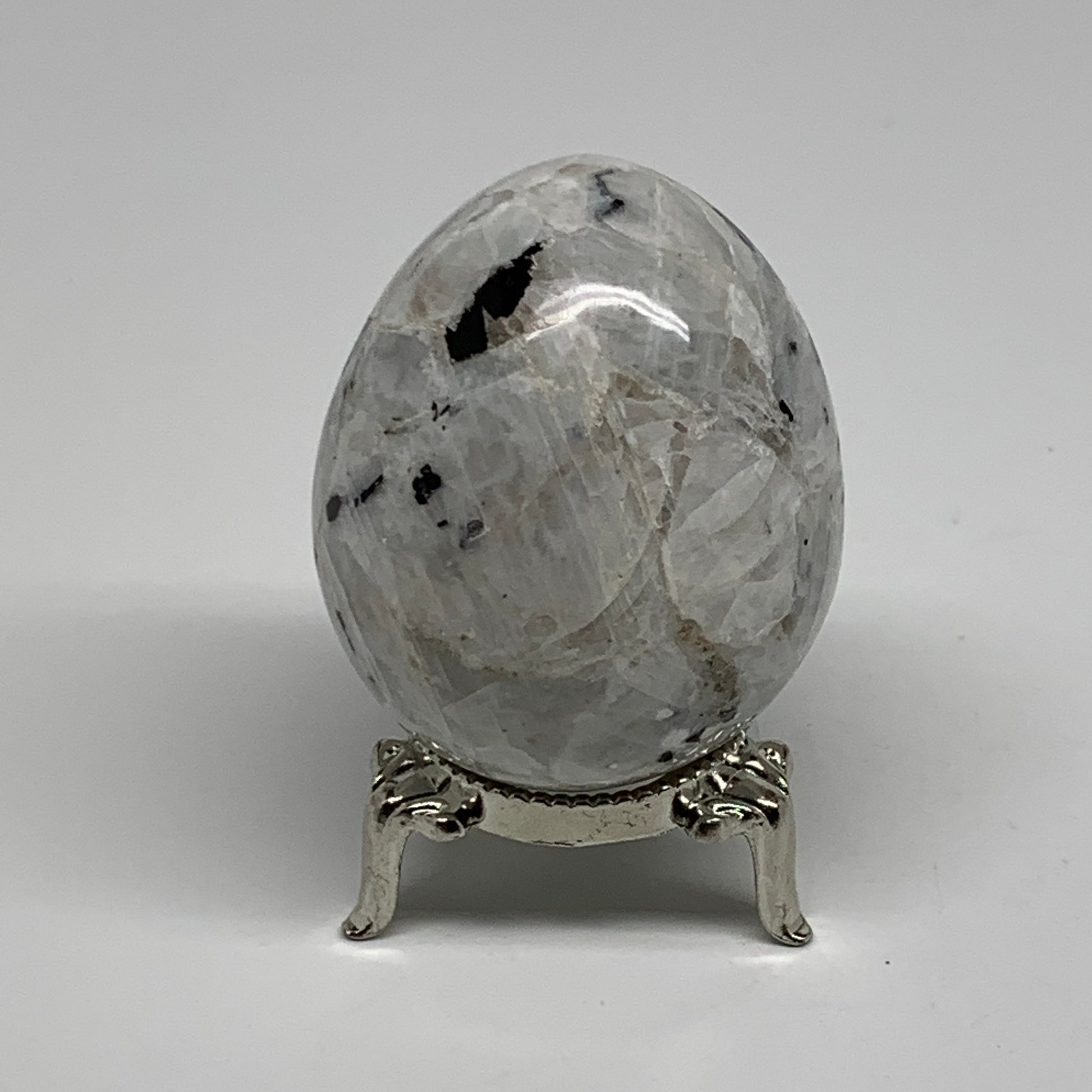 152.7g, 2.2"x1.8", Natural Gemstone White Rainbow Moonstone Egg, B34416