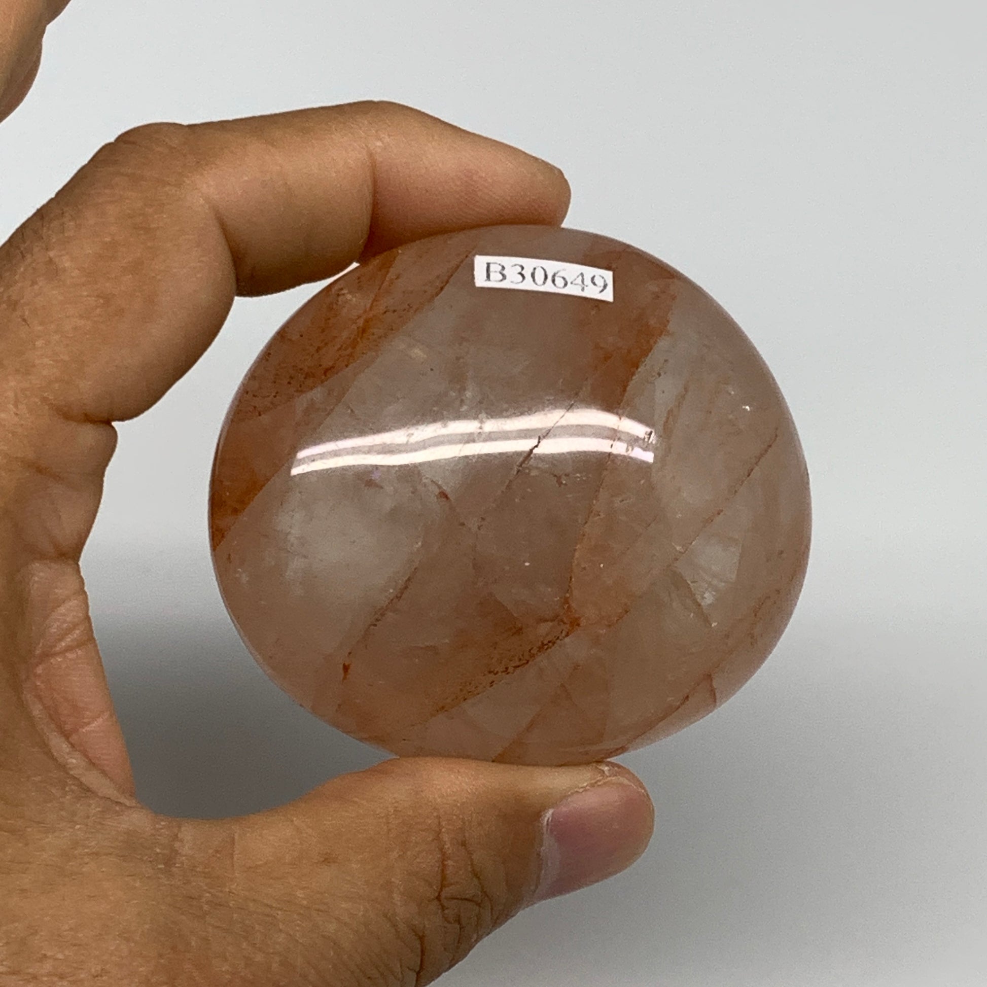 152g,2.3"x2.1"x1.3", Red Hematoid Fire Quartz Palm-Stone Crystal Polished, B30649