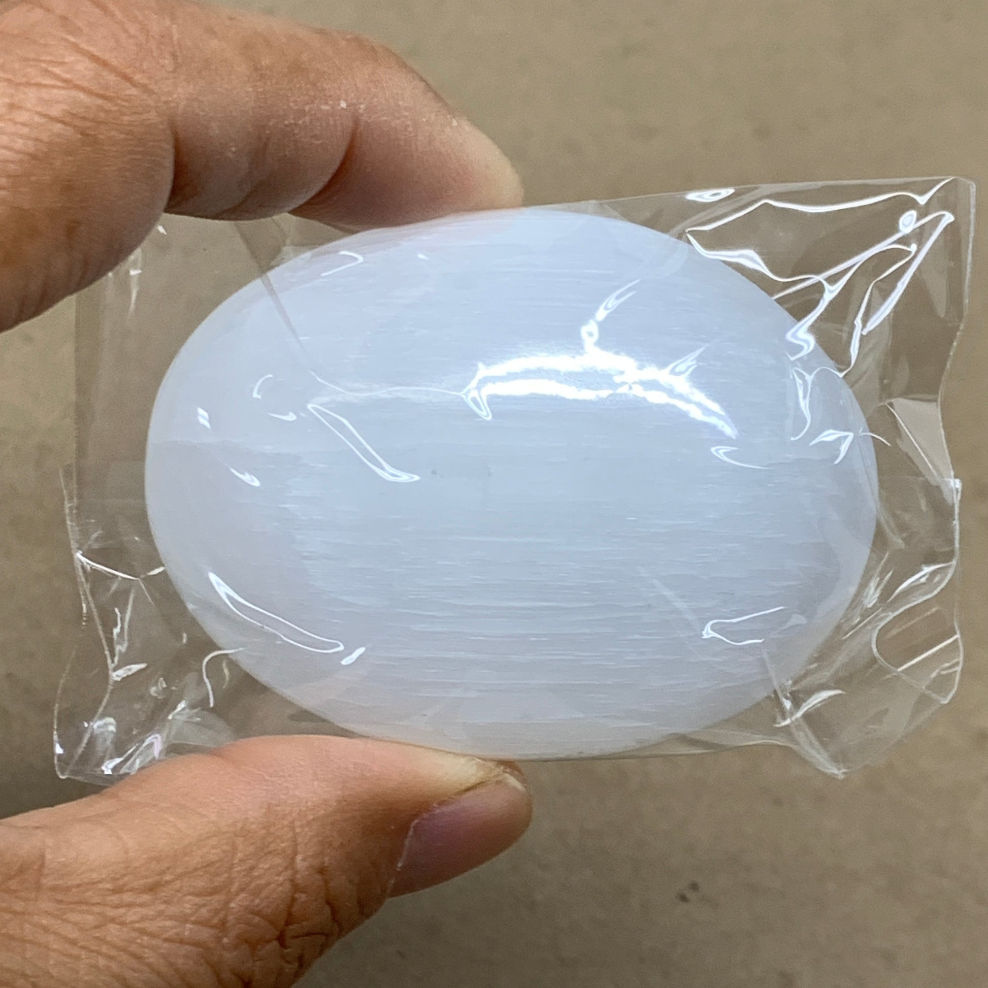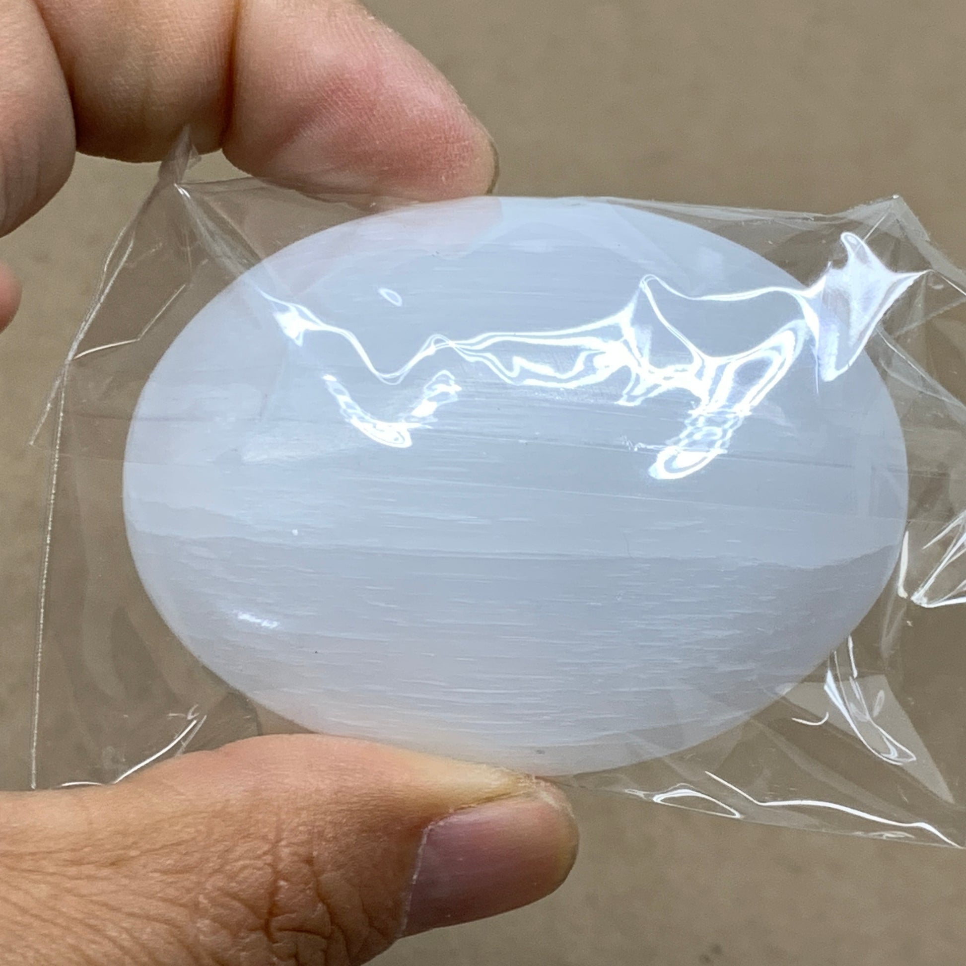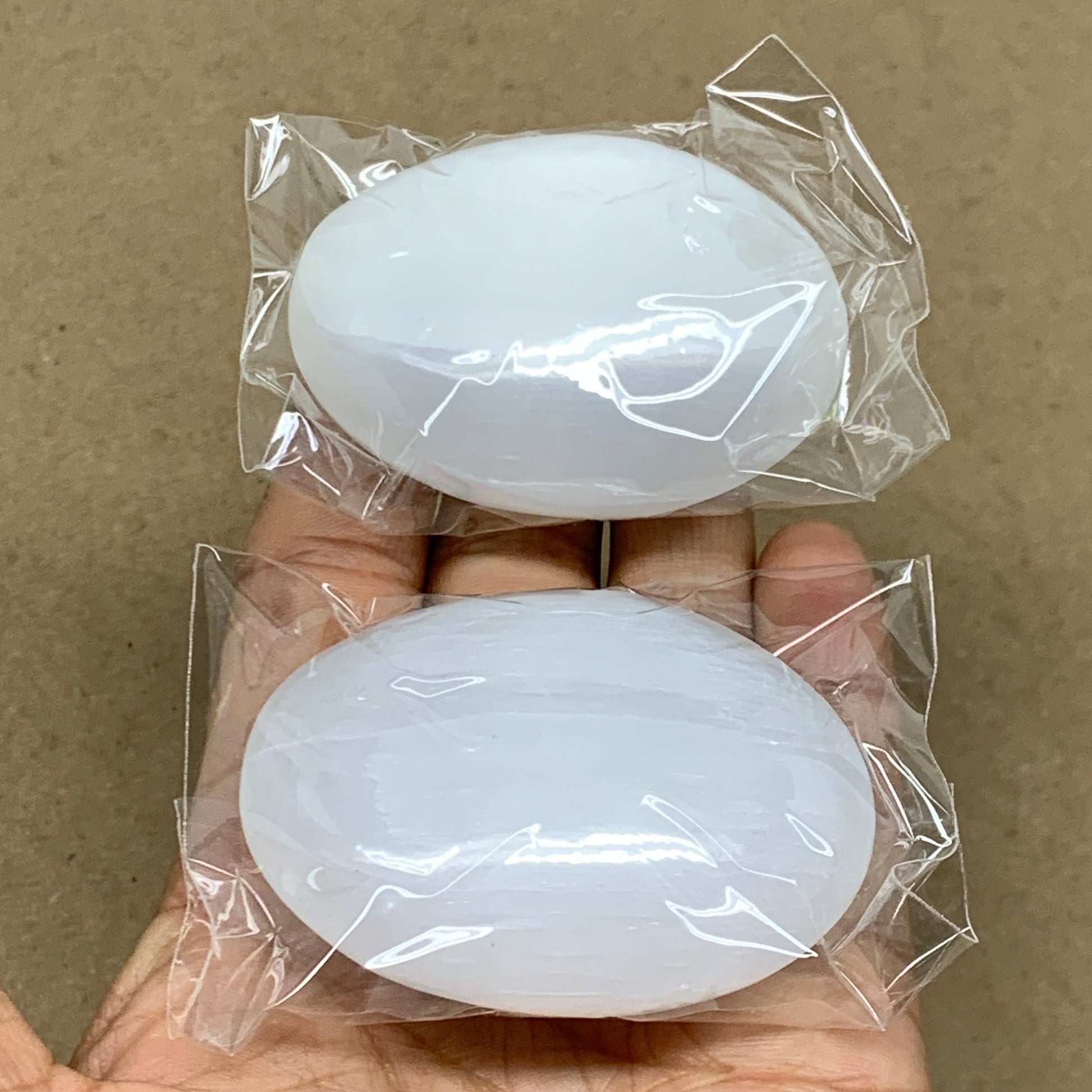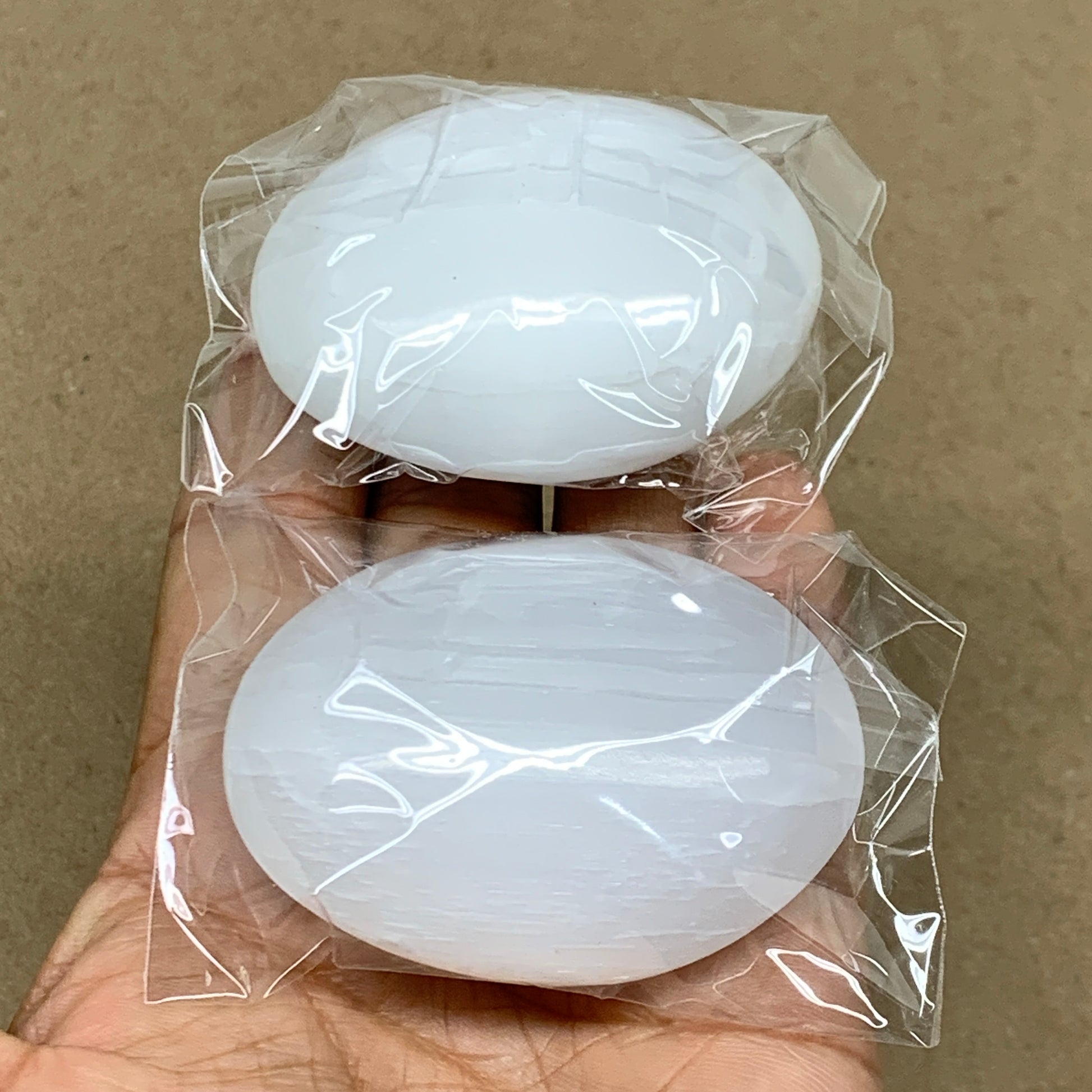 152g, 2.4"x1.8"x1", 2pcs, White Selenite Palmstone Crystal Pillow, B36866