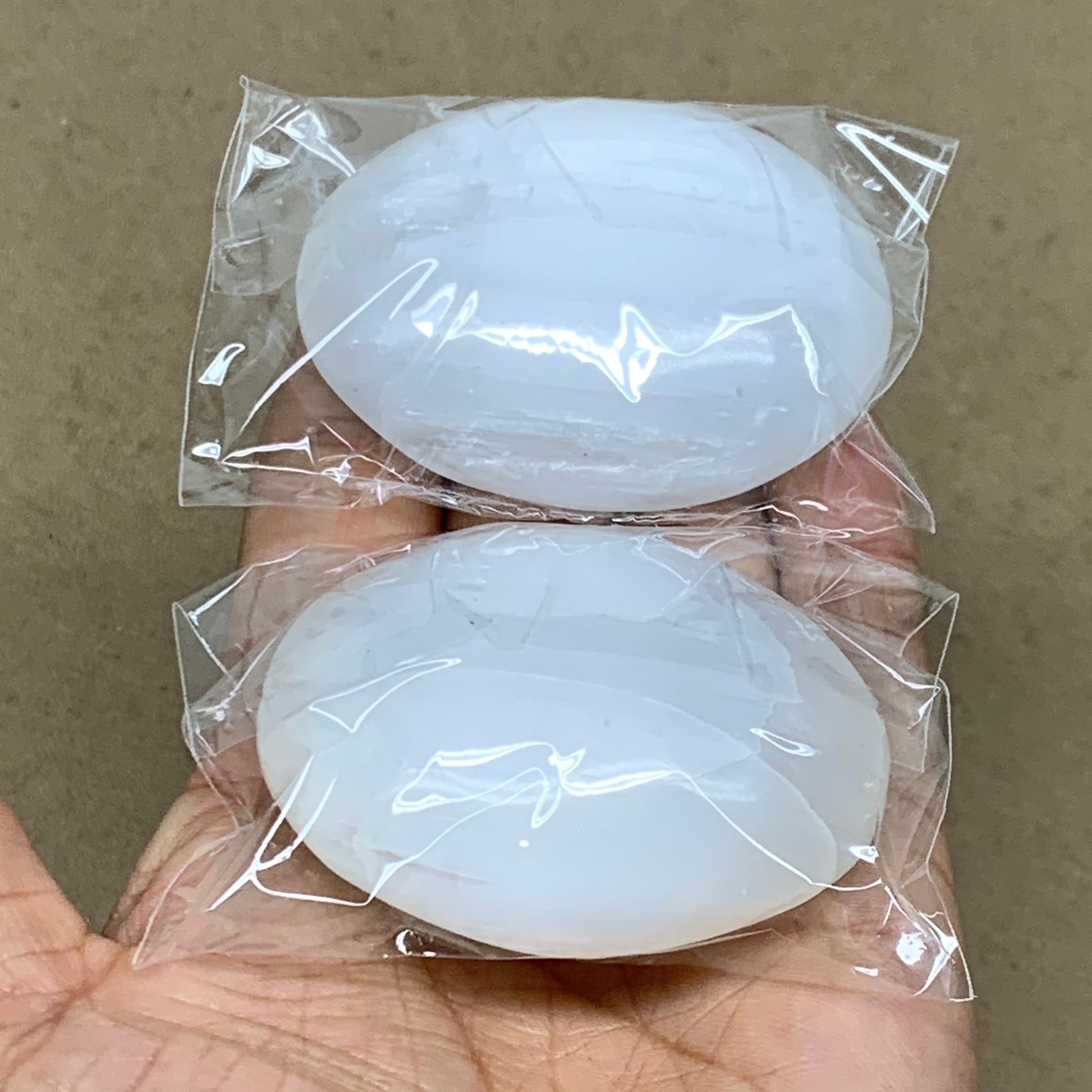 152g, 2.4"x1.8"x1", 2pcs, White Selenite Palmstone Crystal Pillow, B36881
