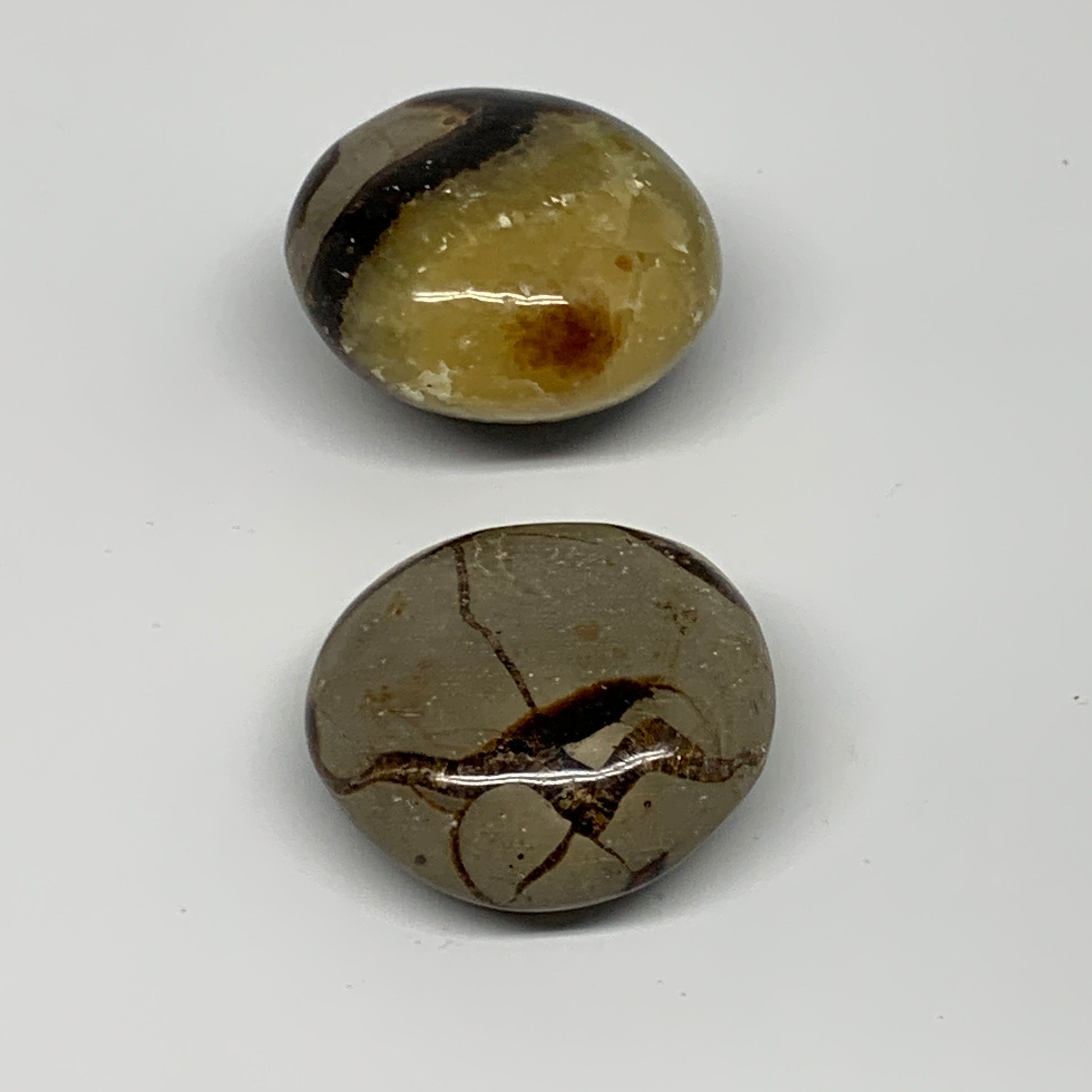 156.8g, 1.9"-2", 2pcs, Septarian Nodule Palm-Stone Polished Reiki Crystal, B28250