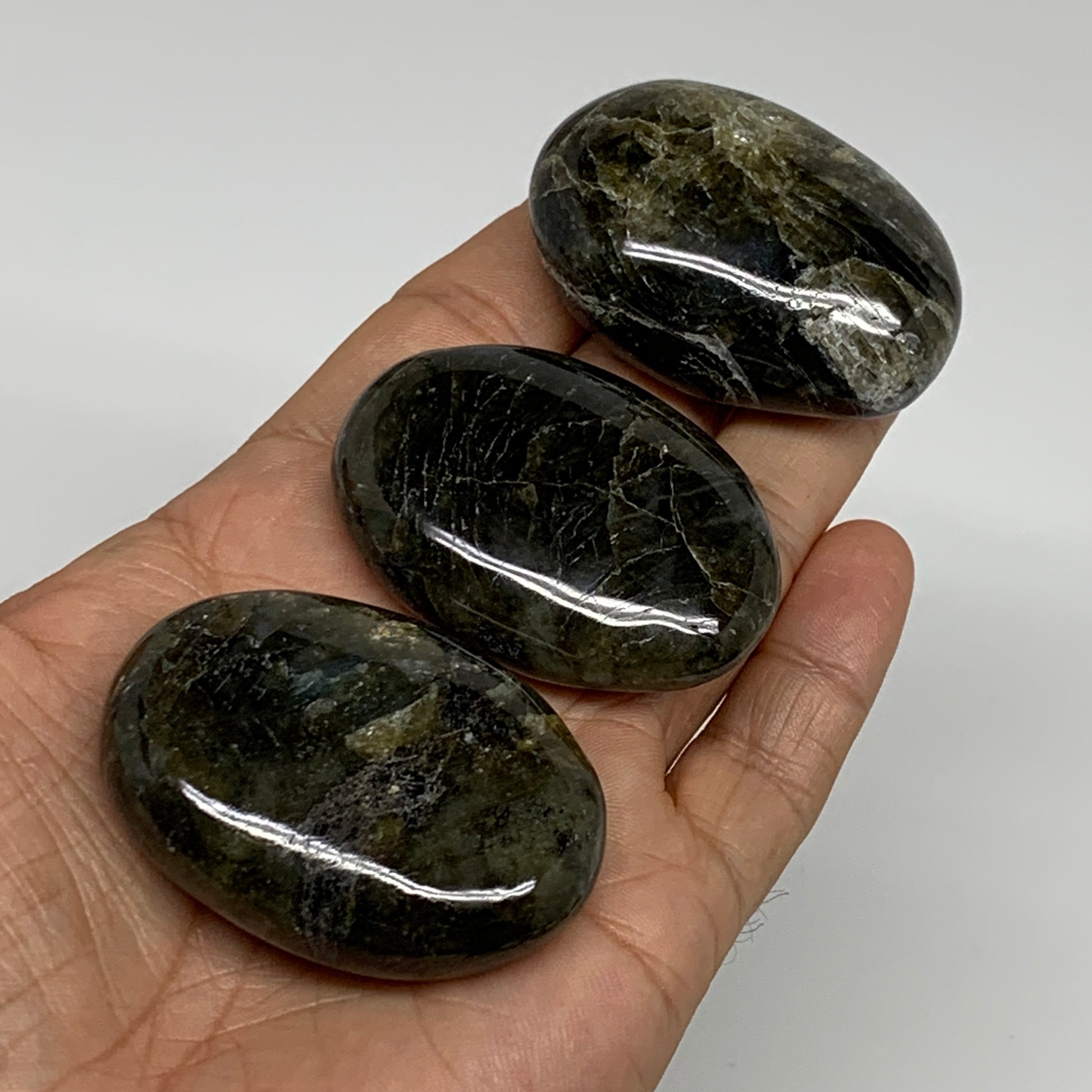 153.2g, 2"-2", 3pcs, Labradorite Palm-stone Polished Gemstone, B35542