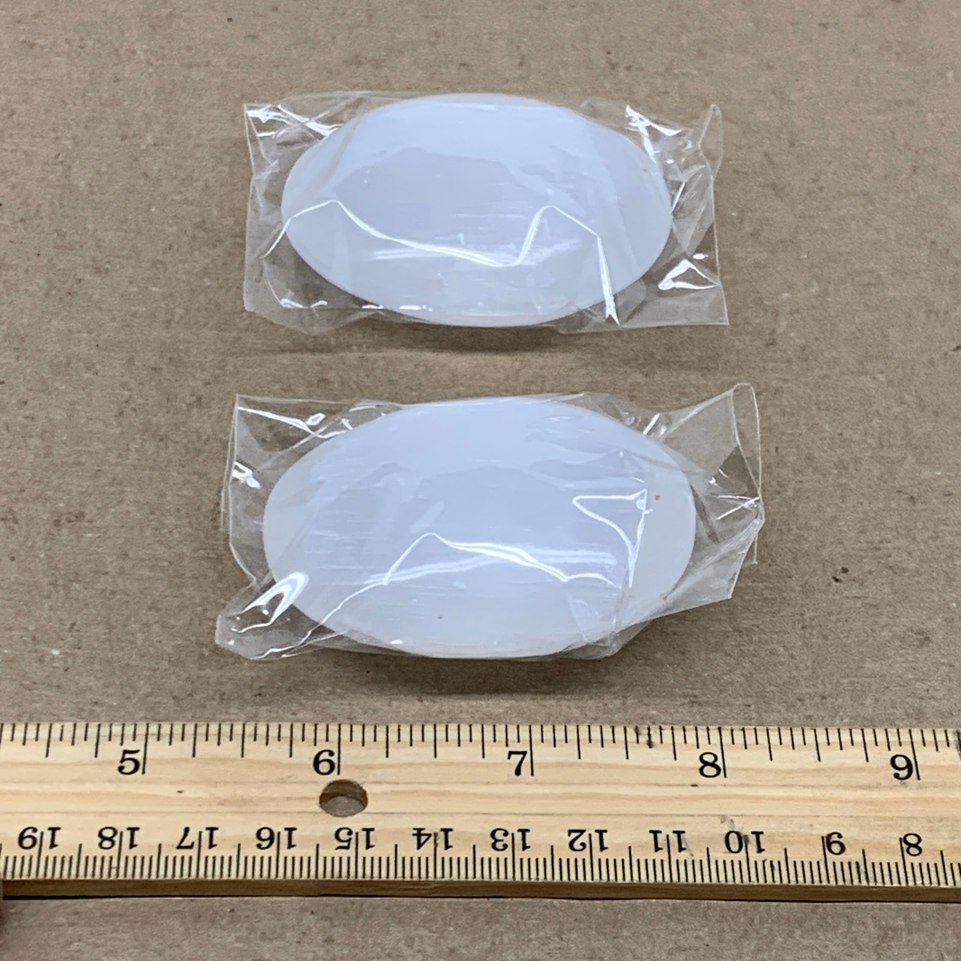 153g, 2.4"x1.8"x1", 2pcs, White Selenite Palmstone Crystal Pillow, B36882