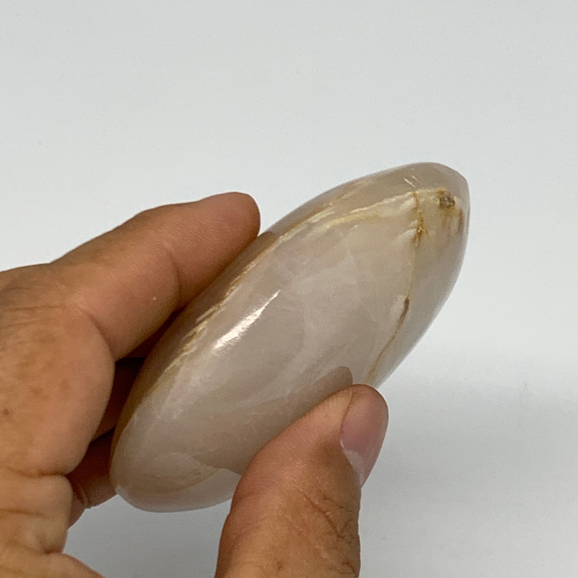155.1g,3"x2.2"x1",Pink Calcite Palm-Stone Crystal Polished,B23075
