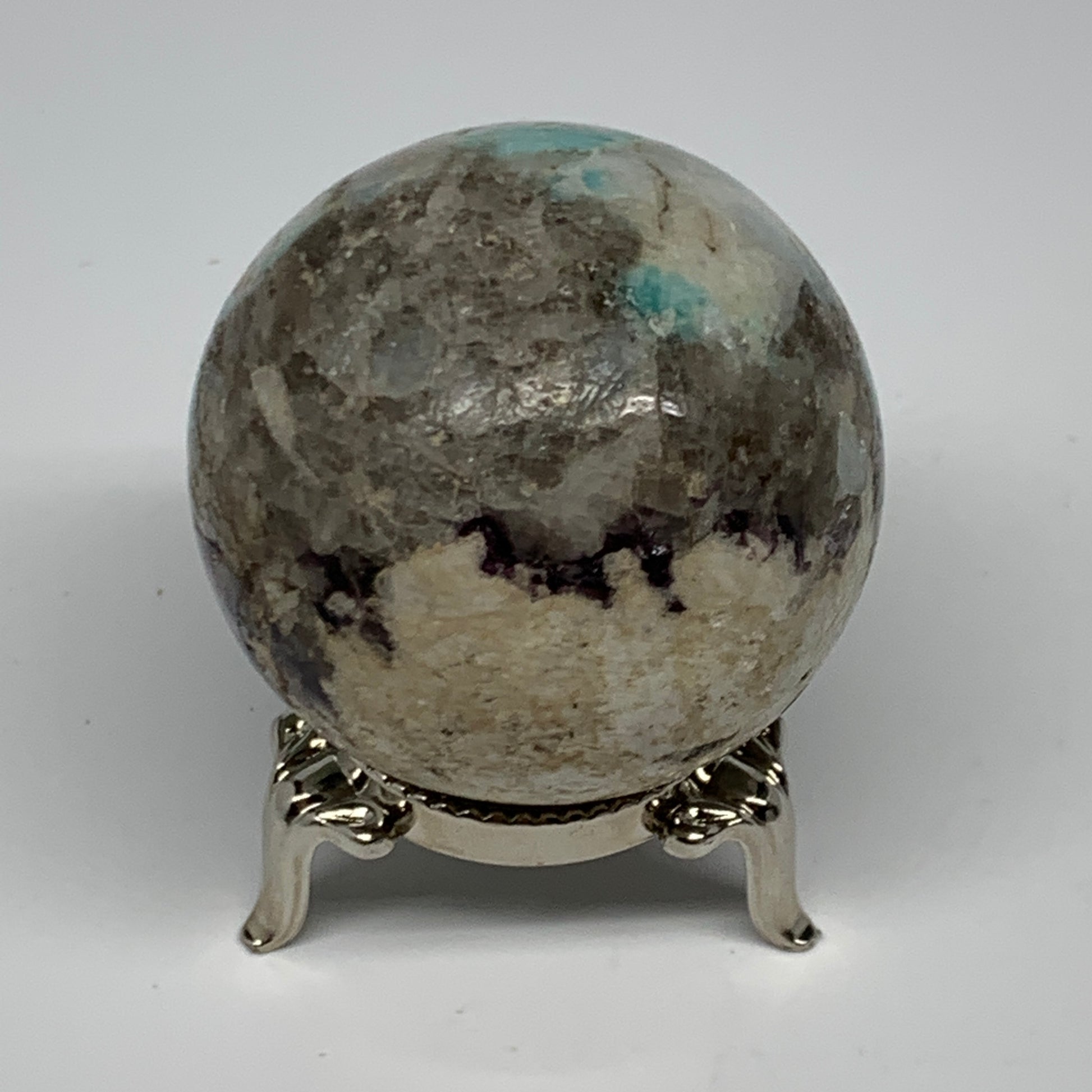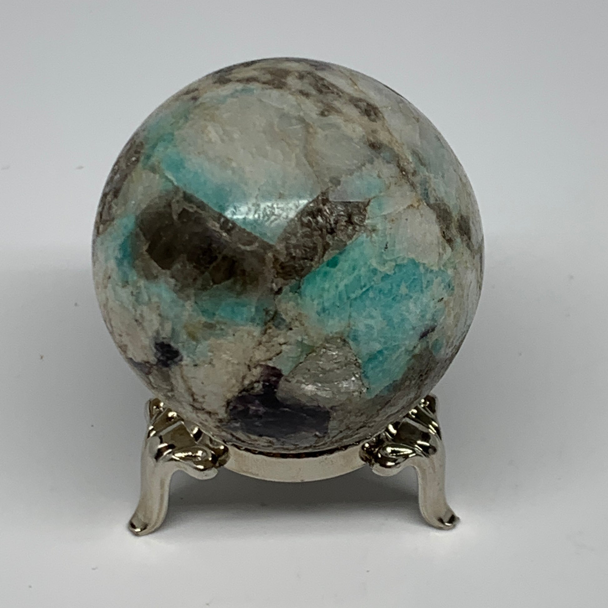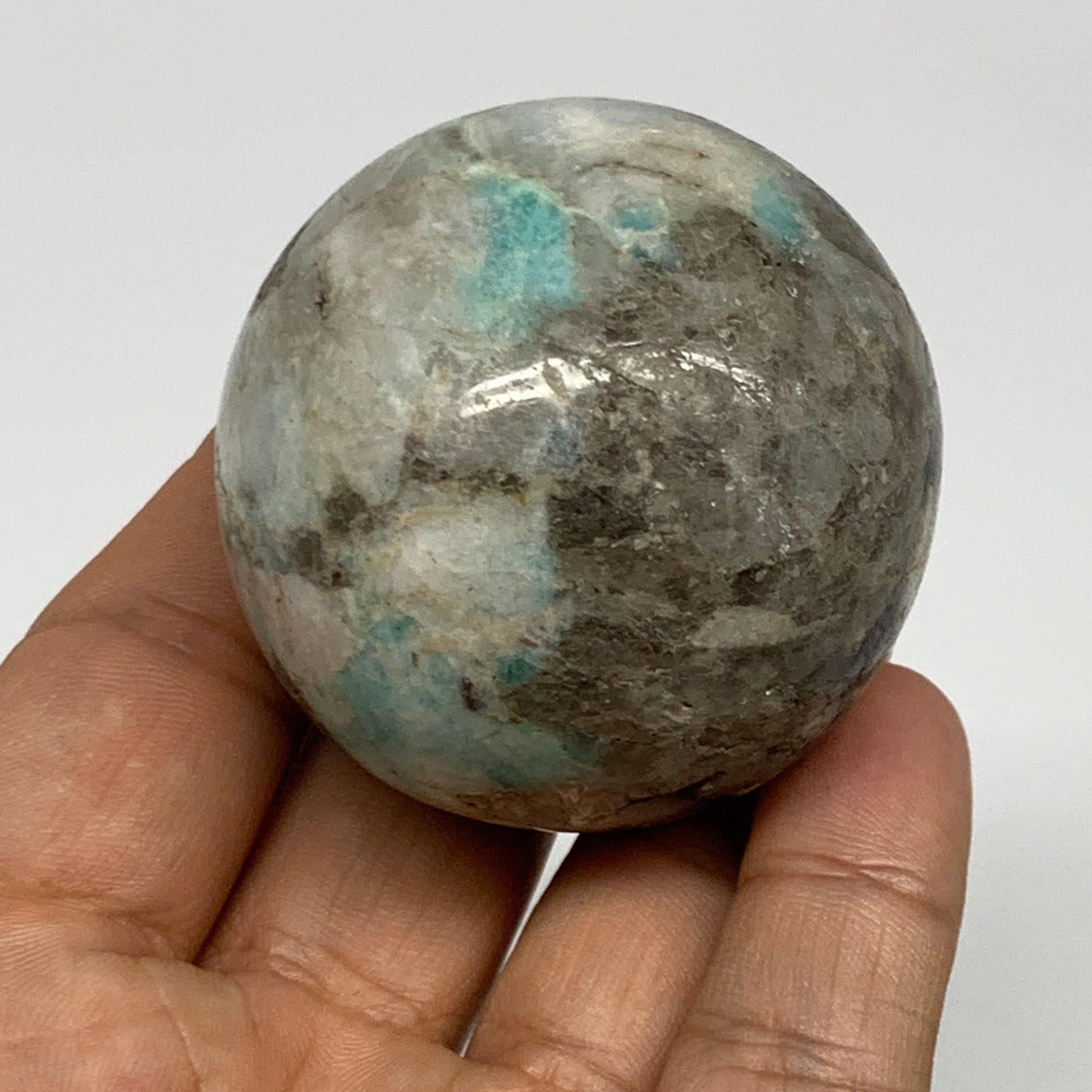 155g, 1.9" Amazonite Smoky Quartz Sphere Ball Gemstone from Madagascar, Black Tourmaline Inclusions, B15853