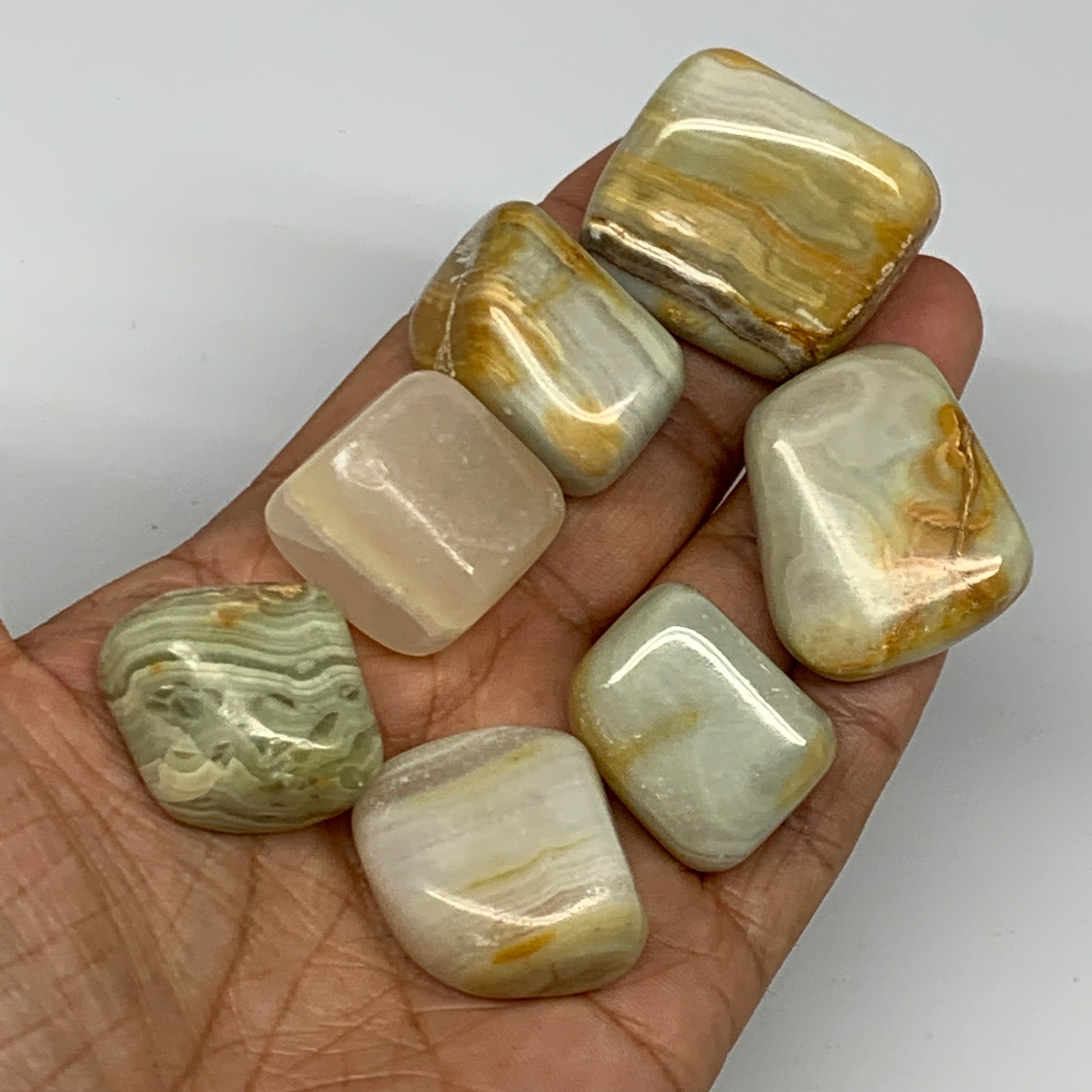 157.2g, 0.9"-1.3", 7pcs, Onyx/Banded Tumbled Stones @Afghanistan, B26722