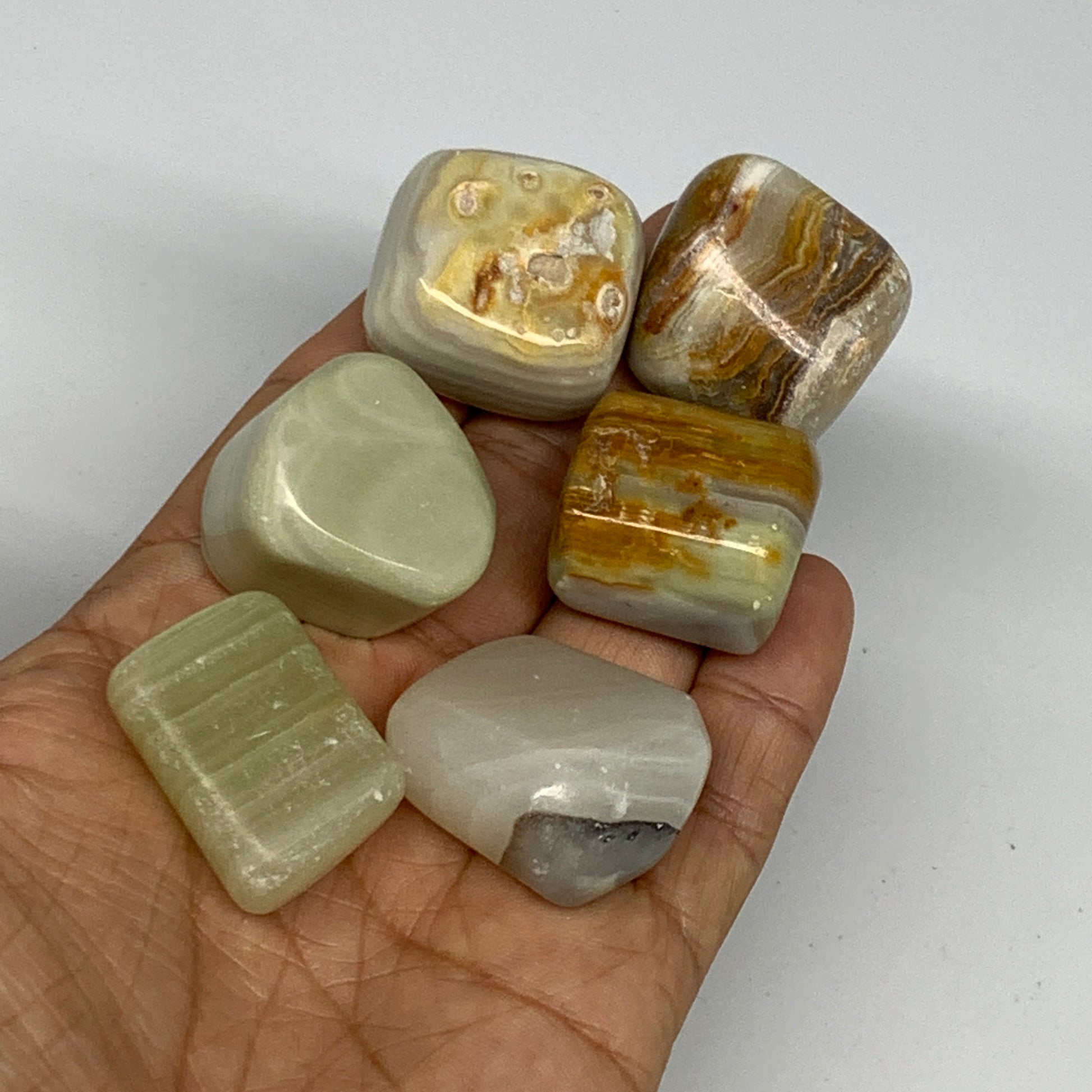 158.1g, 1"-1.1", 6pcs, Onyx/Banded Tumbled Stones @Afghanistan, B26712