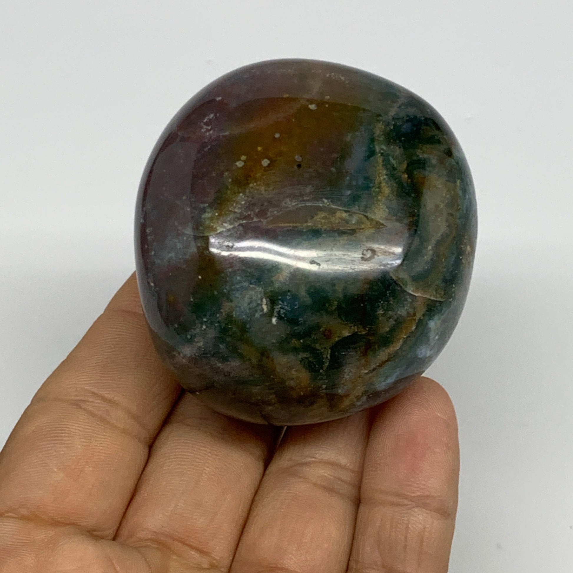 158.1g, 2.3"x2"x1.5" Natural Ocean Jasper Palm-Stone Orbicular Jasper, B30744
