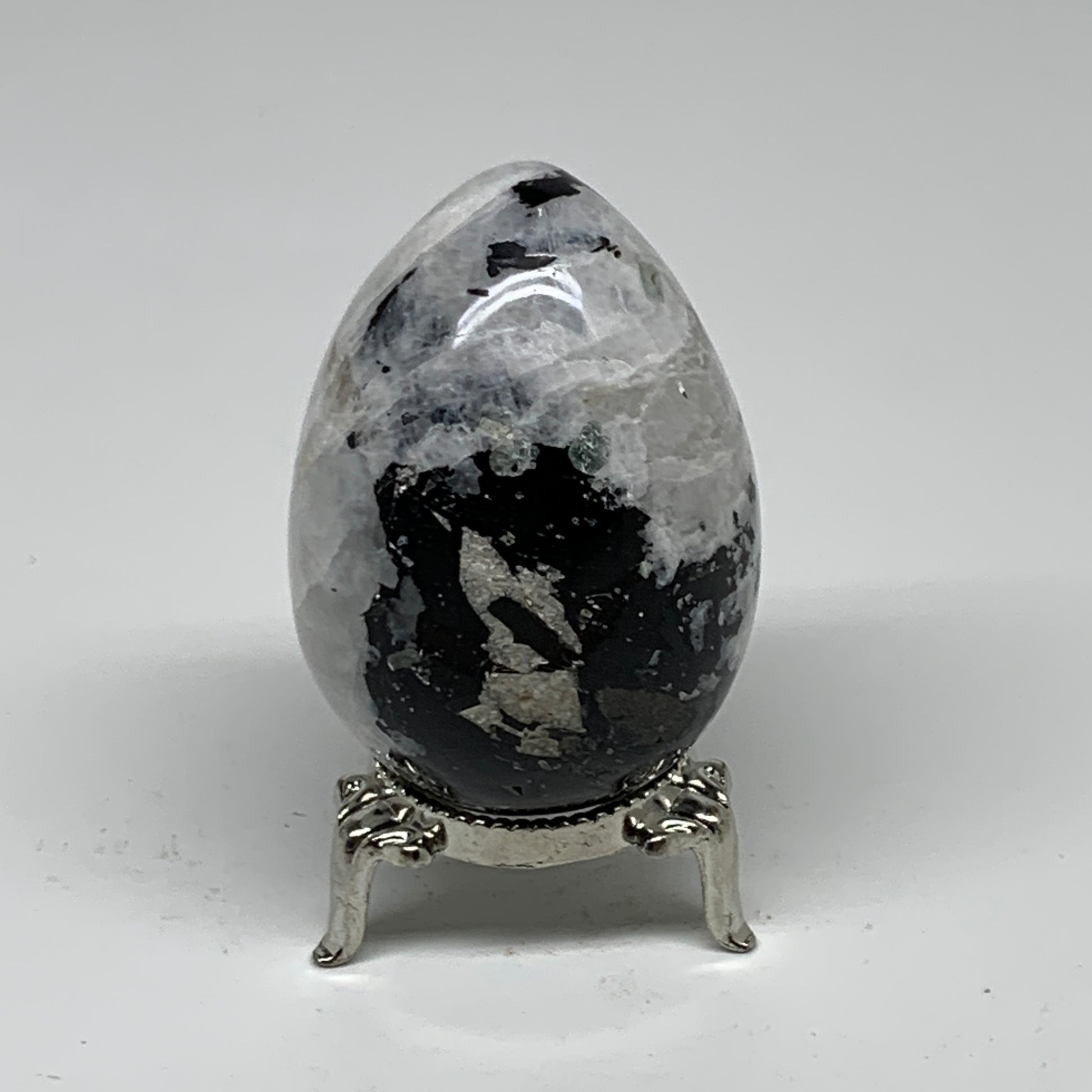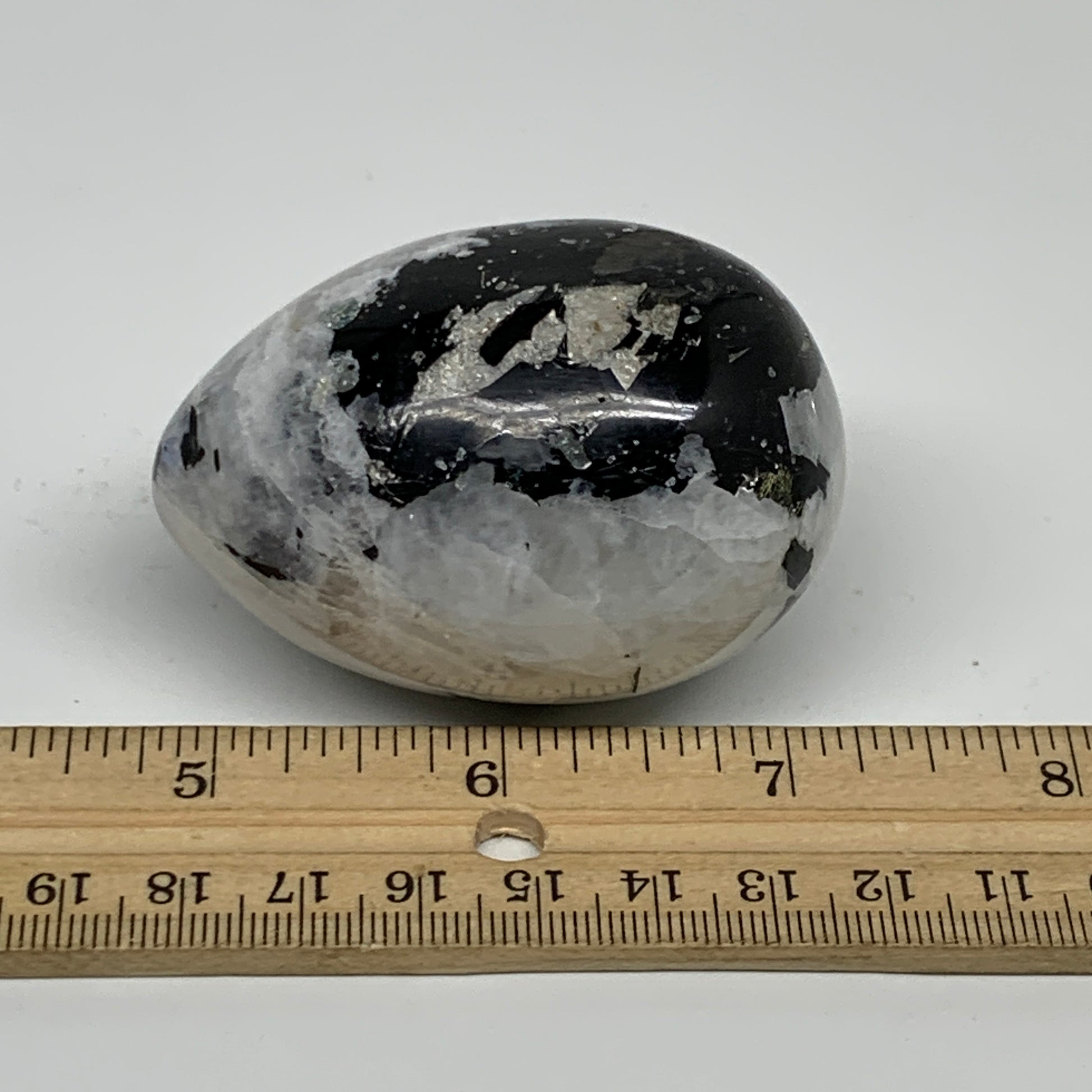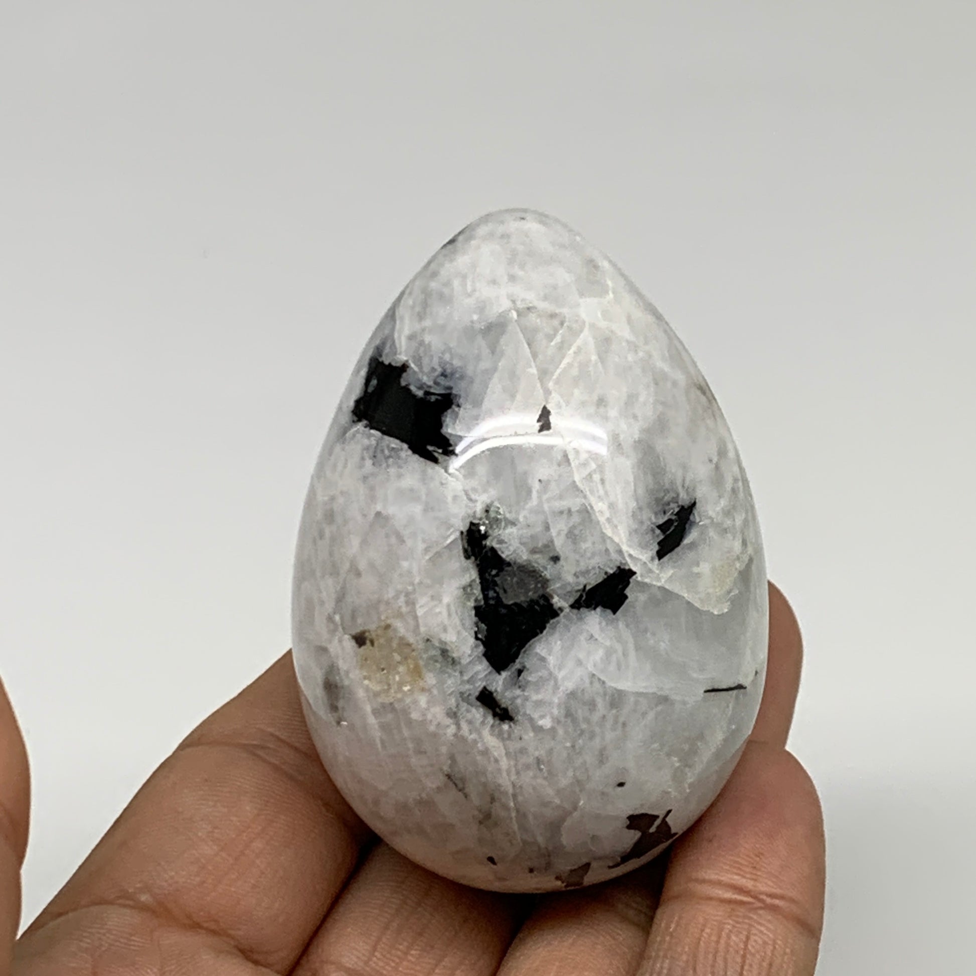 159.9g, 2.4"x1.7", Natural Gemstone White Rainbow Moonstone Egg, B34294