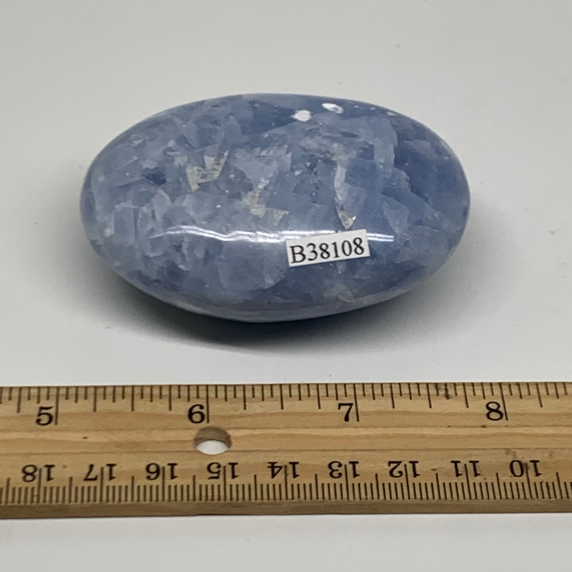 159.9g, 2.8"x2"x1.2" Blue Calcite Palm-Stone Polished Tumbled, B38108