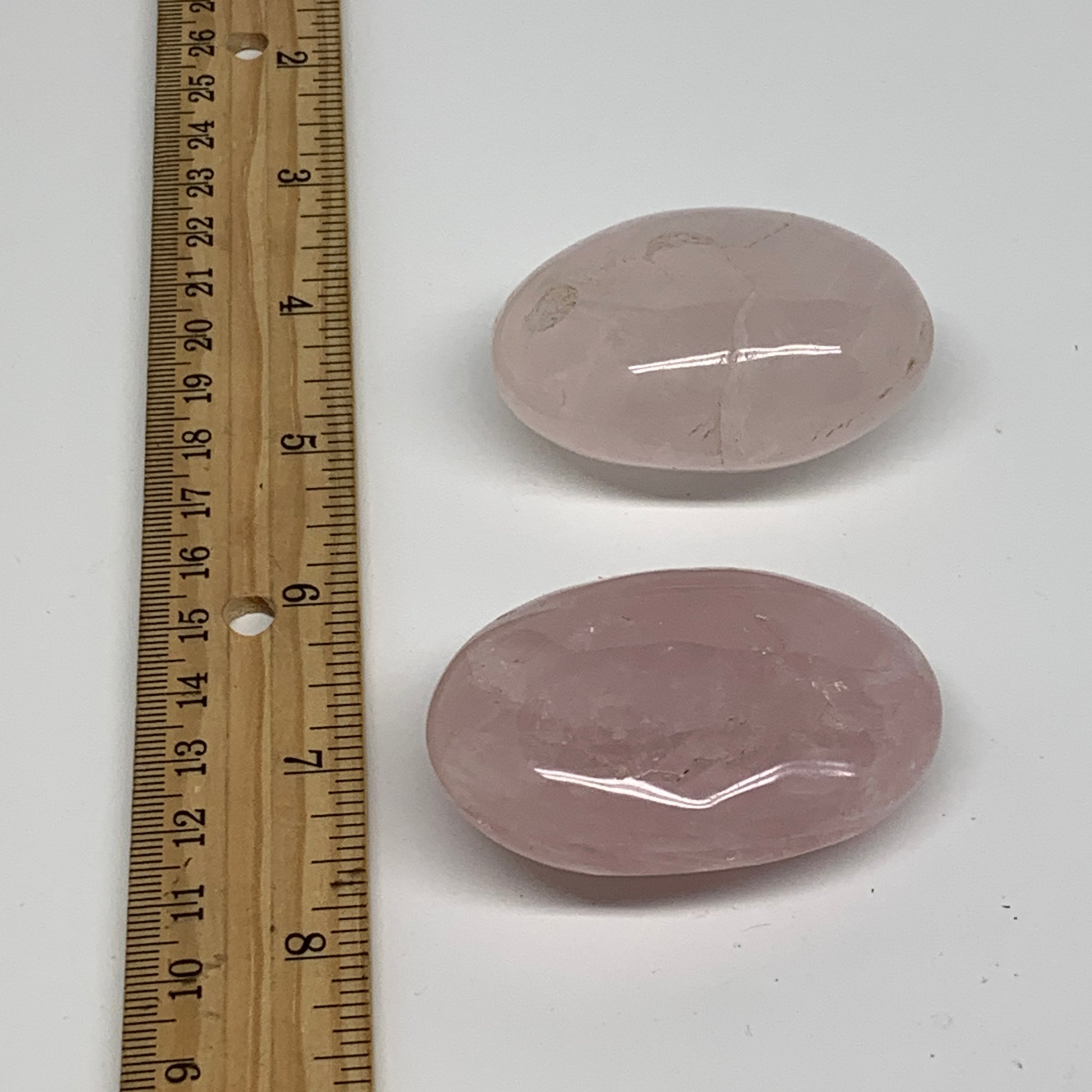 160g , 2.1"-2.3", 2pcs, Natural Pink Rose Quartz Palm-stone Crystal, B37230