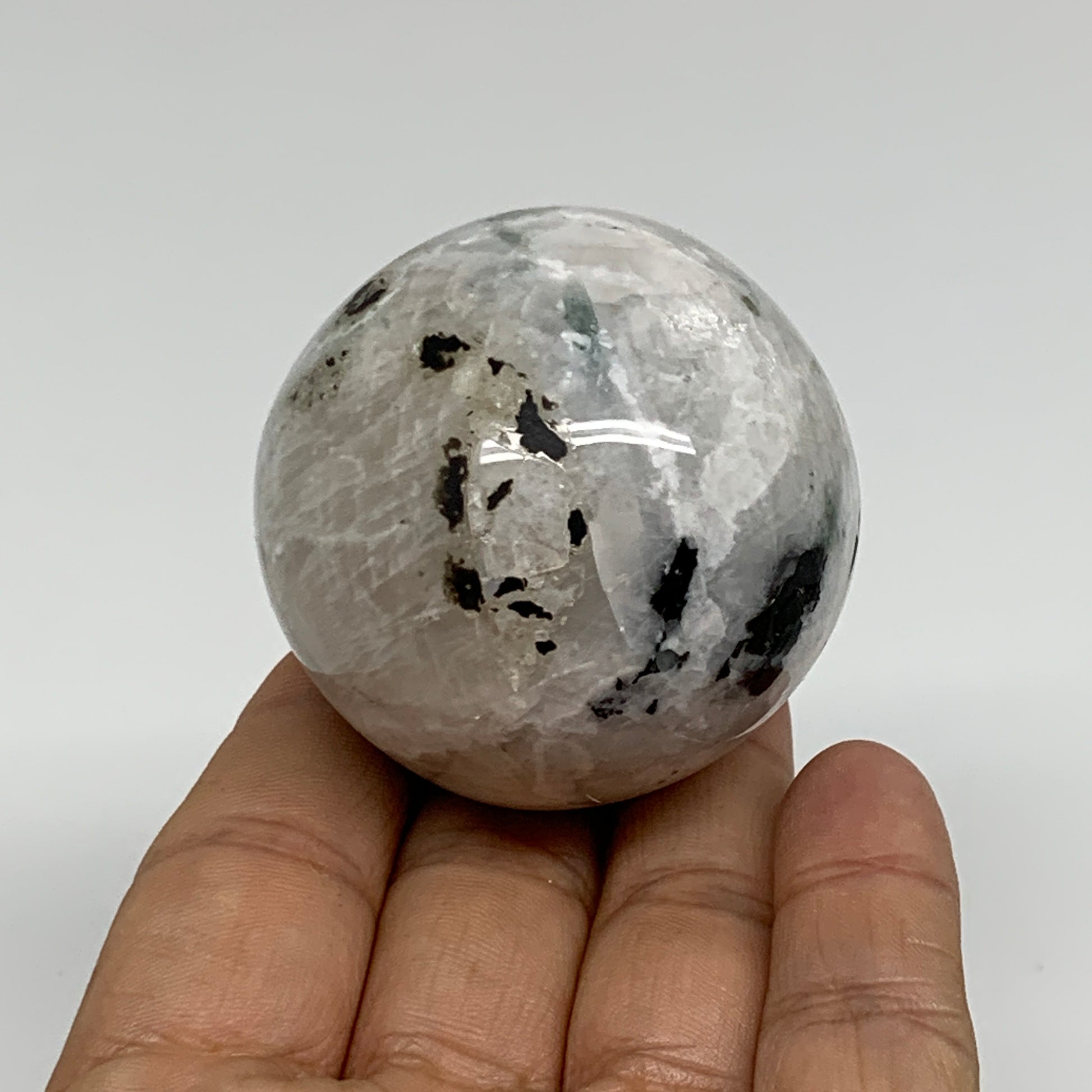 160g, 2"(49mm), Natural Rainbow Moonstone Sphere Ball Gemstone, B34332