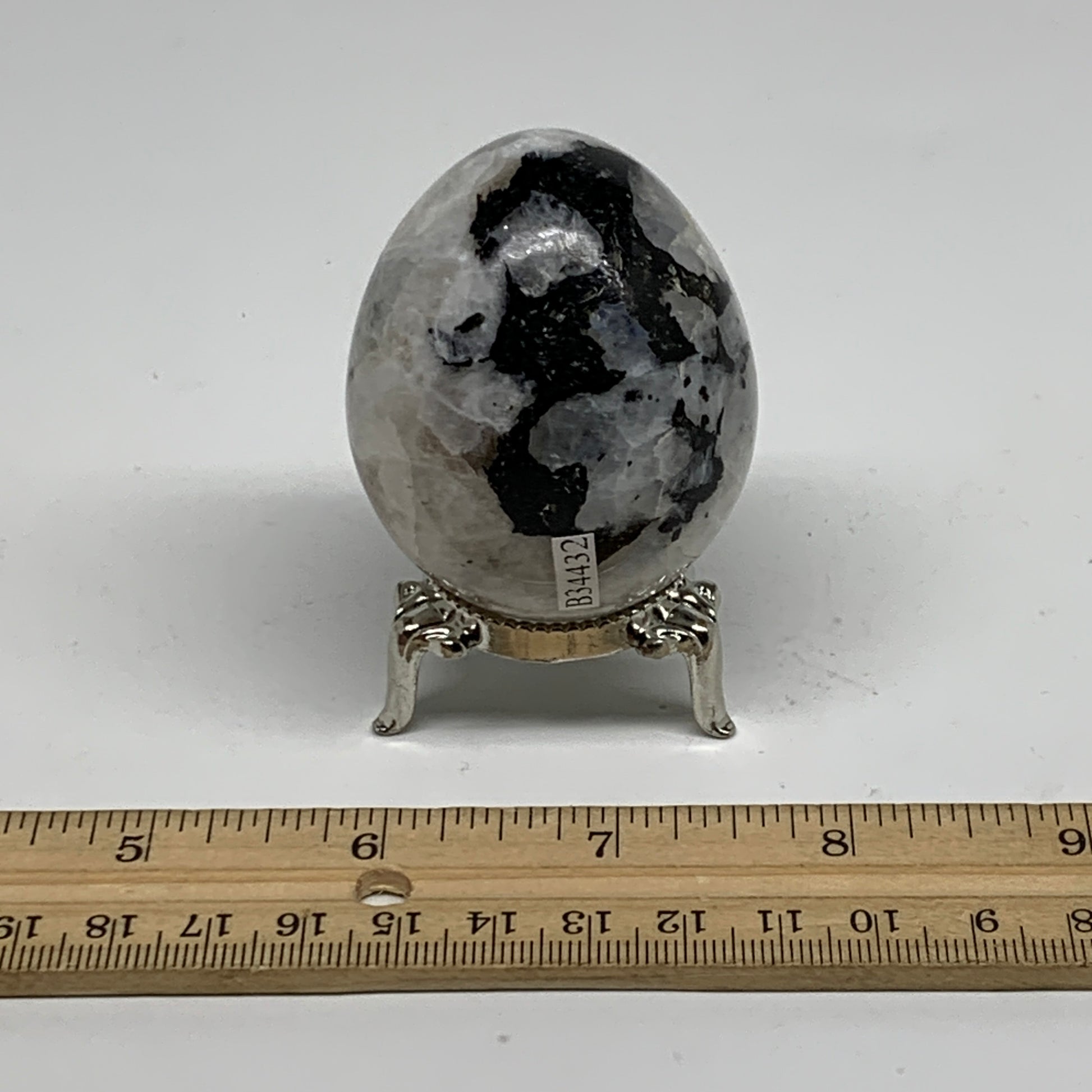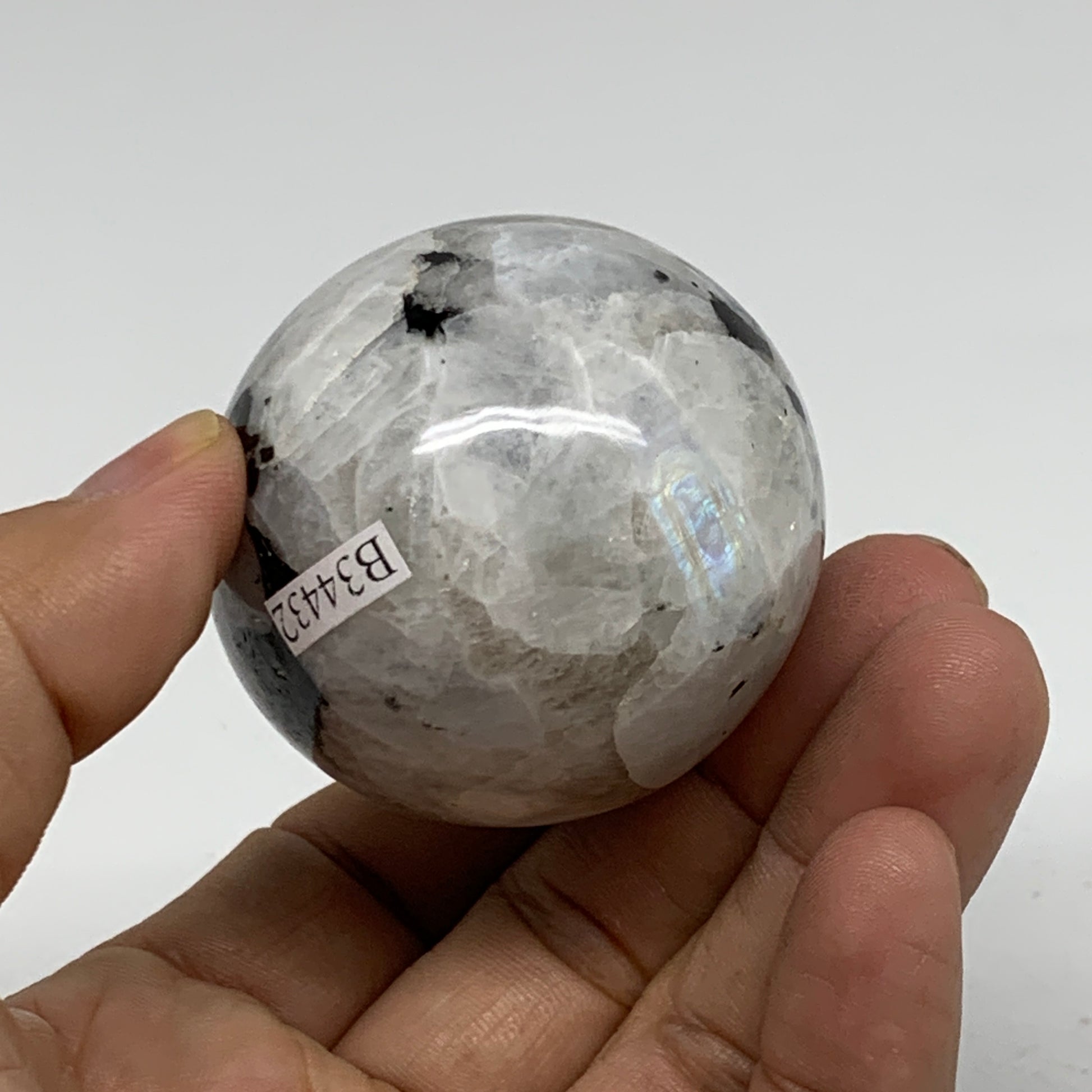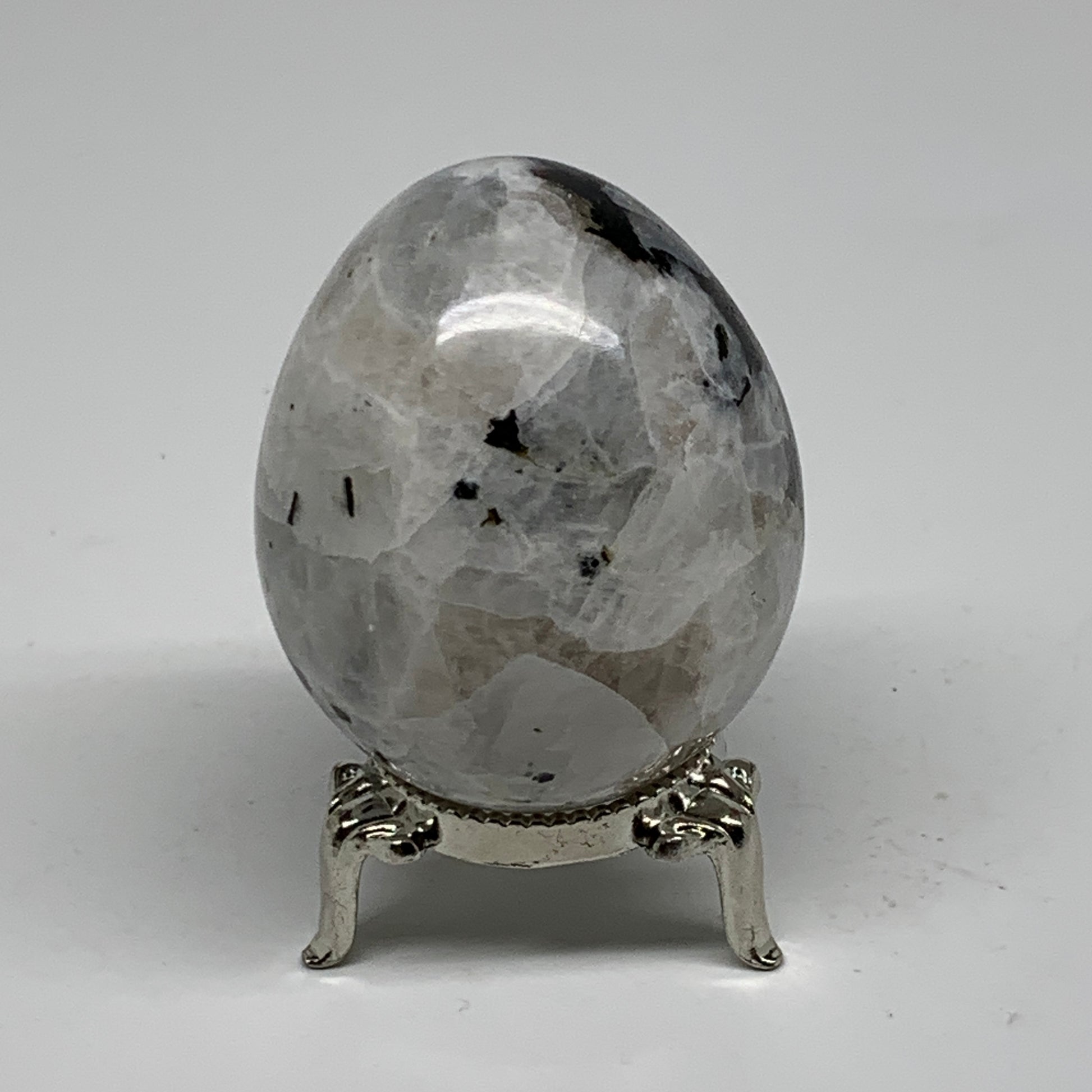 161.2g, 2.2"x1.8", Natural Gemstone White Rainbow Moonstone Egg, B34432