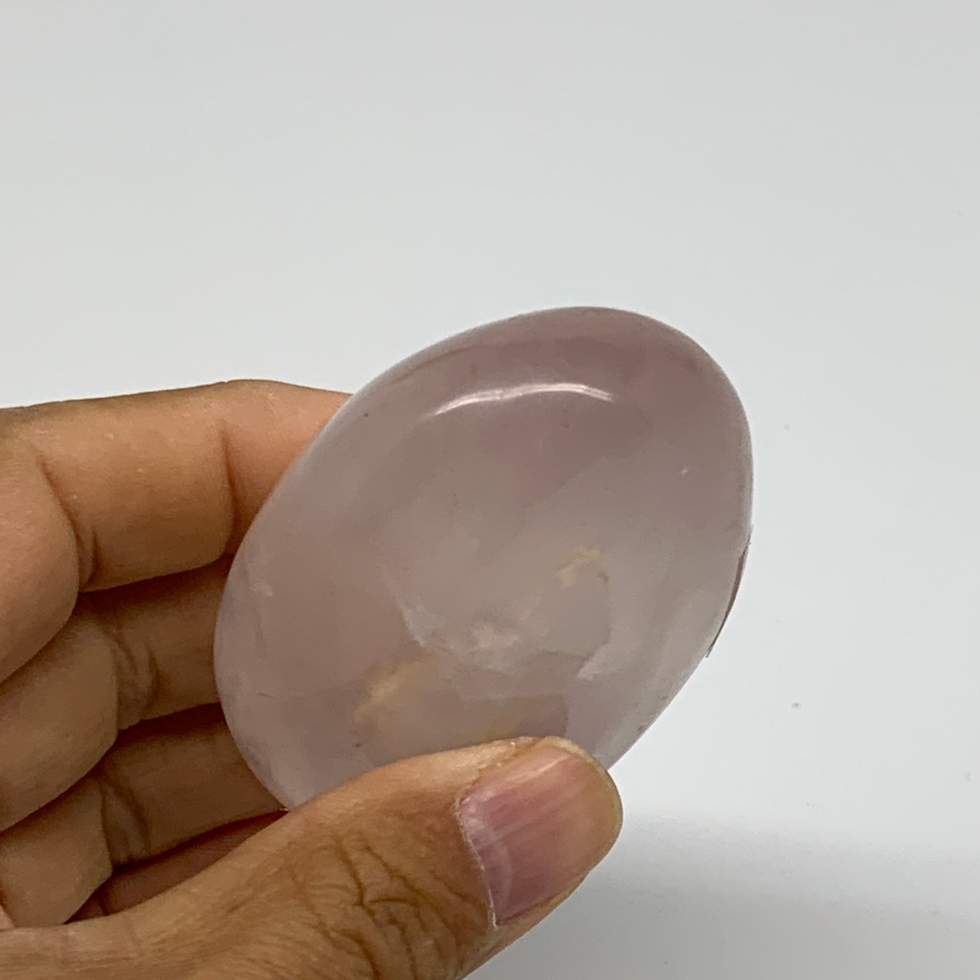 161.3g , 2.8"x2"x1.3", Natural Pink Rose Quartz Palm-stone Crystal, B37307