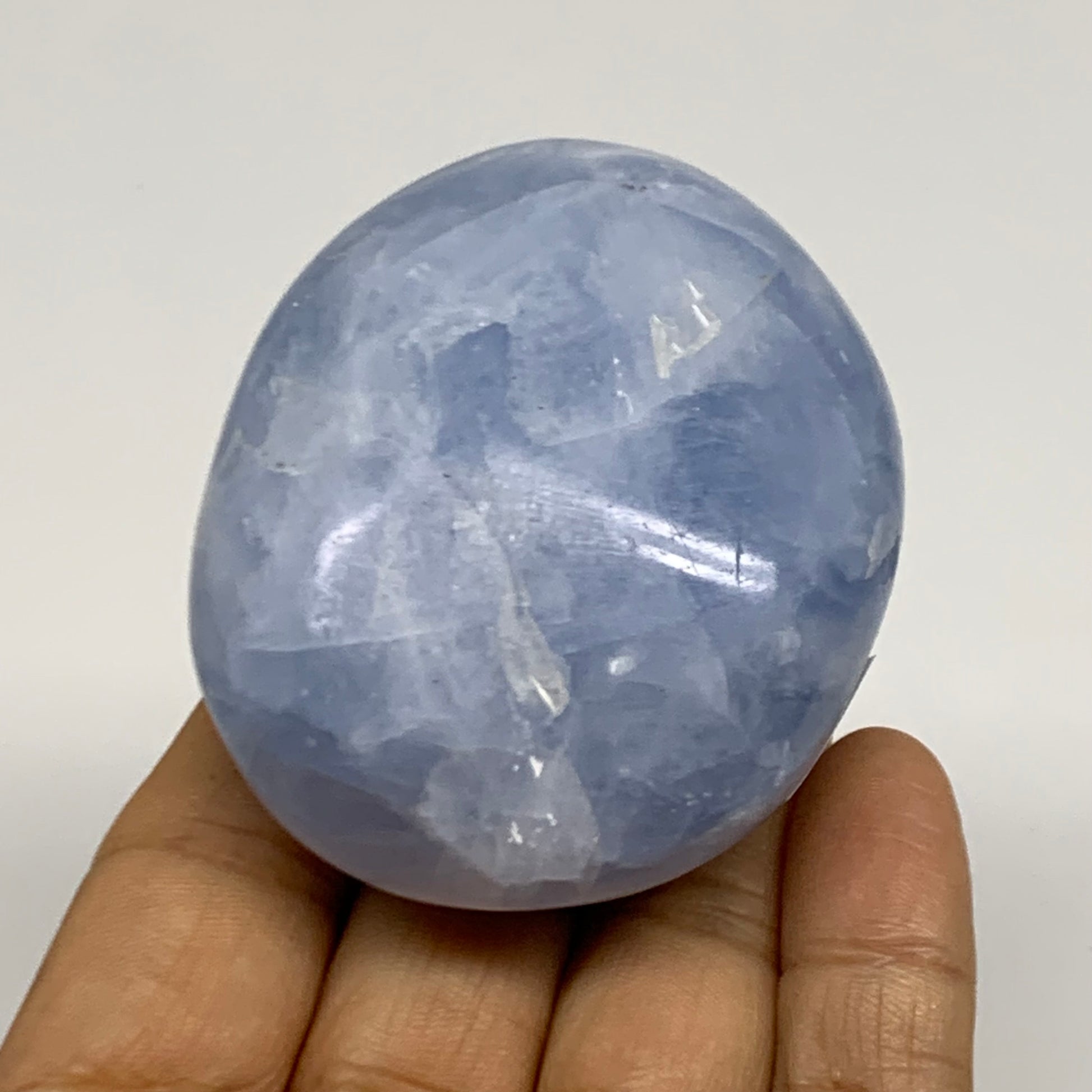 161.5g, 2.5"x2"x1.3" Blue Calcite Palm-Stone Polished Tumbled, B38107