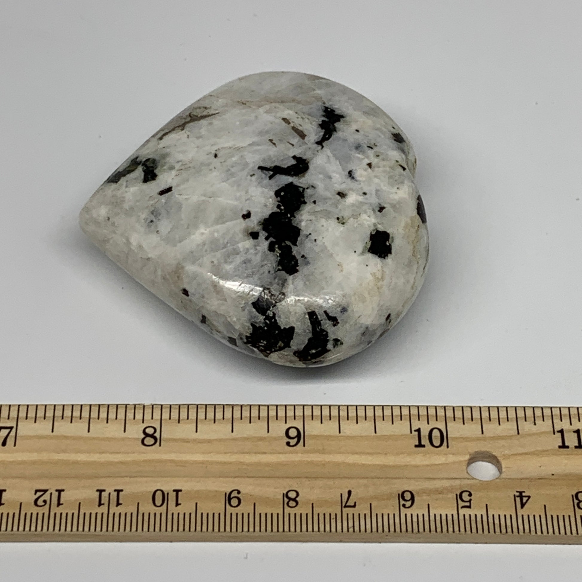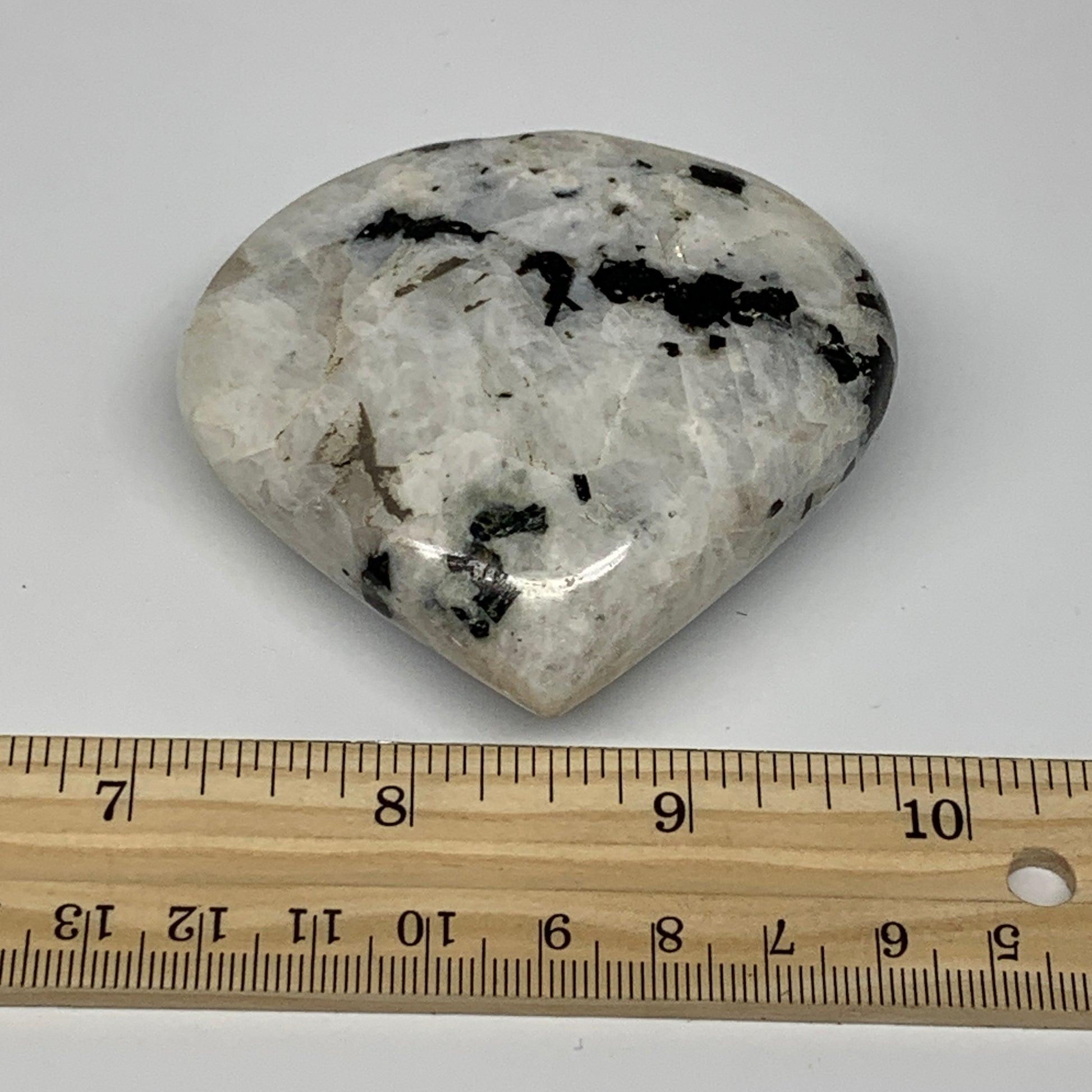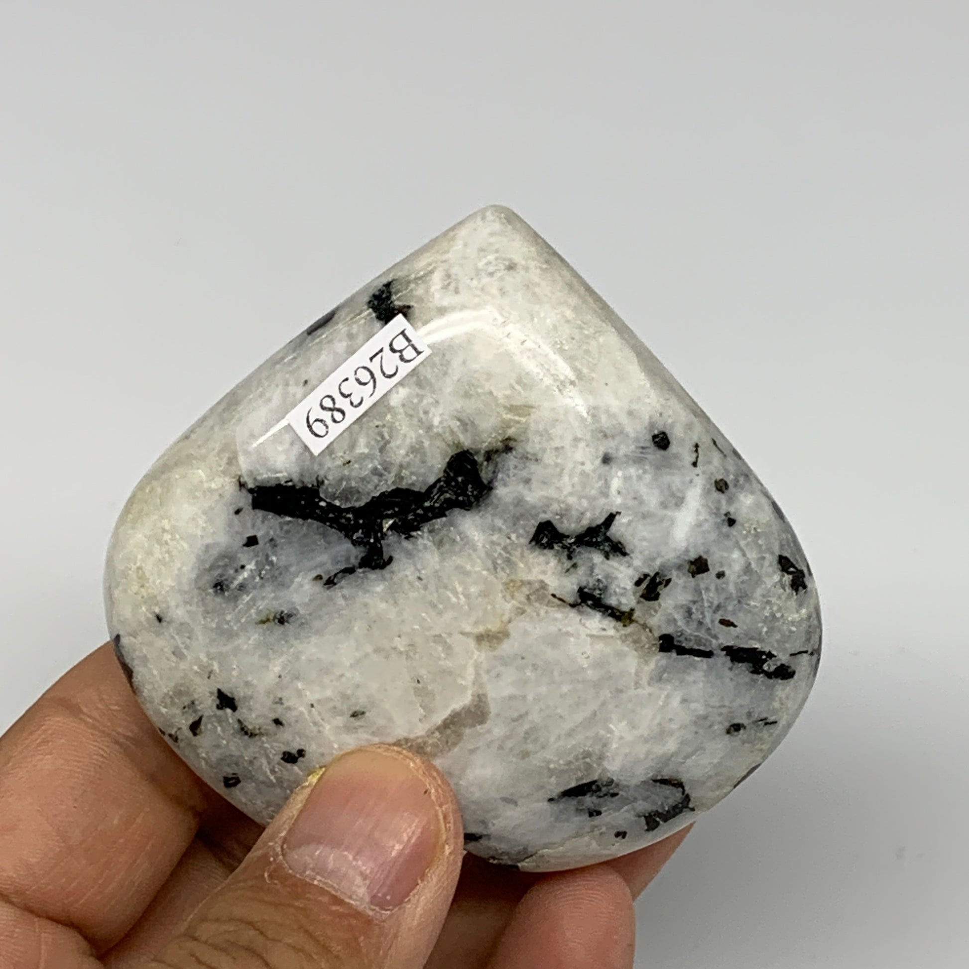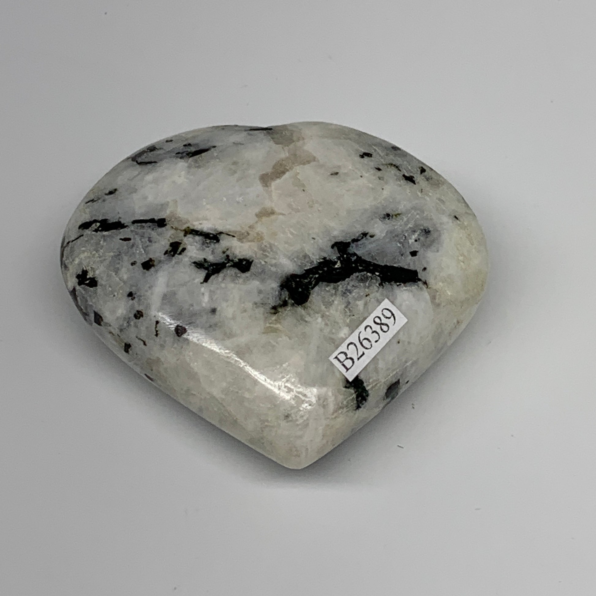 161.8g, 2.6"x2.8"x1", Rainbow Moonstone Heart Crystal Gemstone @India, B26389