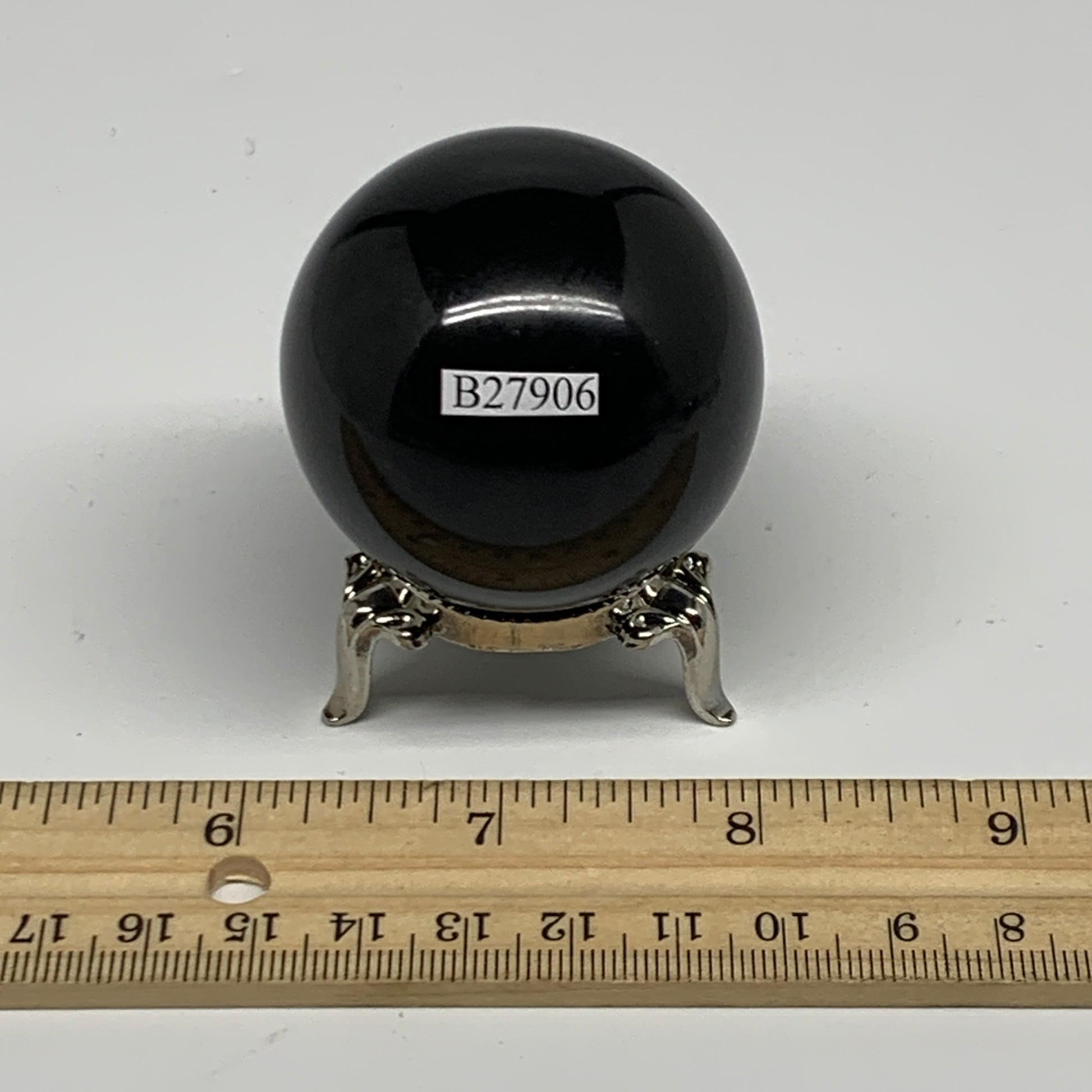 161g, 1.9"(47mm), Natural Black Jasper Sphere Ball Gemstone @India, B27906
