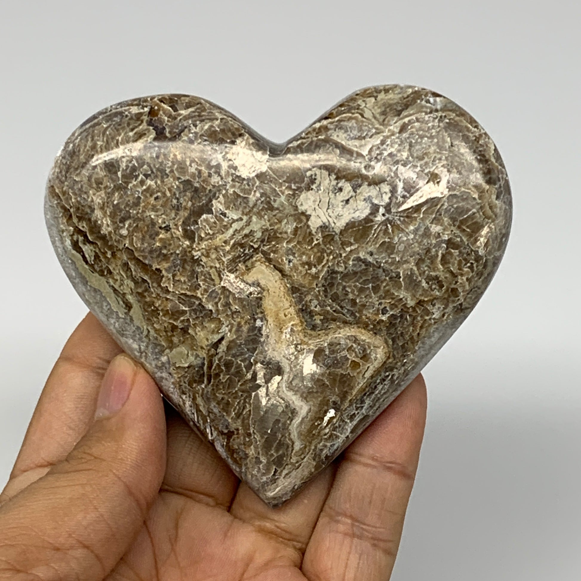 162.3g,3.1"x3.4"x0.8" Natural Chocolate Gray Onyx Heart Polished @Morocco,B18772