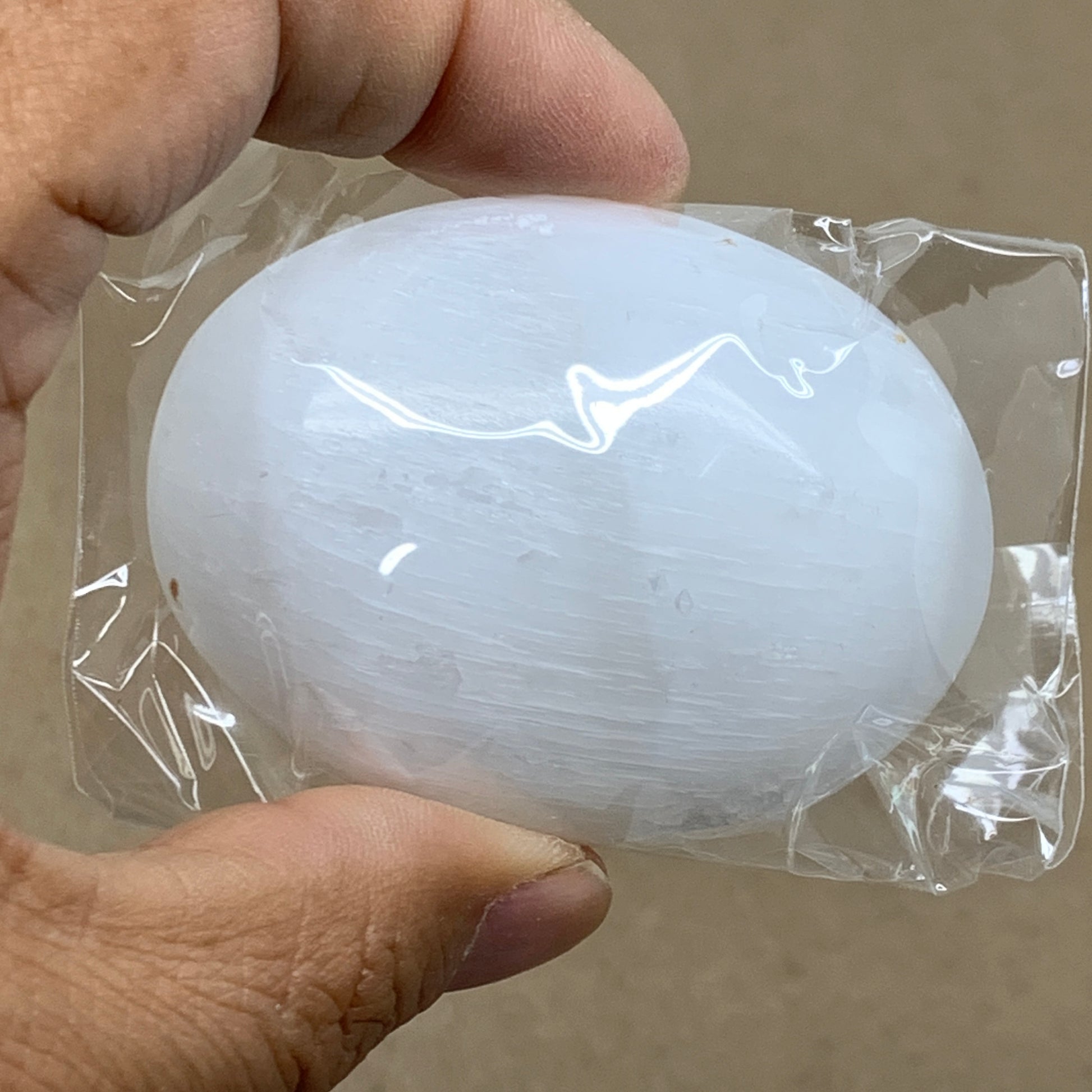 162g, 2.4"x1.8"x1", 2pcs, White Selenite Palmstone Crystal Pillow, B36889