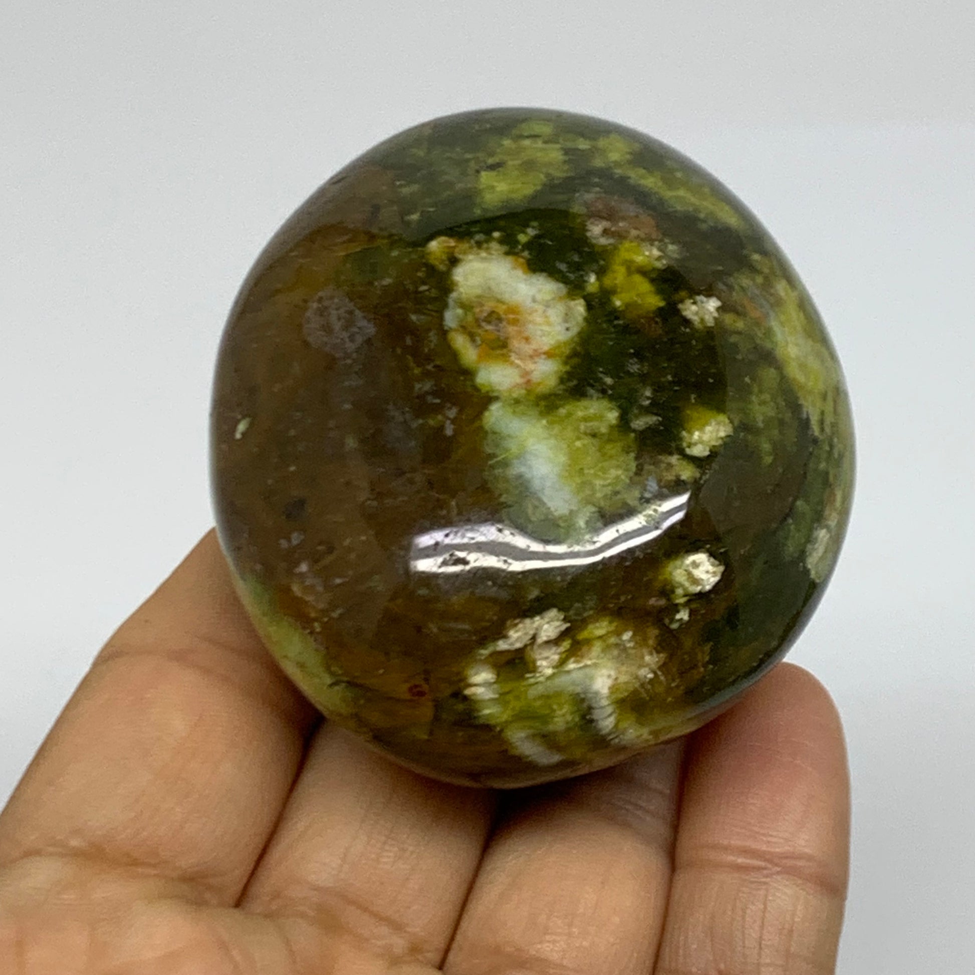 163.2g, 2.6"x2.2"x1.3", Green Opal Crystal PalmStone Polished Reiki, B38244