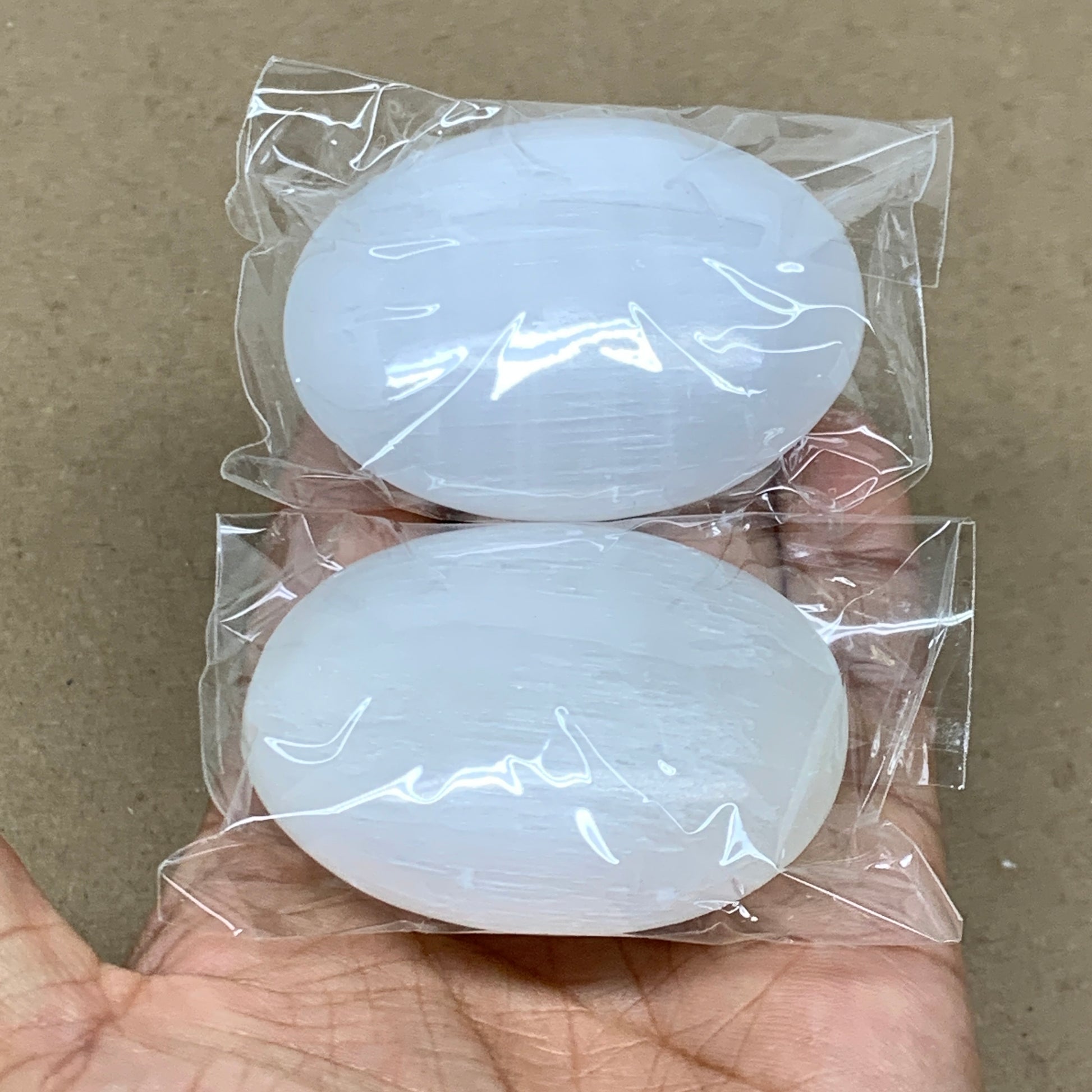 164g, 2.4"x1.8"x1", 2pcs, White Selenite Palmstone Crystal Pillow, B36861