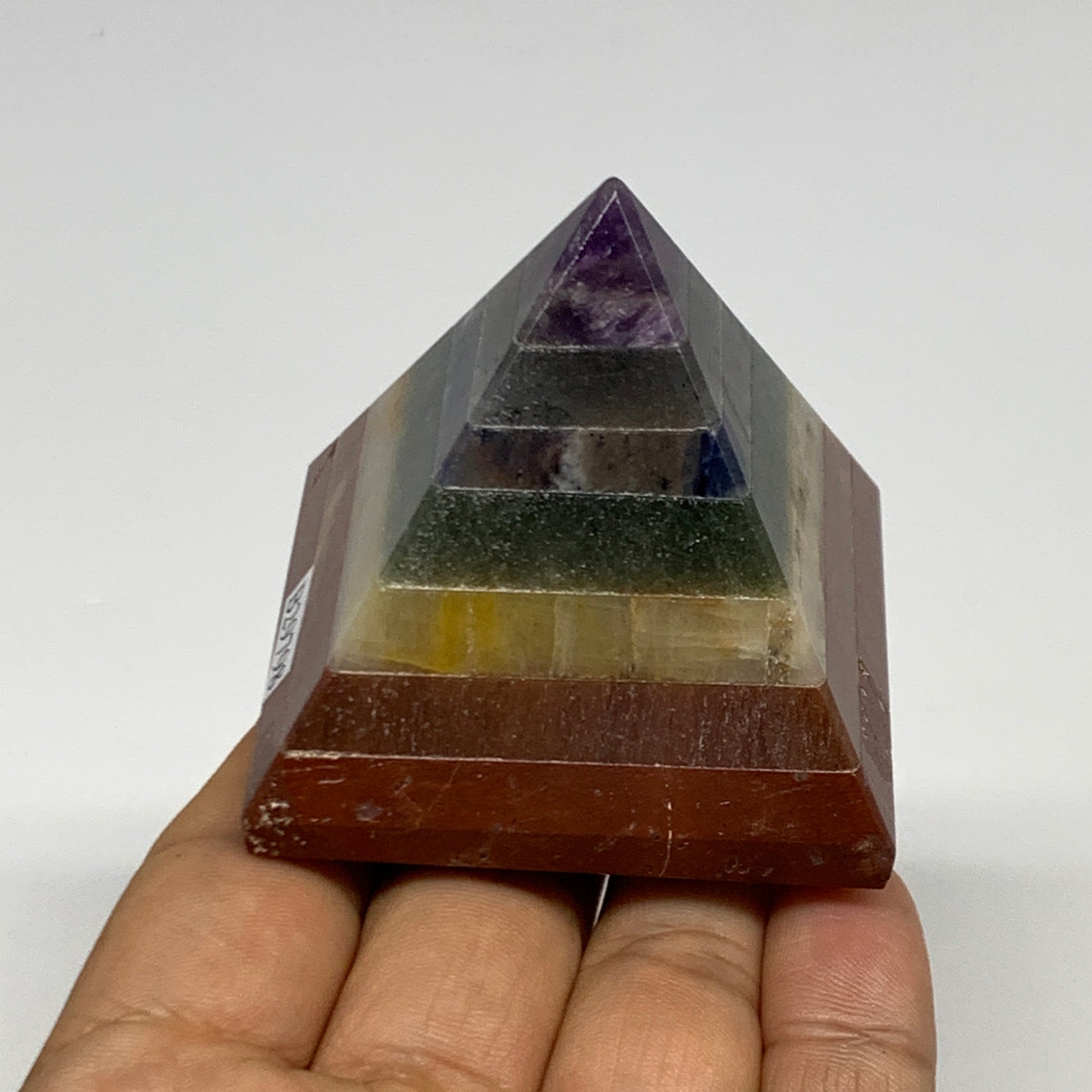 165.6g, 2"x2.2", 7 Chakra Pyramid Bonded Gemstone,Healing Crystal, B29798