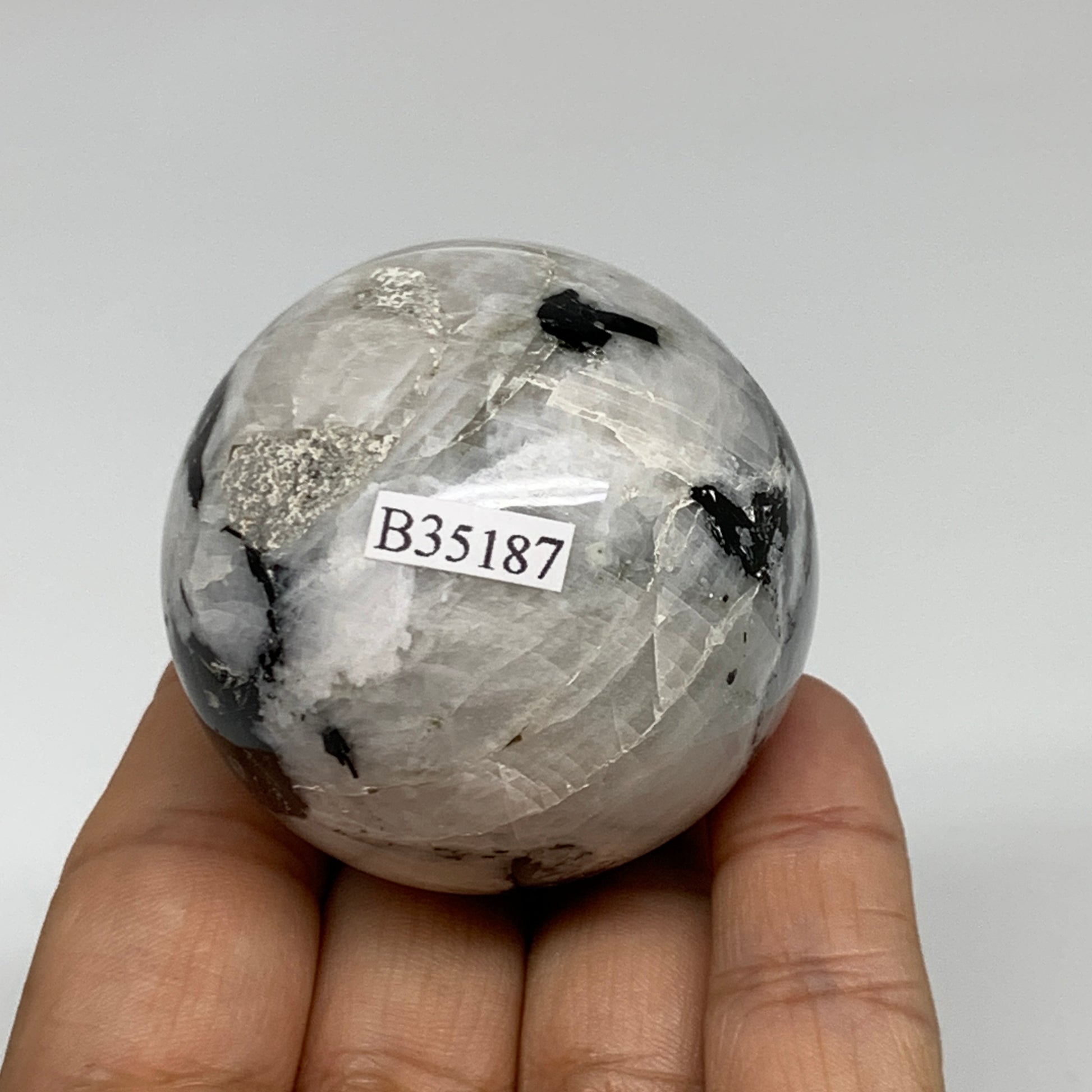 165.7g, 1.9"(49mm), Natural Rainbow Moonstone Sphere Ball Gemstone, B35187