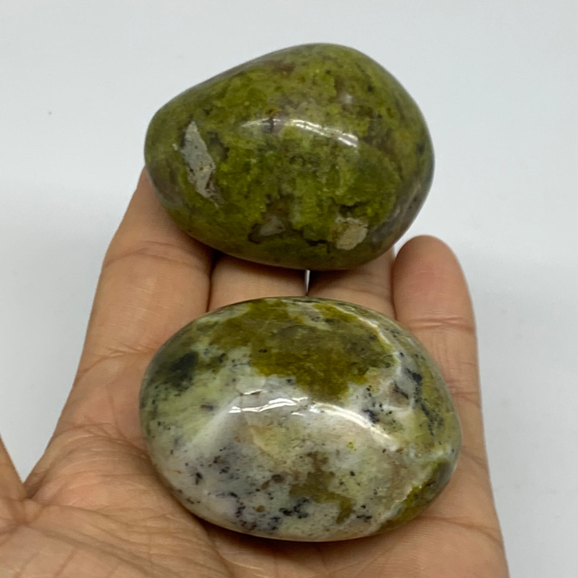 166.5g, 2.1"-2.1", 2pcs, Green Opal Crystal PalmStone Polished Reiki, B38314