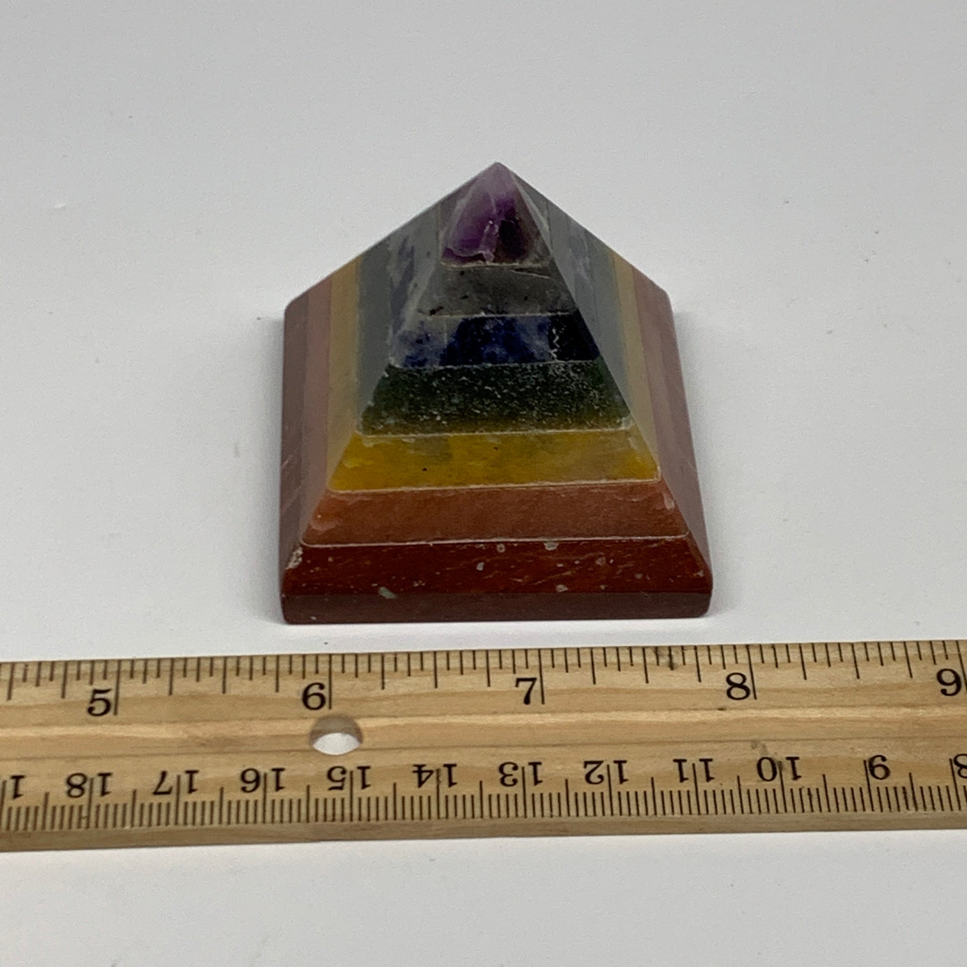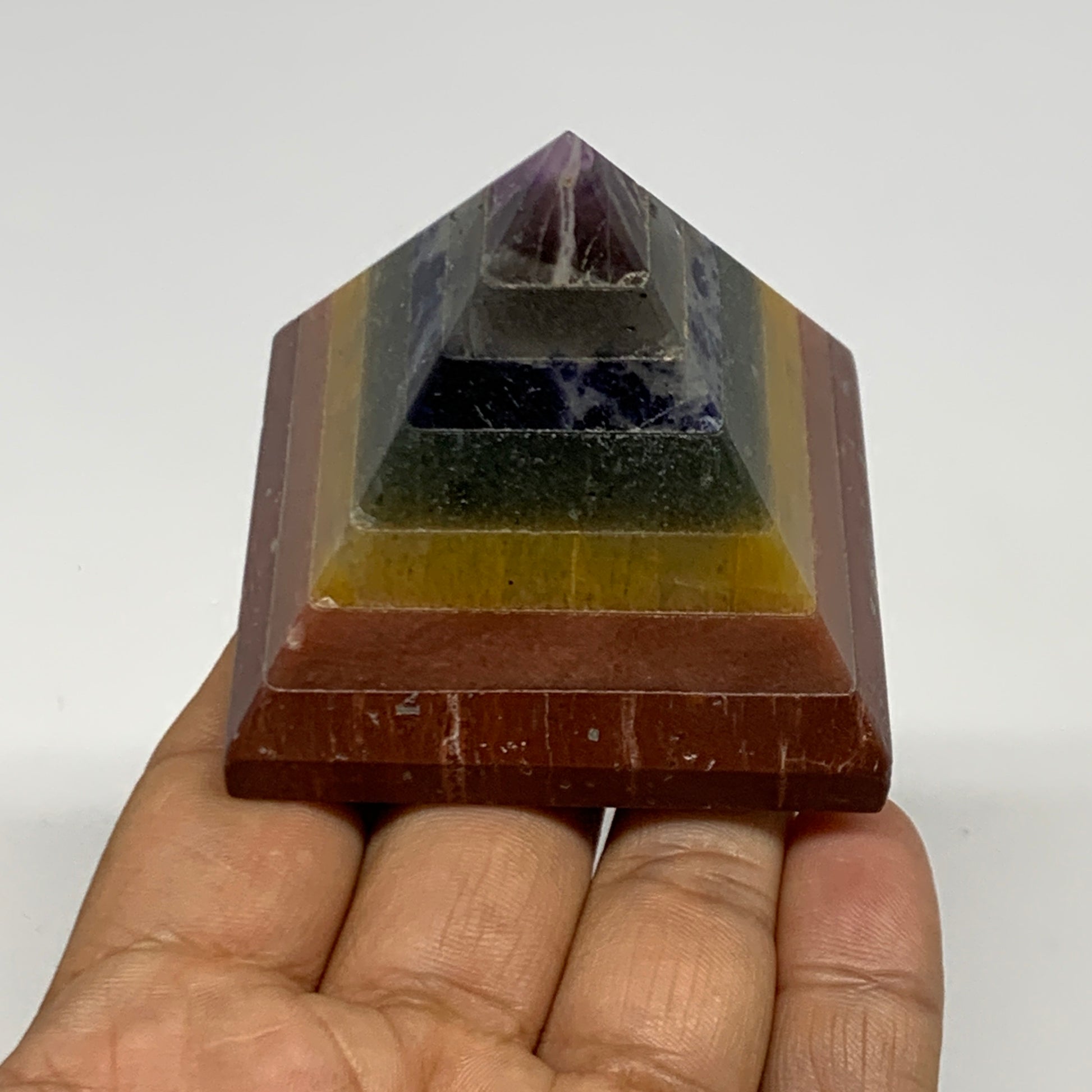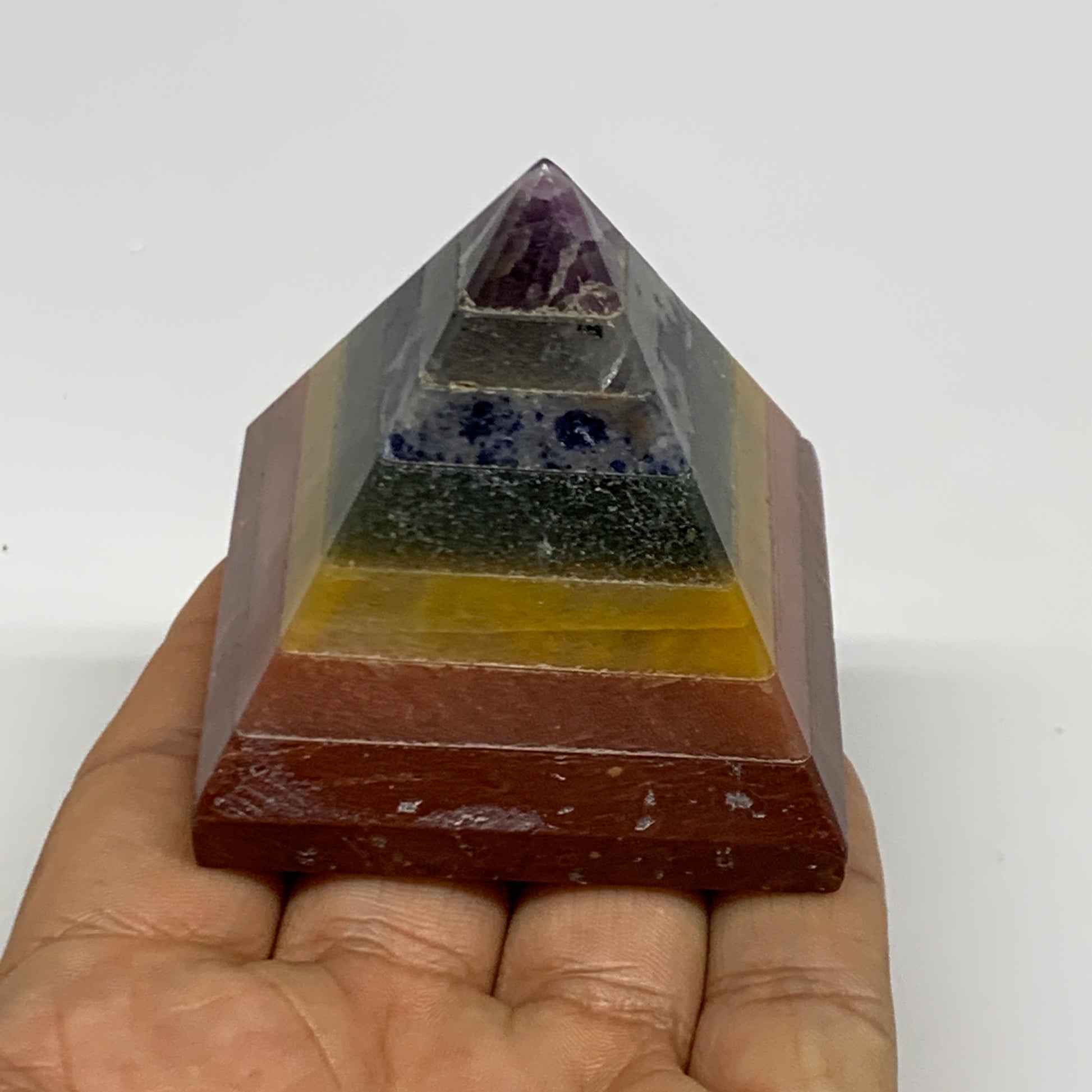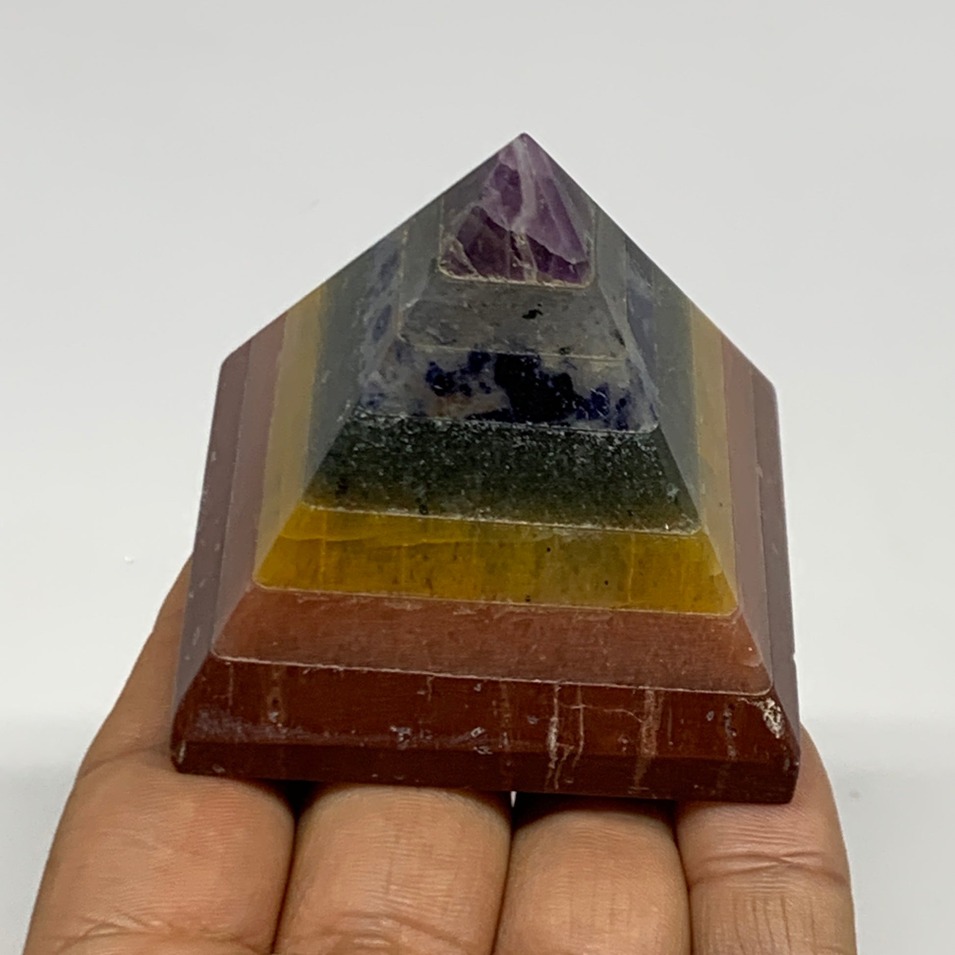 166.9g, 2"x2.2", 7 Chakra Pyramid Bonded Gemstone,Healing Crystal, B29794
