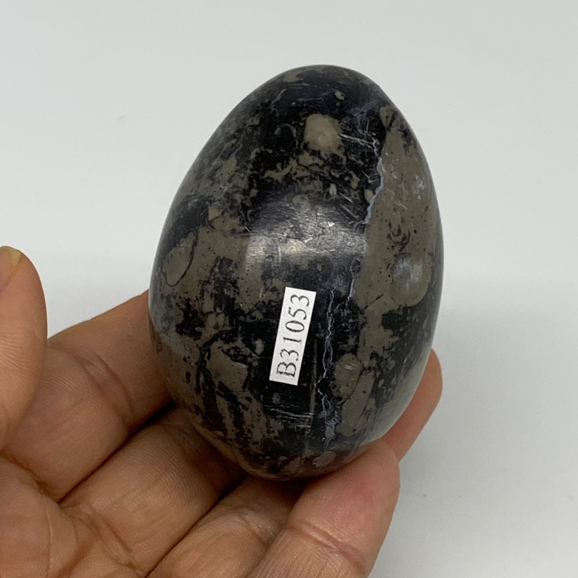 167.1g, 2.4"x1.7", Natural Fossil Orthoceras Stone Egg from Morocco, B31053