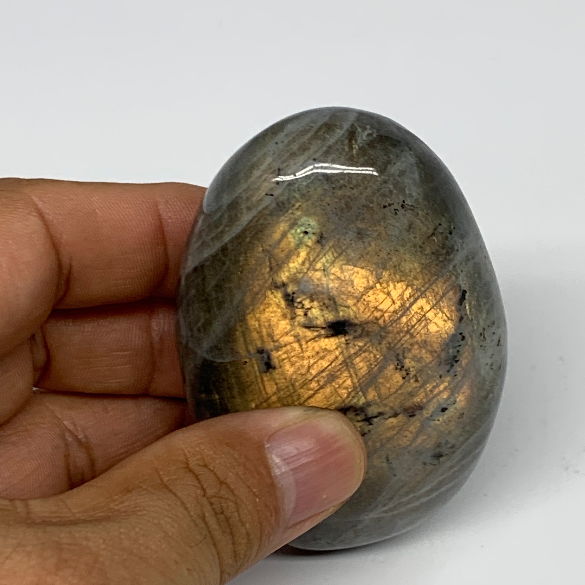 167.5g,3.2"x1.9"x1.1", Labradorite Palm-stone Tumbled Reiki @Madagascar,B16321